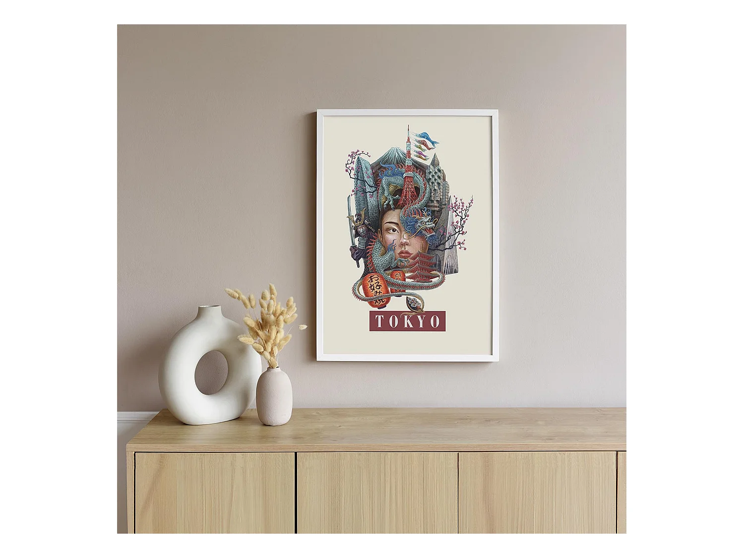 Gerahmtes Bild, japanisches Stadtdekor, Tokio-Druck in weißem Rahmen, Bild im städtischen Tokio-Stil, 40 x 60 cm.