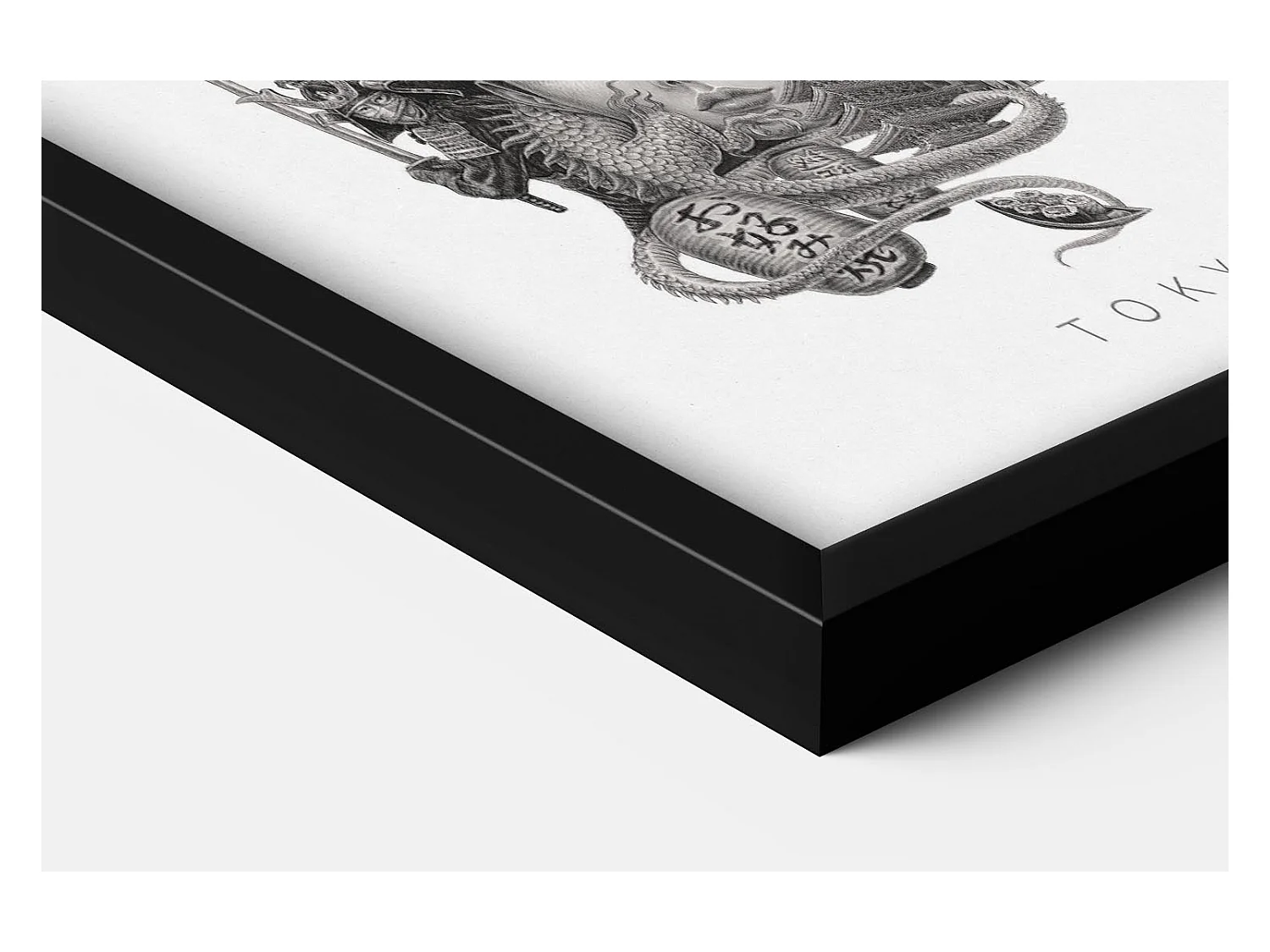 Gerahmtes Bild, raffiniertes japanisches Stadtdekor, schwarzer Kunstrahmen aus Tokio, Stadtbild aus Tokio, 70x100 cm.