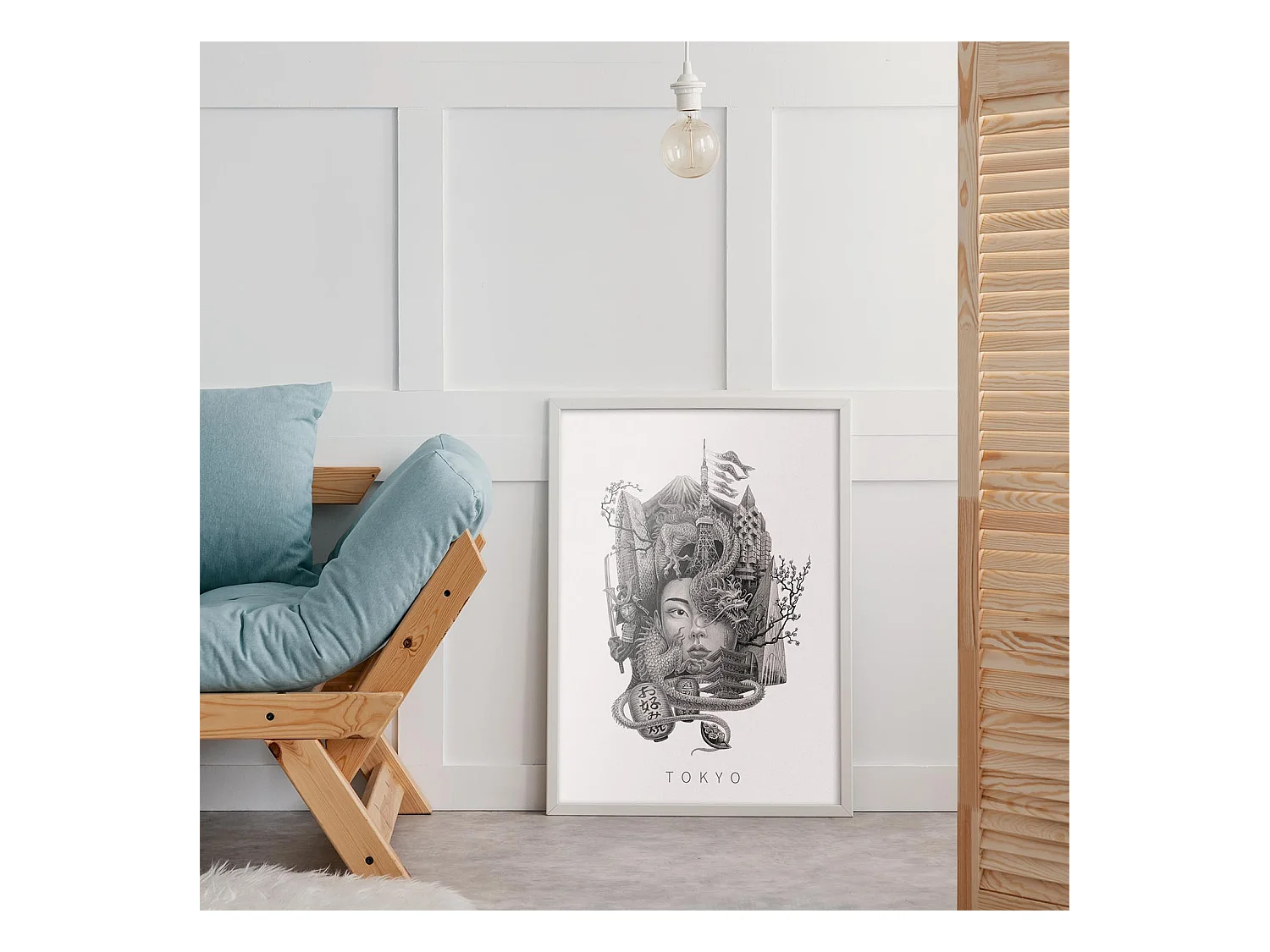 Gerahmtes Bild, raffiniertes japanisches Stadtdekor, weißer Rahmen der Tokio-Kunst, Stadtbild Tokio, 40x60 cm.