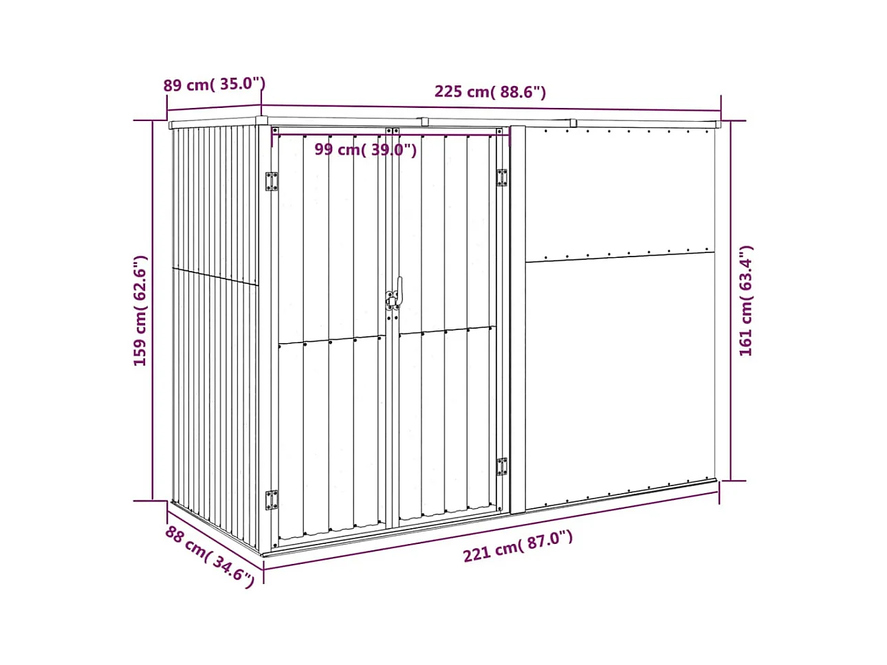 Gerätehaus Grau 225x89x161 cm Verzinkter Stahl