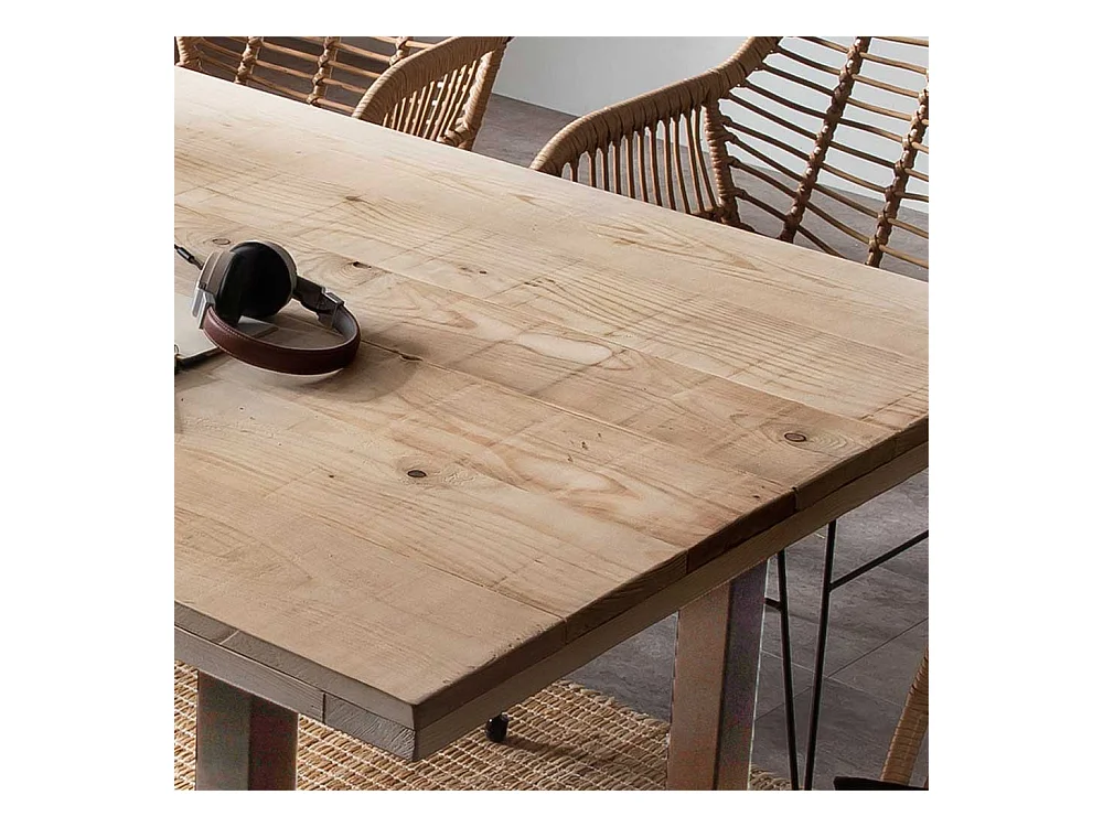Gerüstholz Tisch mit Metall Bügelgestell Antiksilber modernem Design