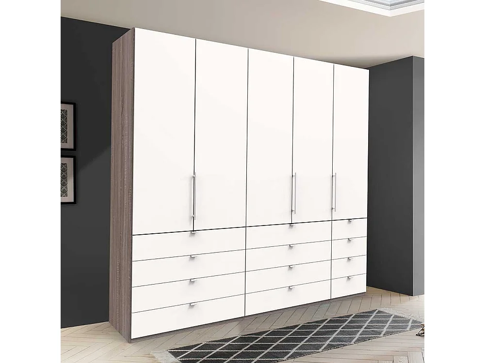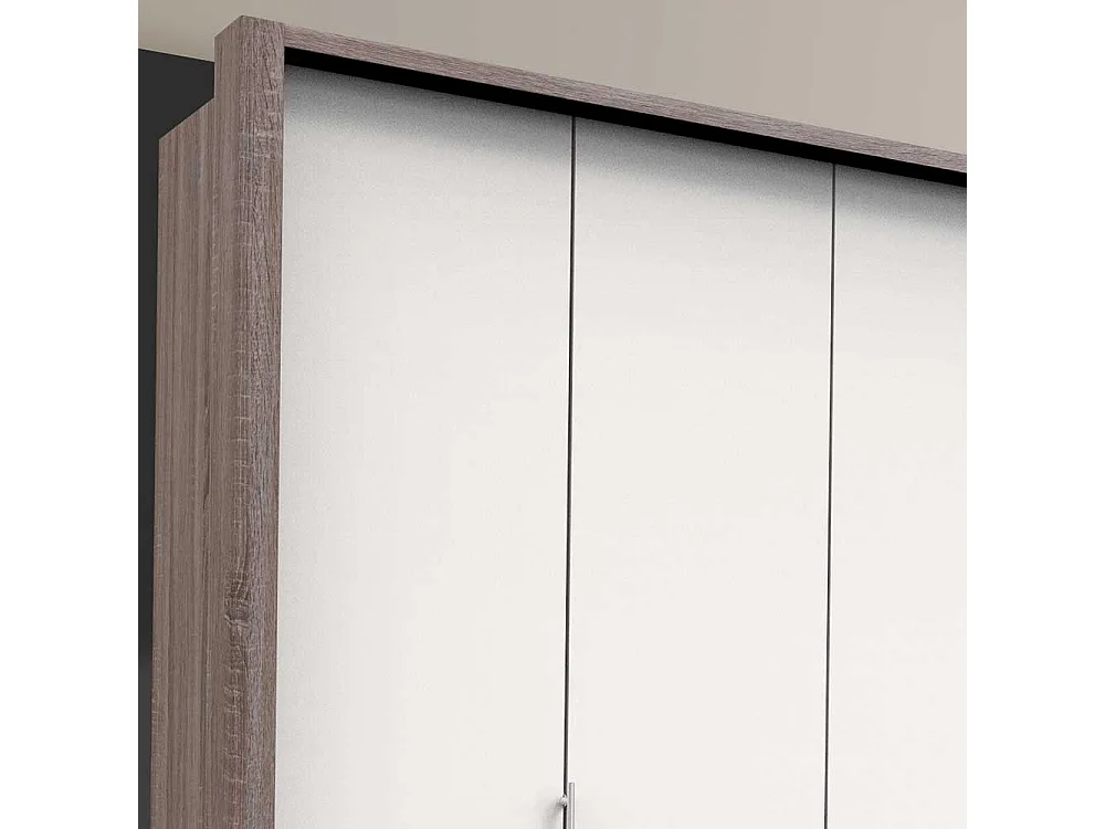 Geräumiger Schlafzimmerschrank in Weiß Eiche Trüffelfarben 3 türig mit Schubladen