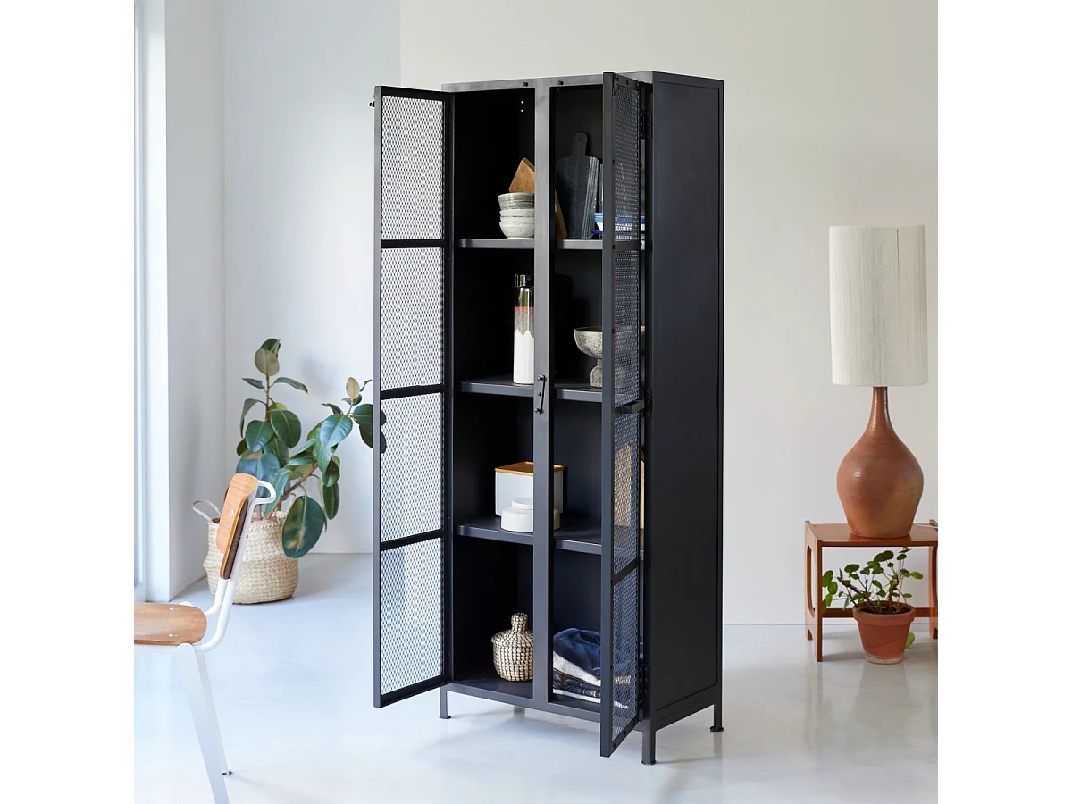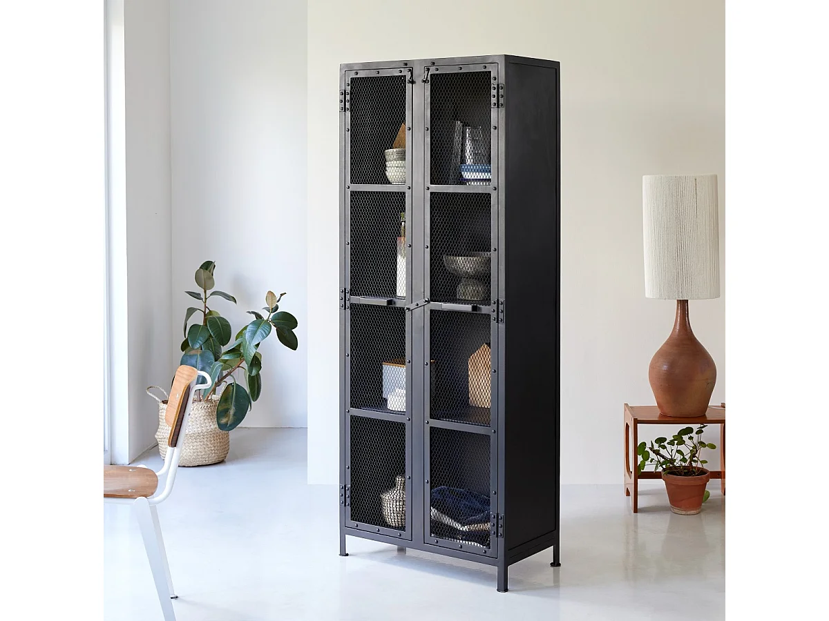 Geschirrschrank Vitrine industrieller Stil 70 cm breit Metall Loftstil