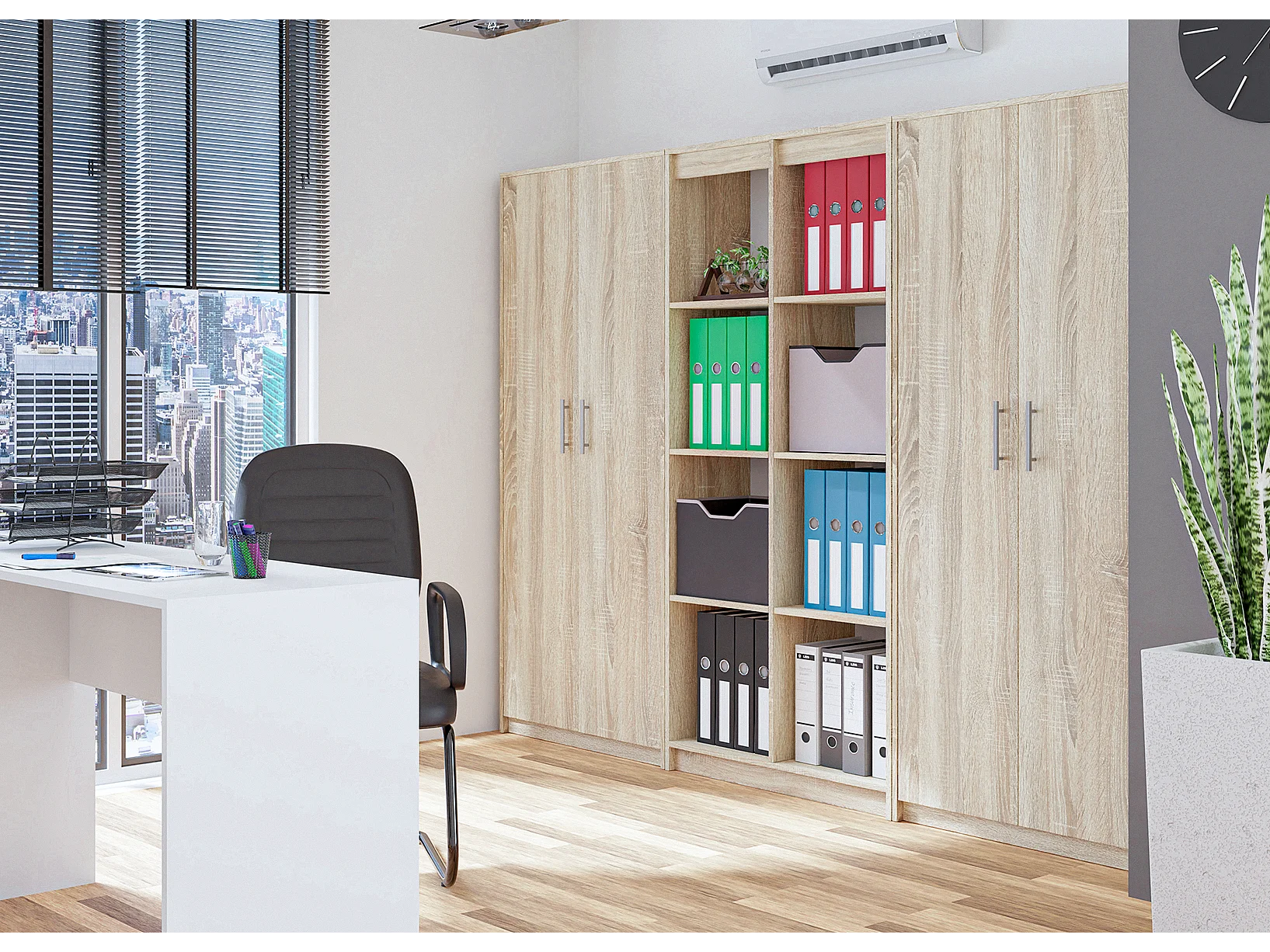 Regał Oliv 2D | Dąb Sonoma | 74x35x180 cm | Regał Zamykany, 2 Drzwi, 8 Półek