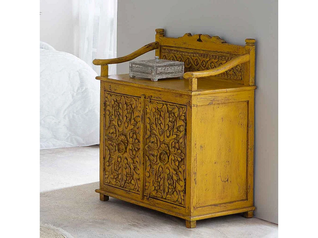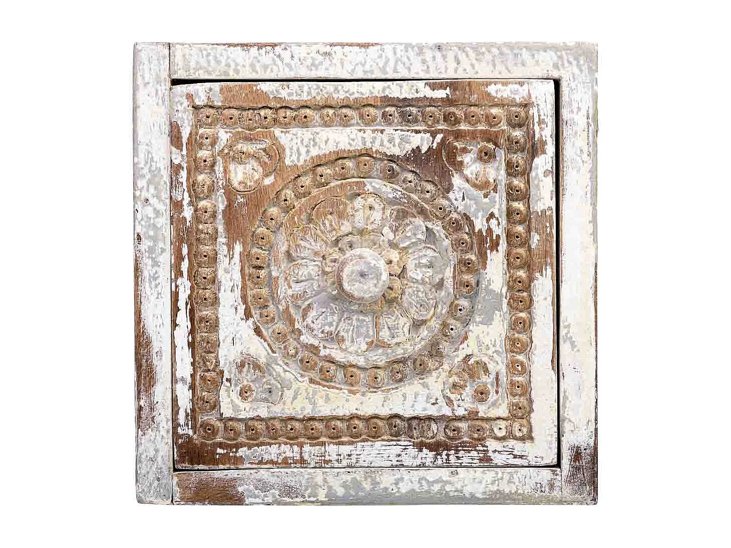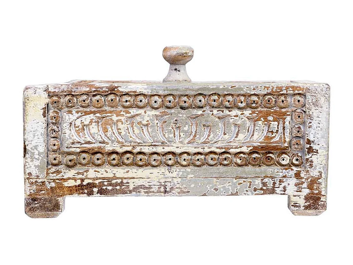 Geschnitzte Holzkiste mit antikblauem handgefertigtem Finish 19x19x10h cm