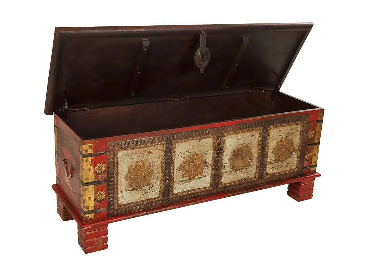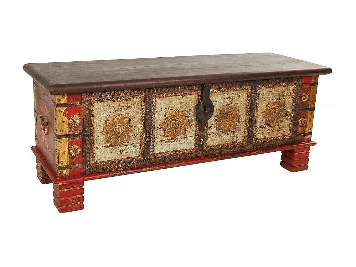 Geschnitzte Holztruhe 115x40x46 Braun