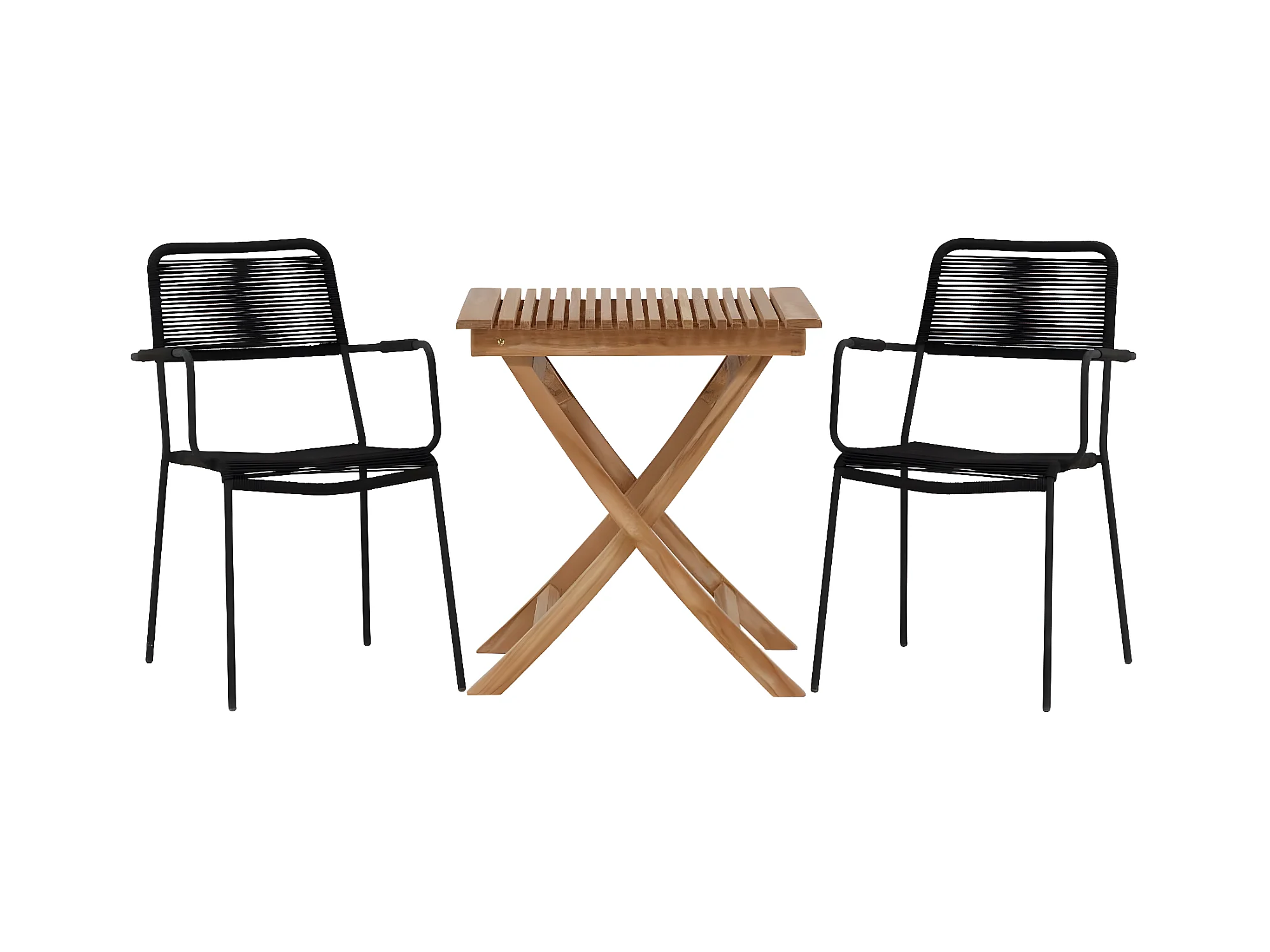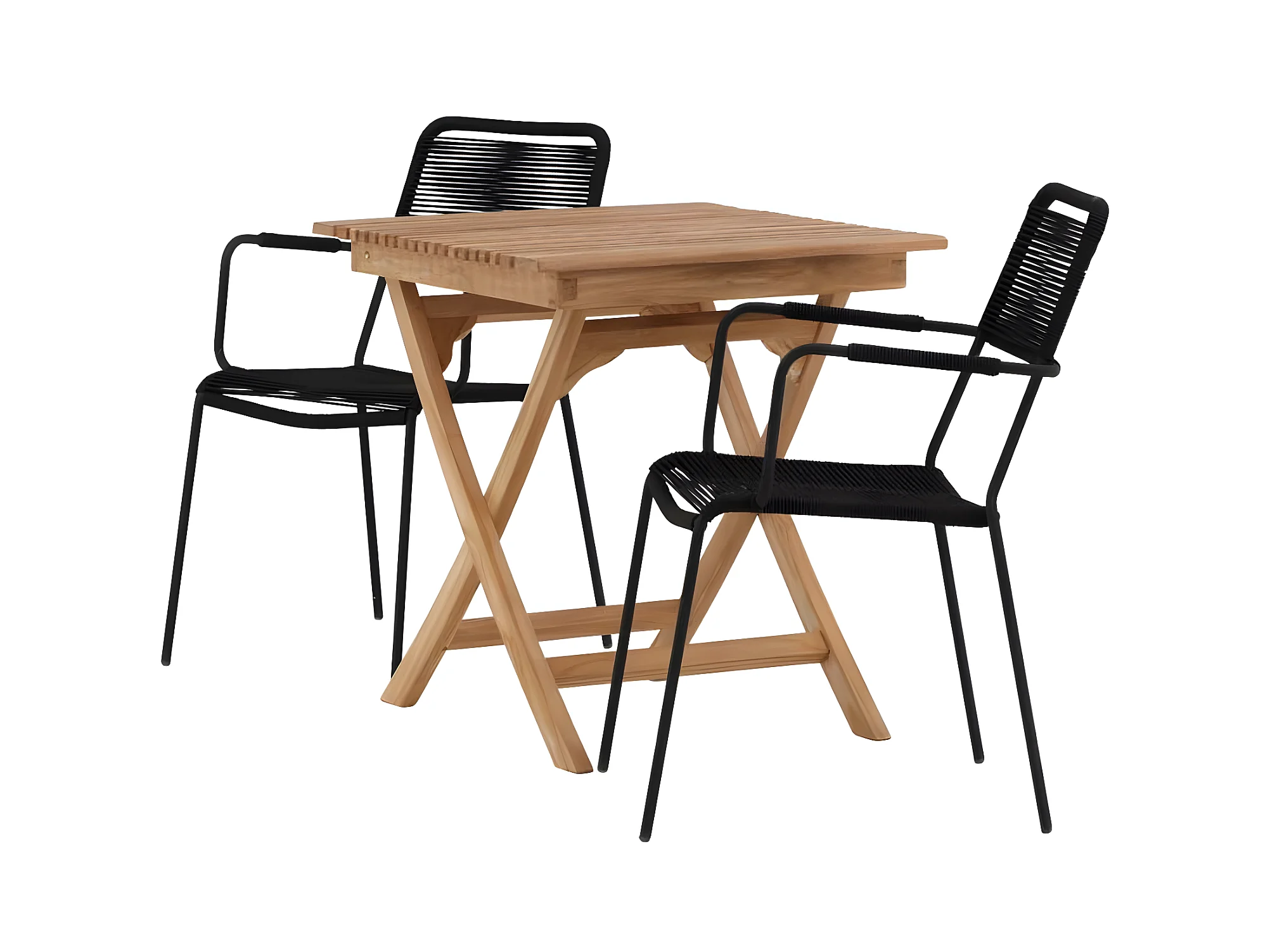 Ghana Gartenset Tisch, 2 Stühle  natur,schwarz.