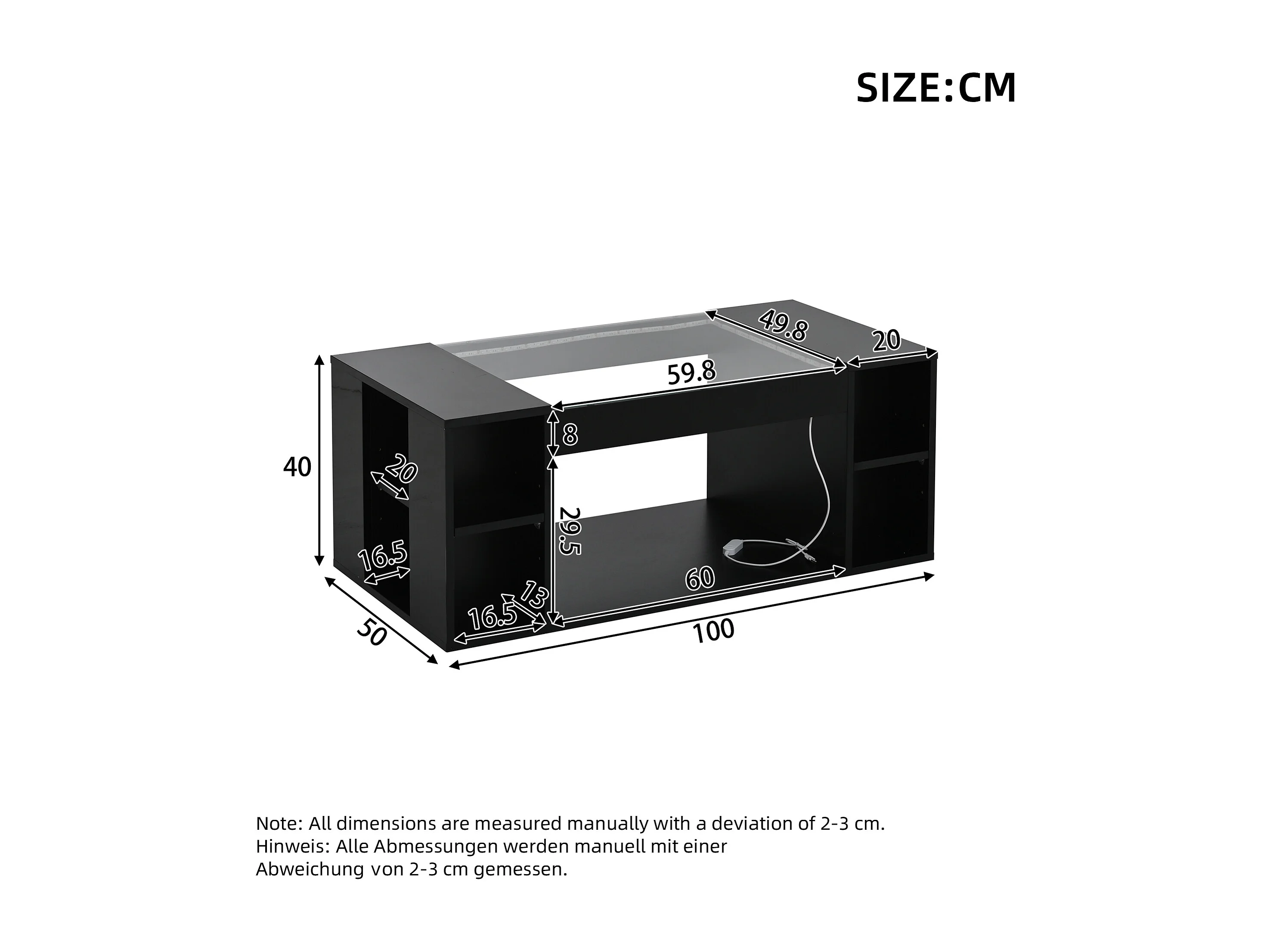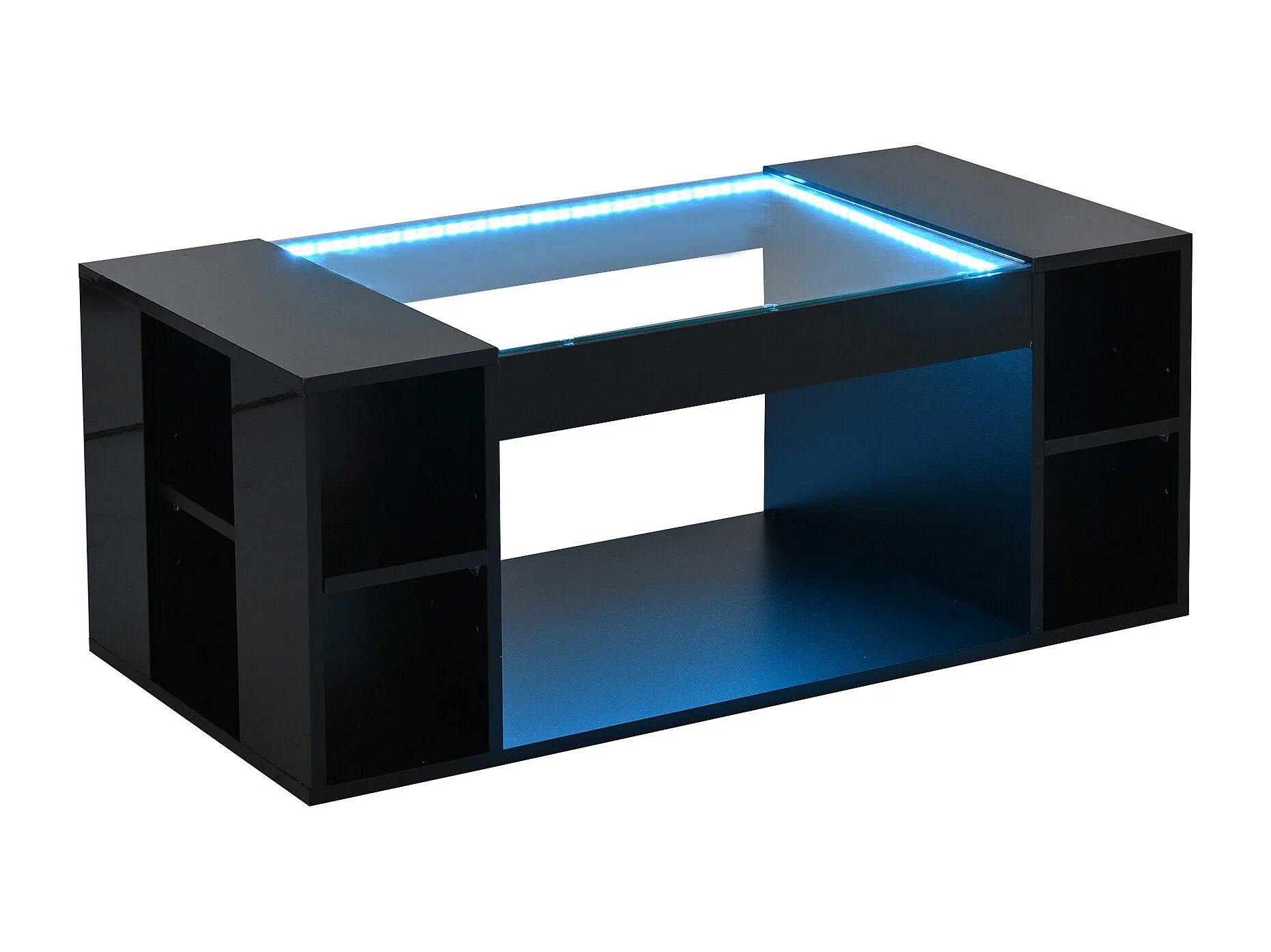 Glänzender Couchtisch 100x50x40cm - mit LED-Beleuchtung - Offene Ablage - Platte aus gehärtetem Glas - MDF - Schwarz