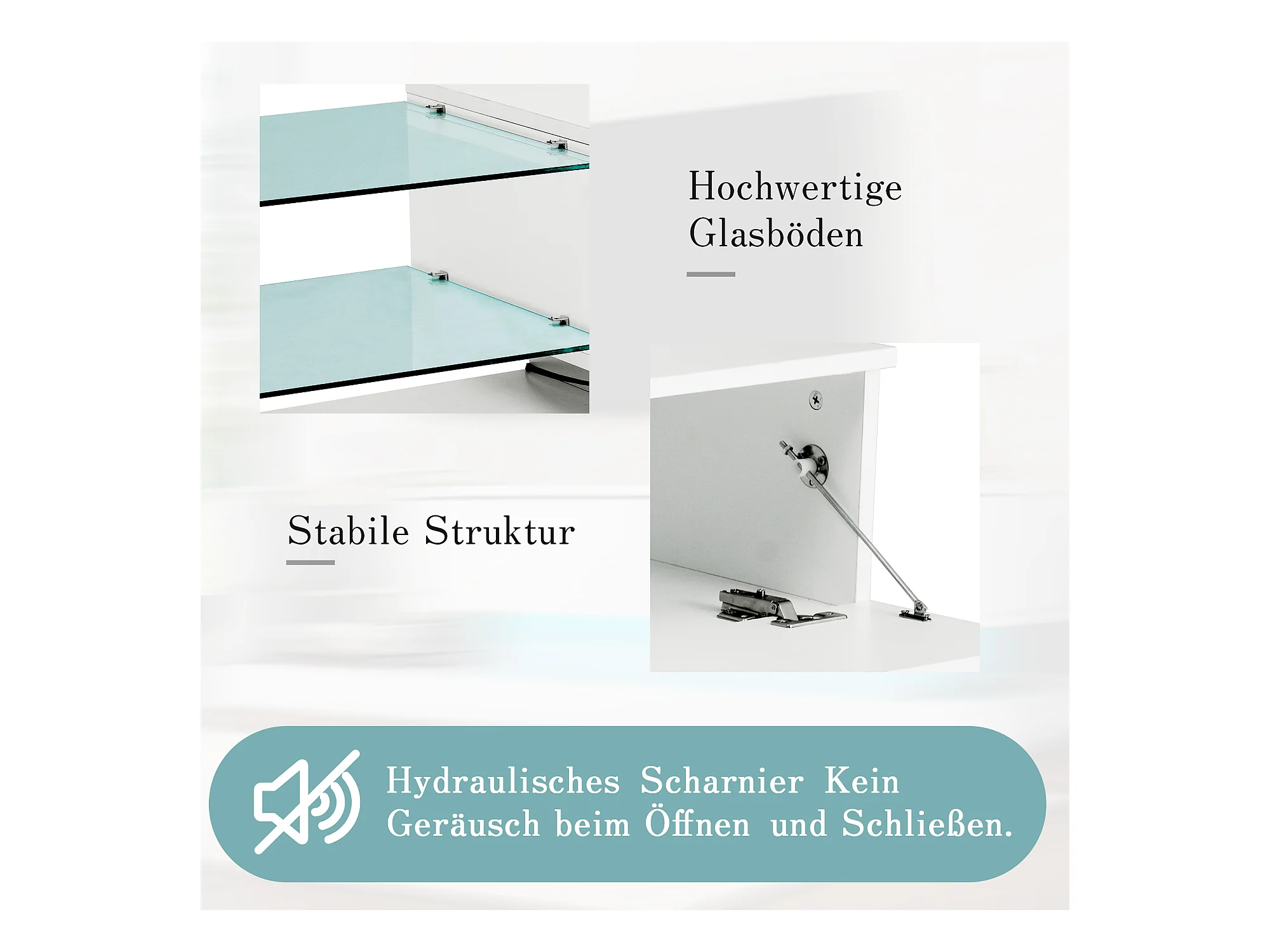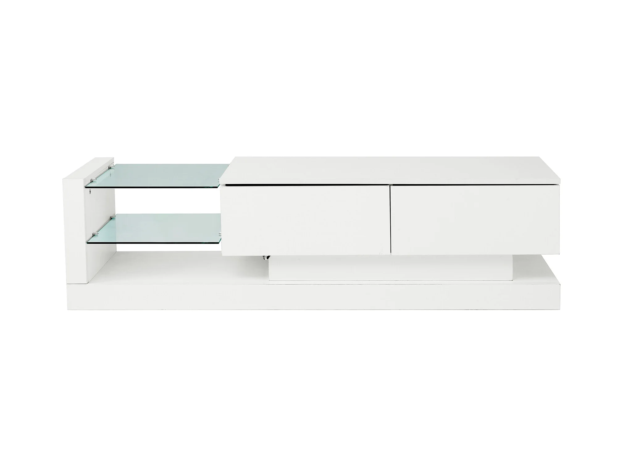 Glänzender TV-Schrank mit 2 Türen und 2 Glasböden – Spanplatte – LEDs – Weiß