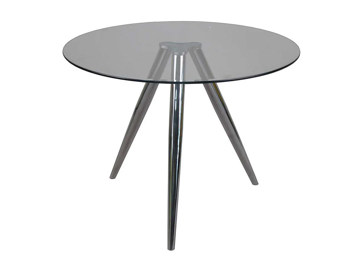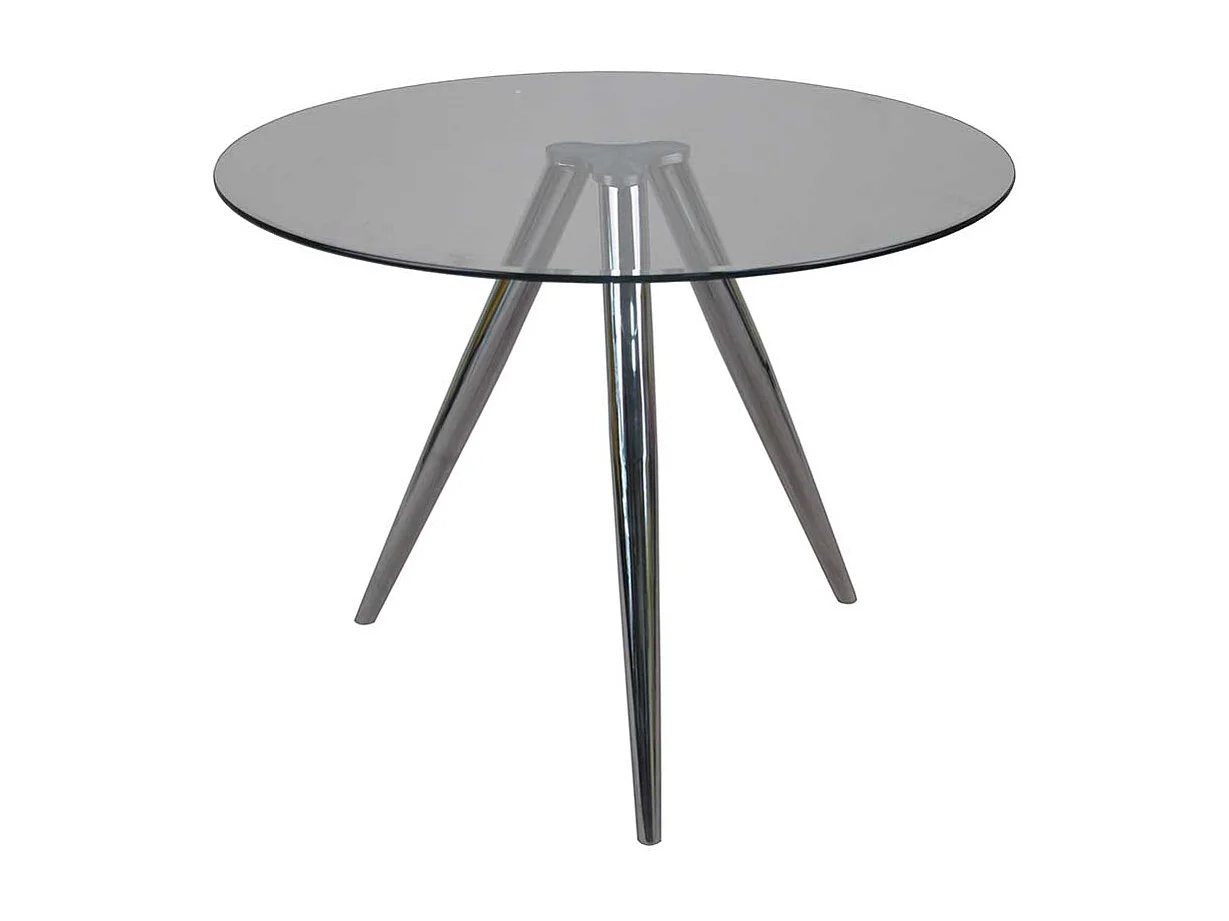 Glas Küchentisch rund chromfarbenem 3-Fußgestell
