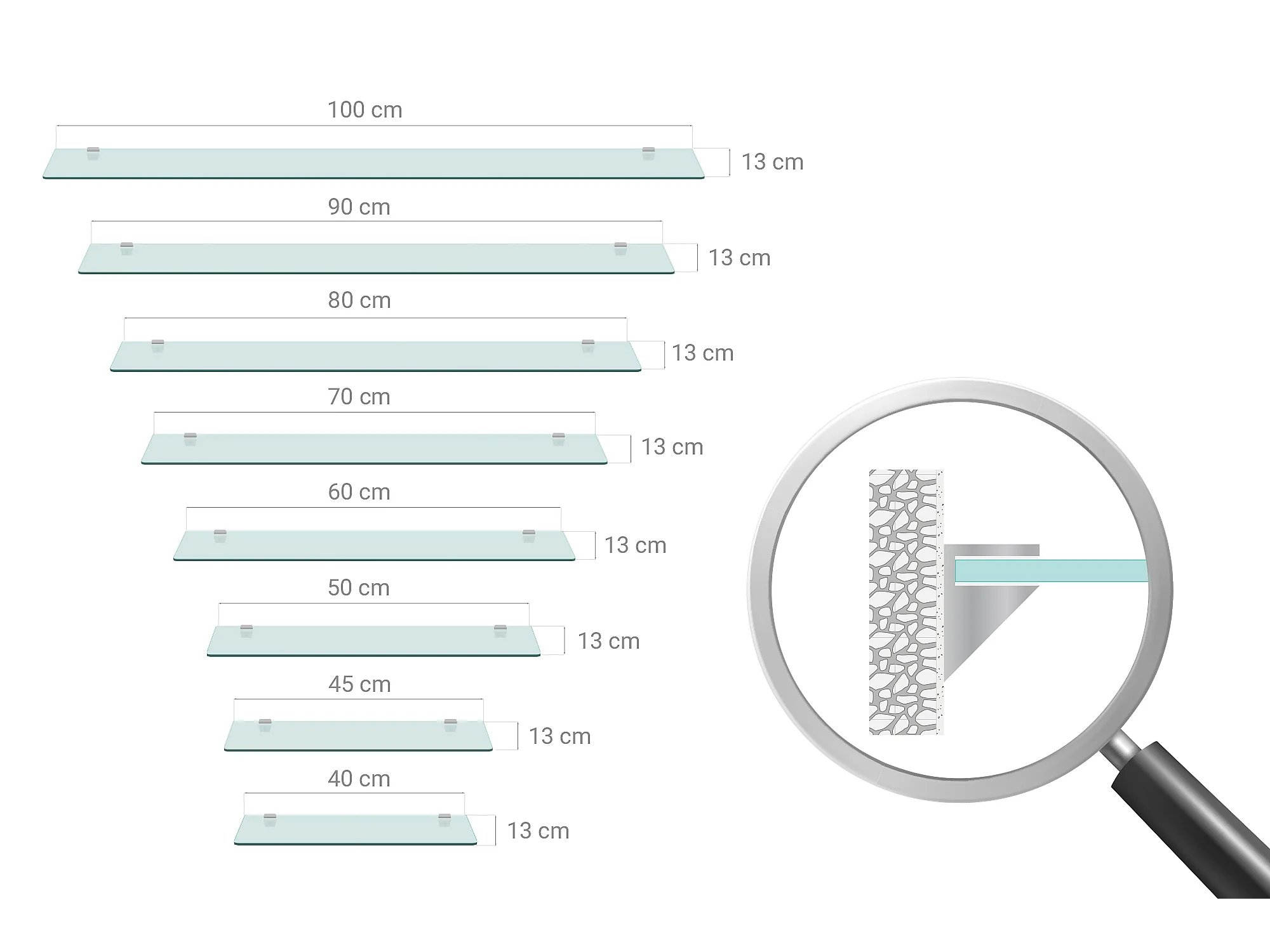 Glas Wandregal 45x13 cm Transparent – Bad Ablage aus Sicherheitsglas, Wandmontage unter Spiegel
