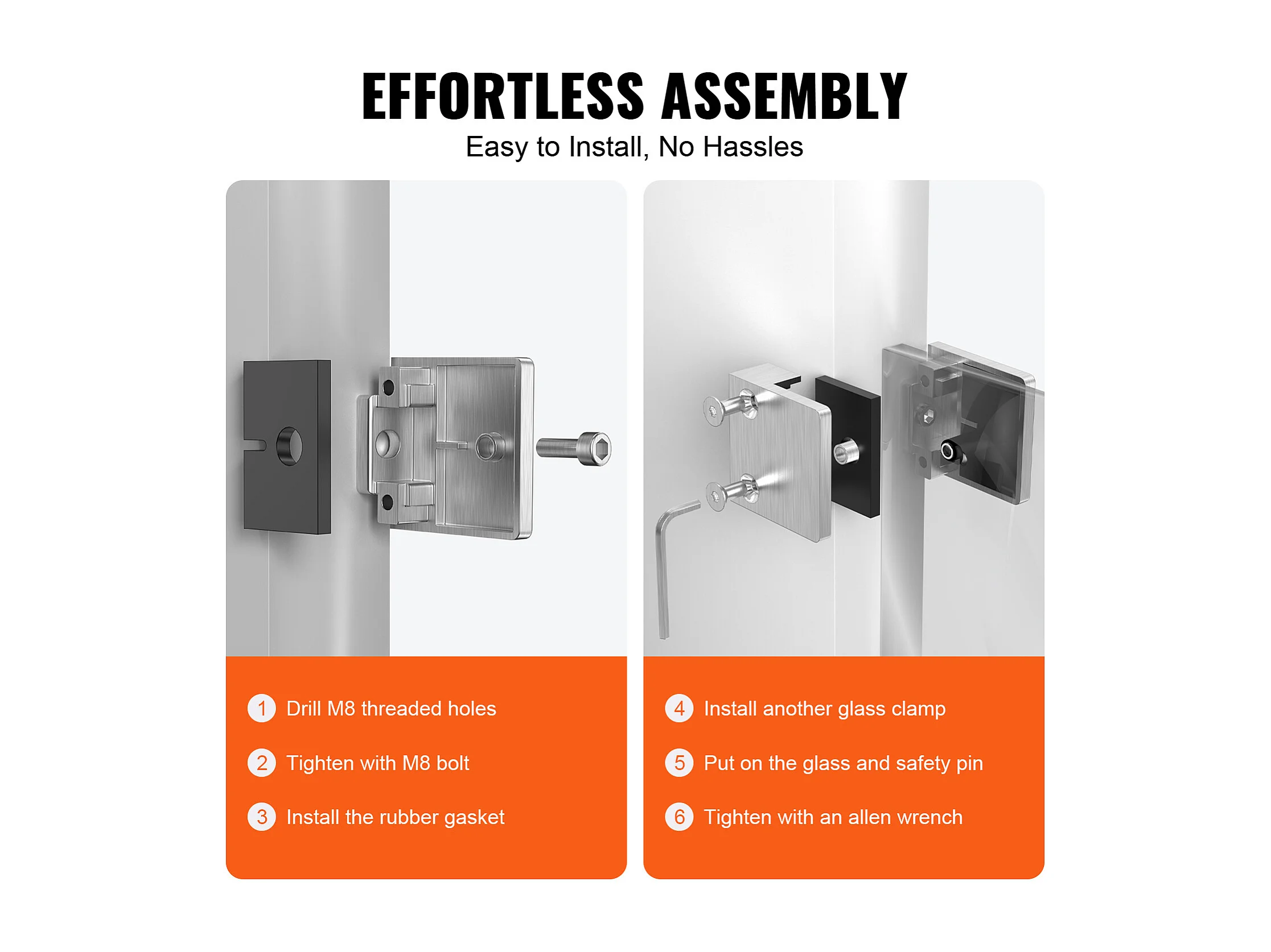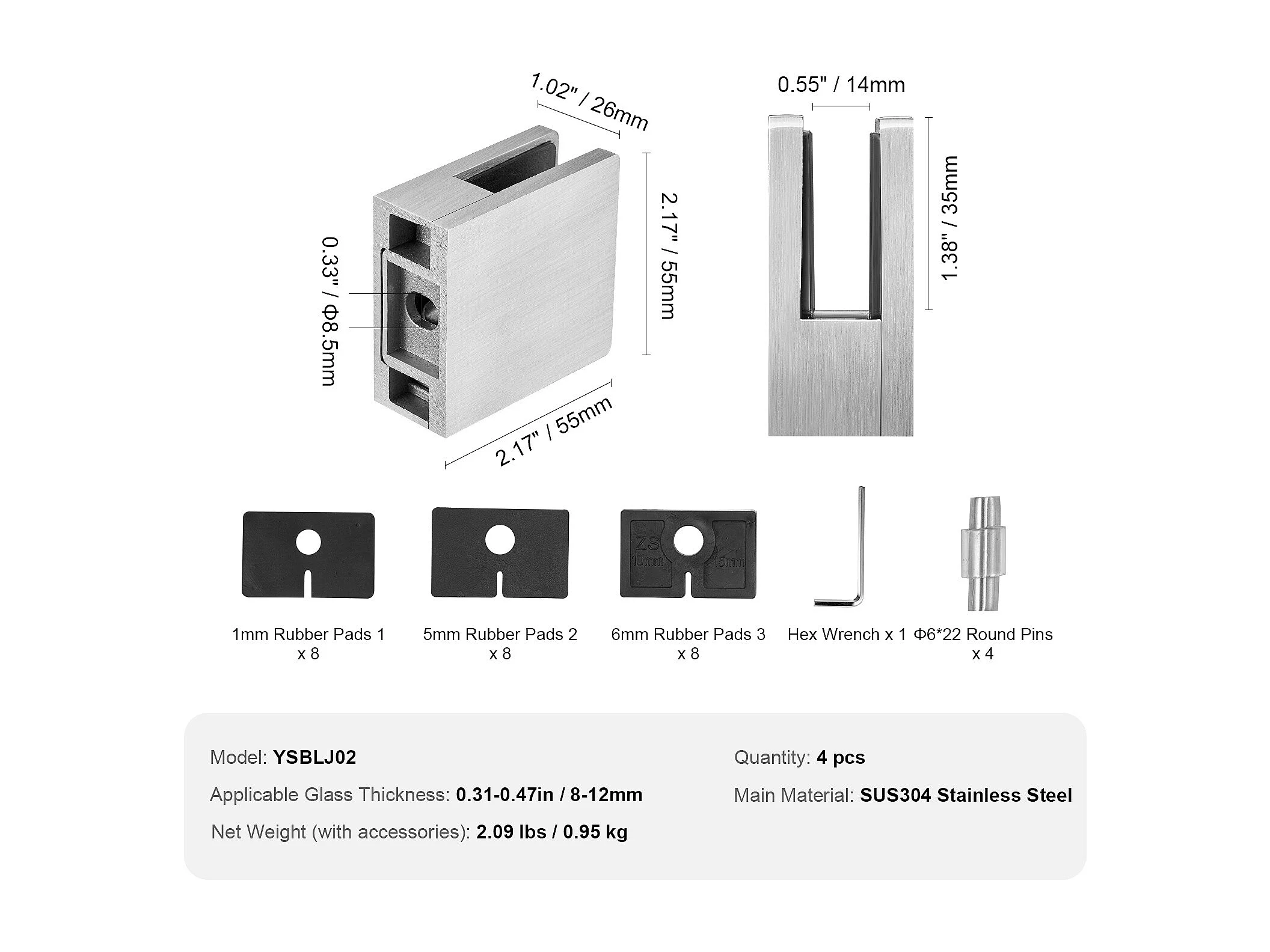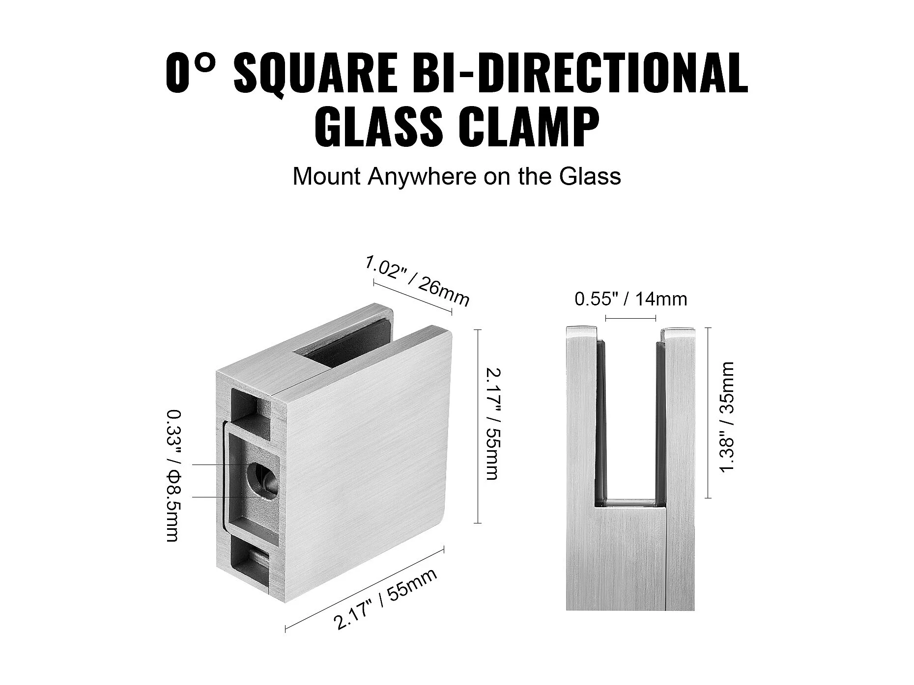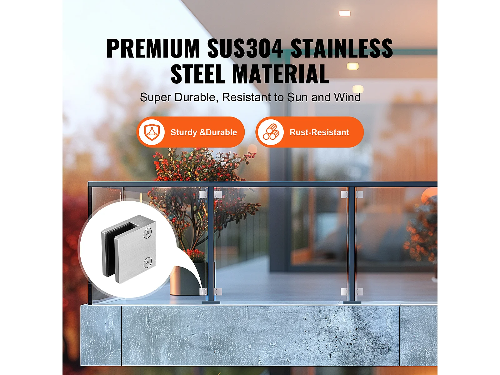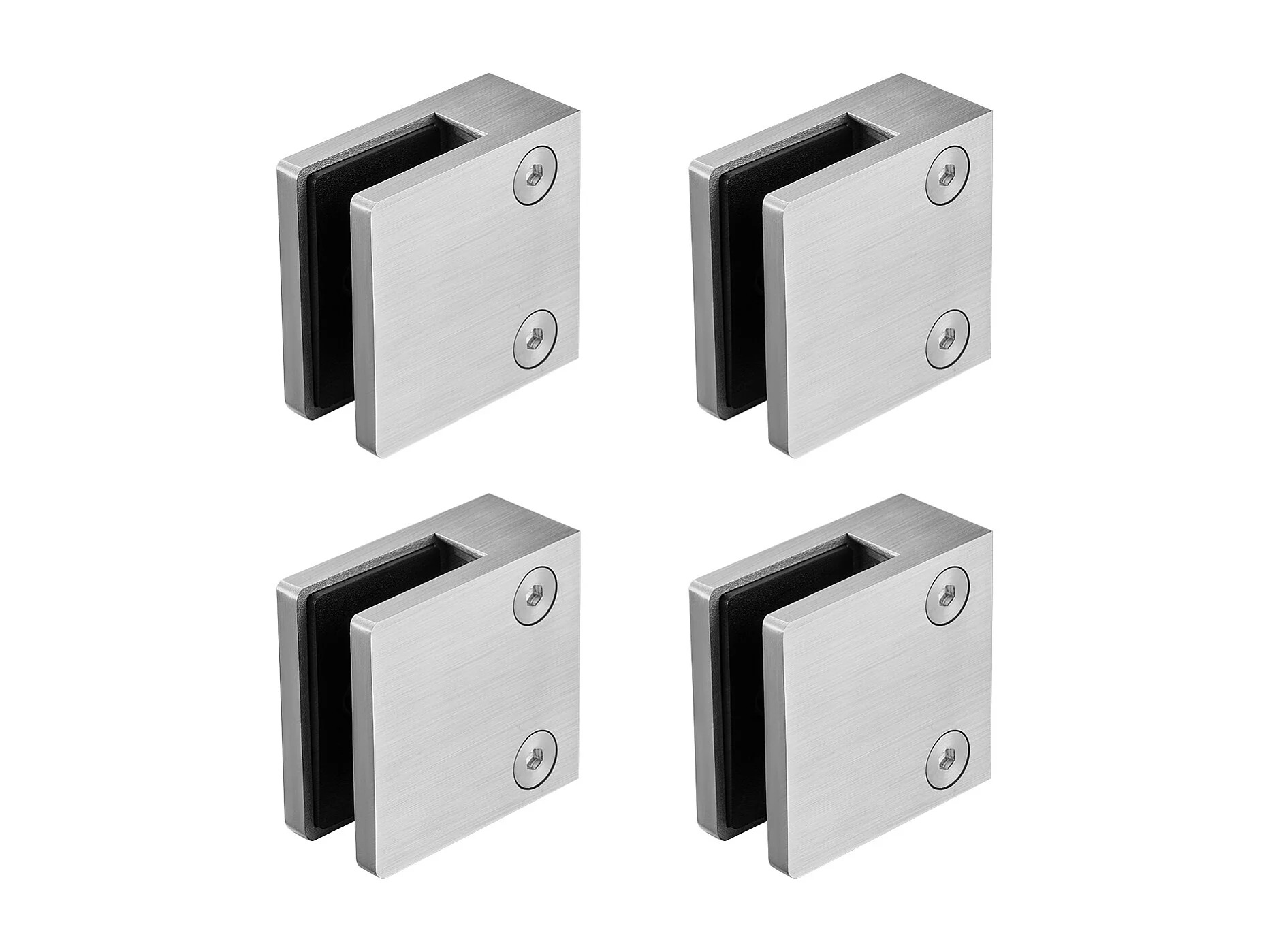 Glasklemme, SucceBuy 4er-Pack Quadratische Glasklemmen-Geländerhalterungen für 0,8–1,2 cm Glas, Silber