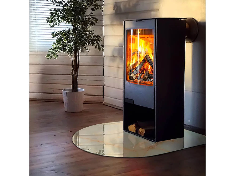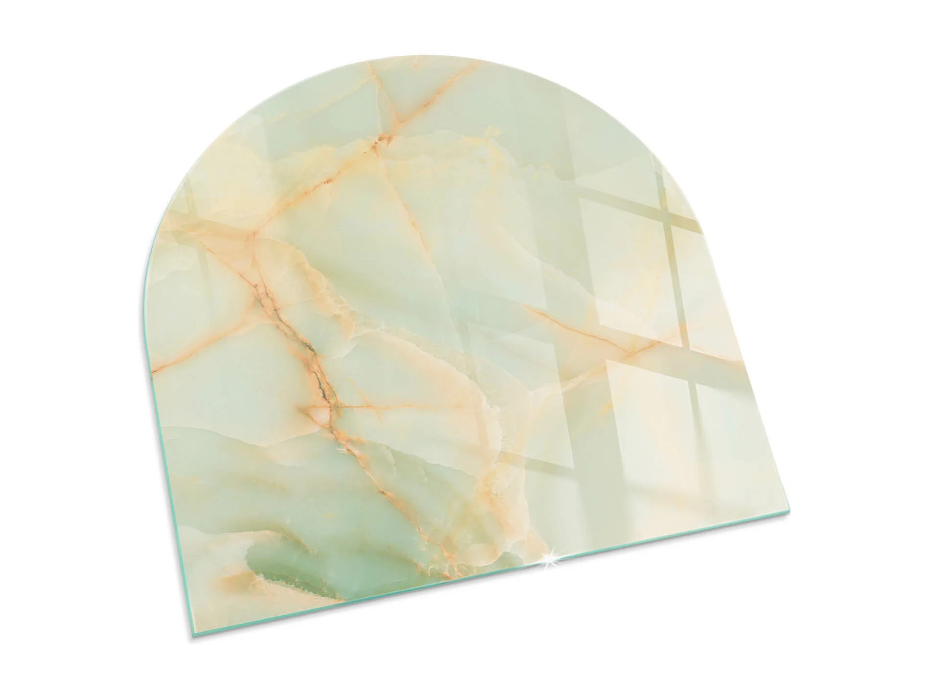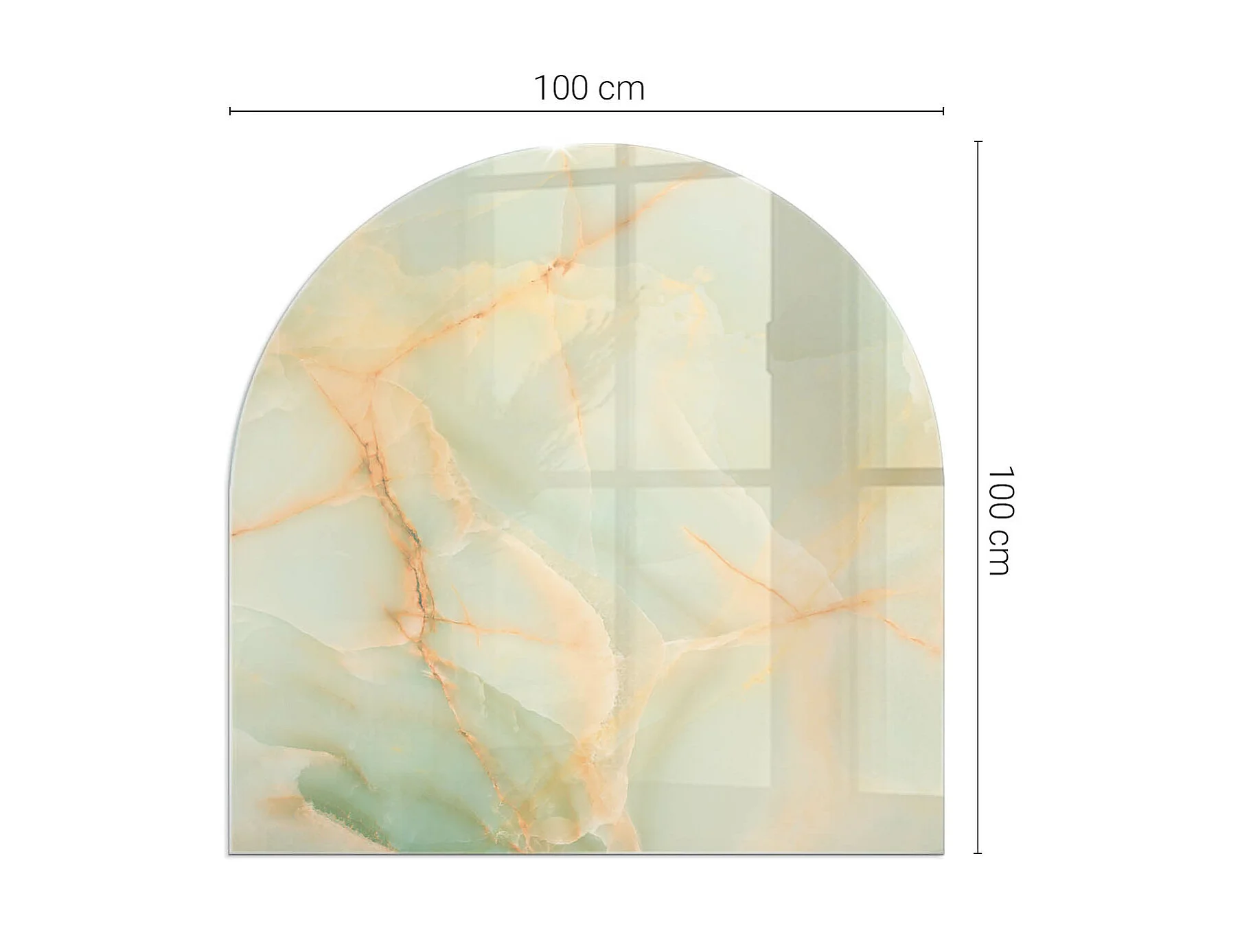 Glasplatte zum Schutz vor Funkenflug, Kaminauflage - halbrund - 100x100 - Steinmuster mit Partikeln