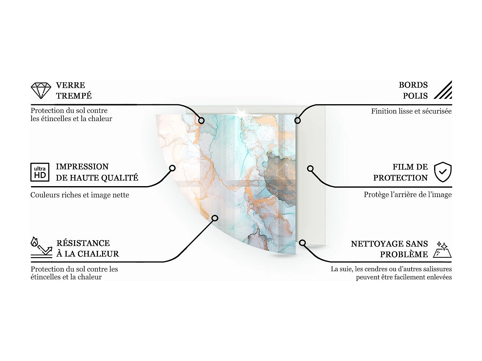 Glasplatte zum Schutz vor Funkenflug, Kaminauflage - Ein Viertel - 1/4 100x100 - Elegante Blätter in der Textur