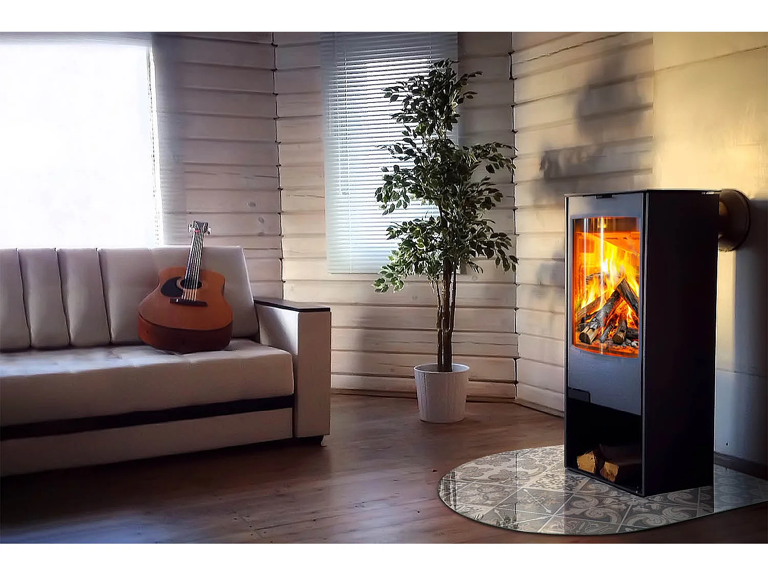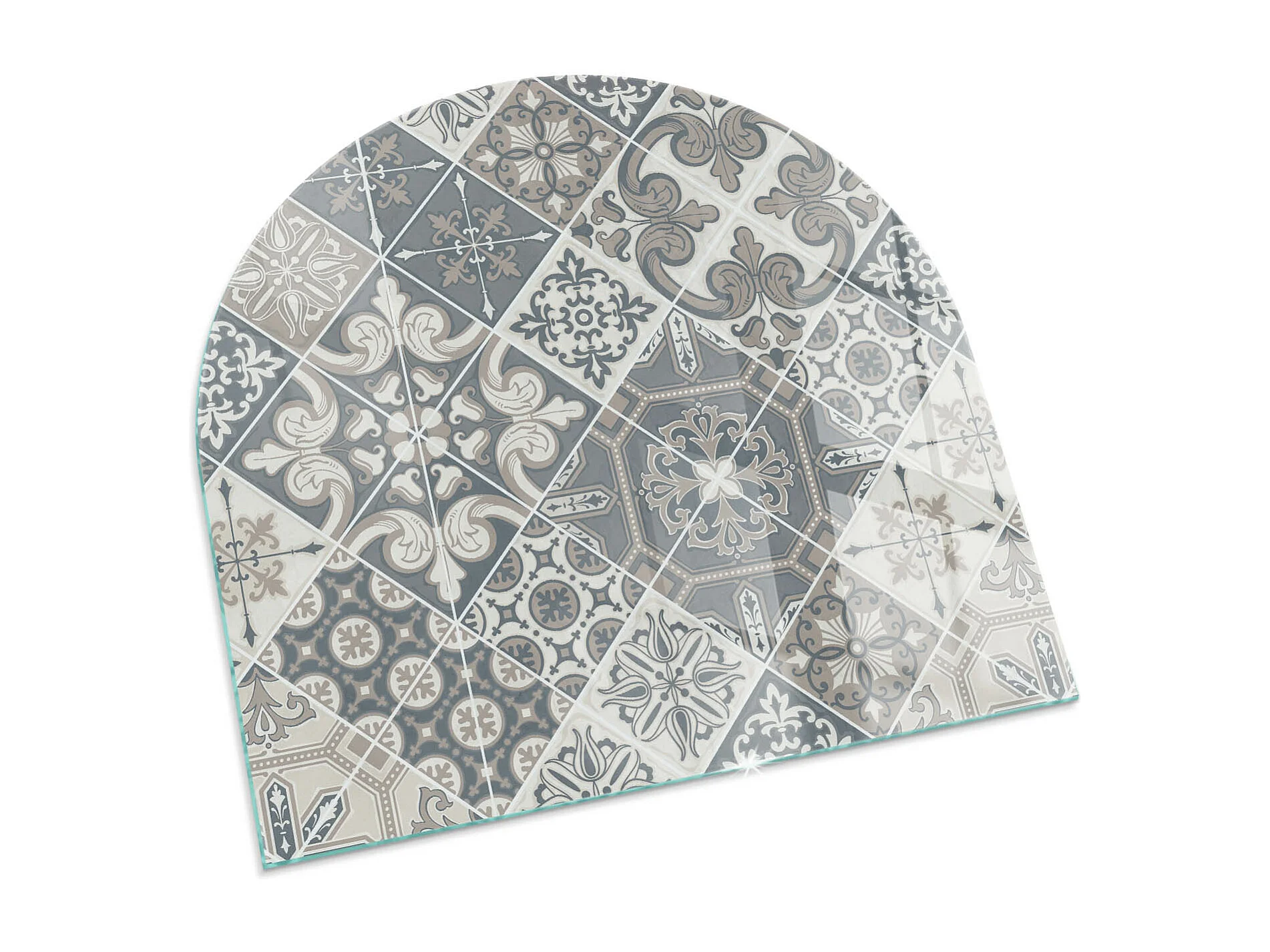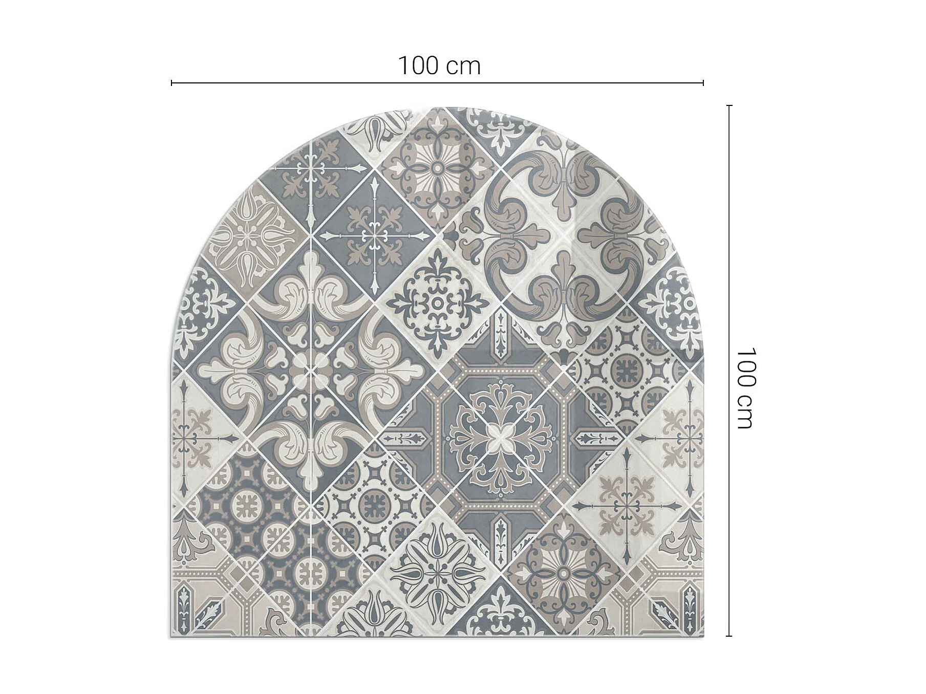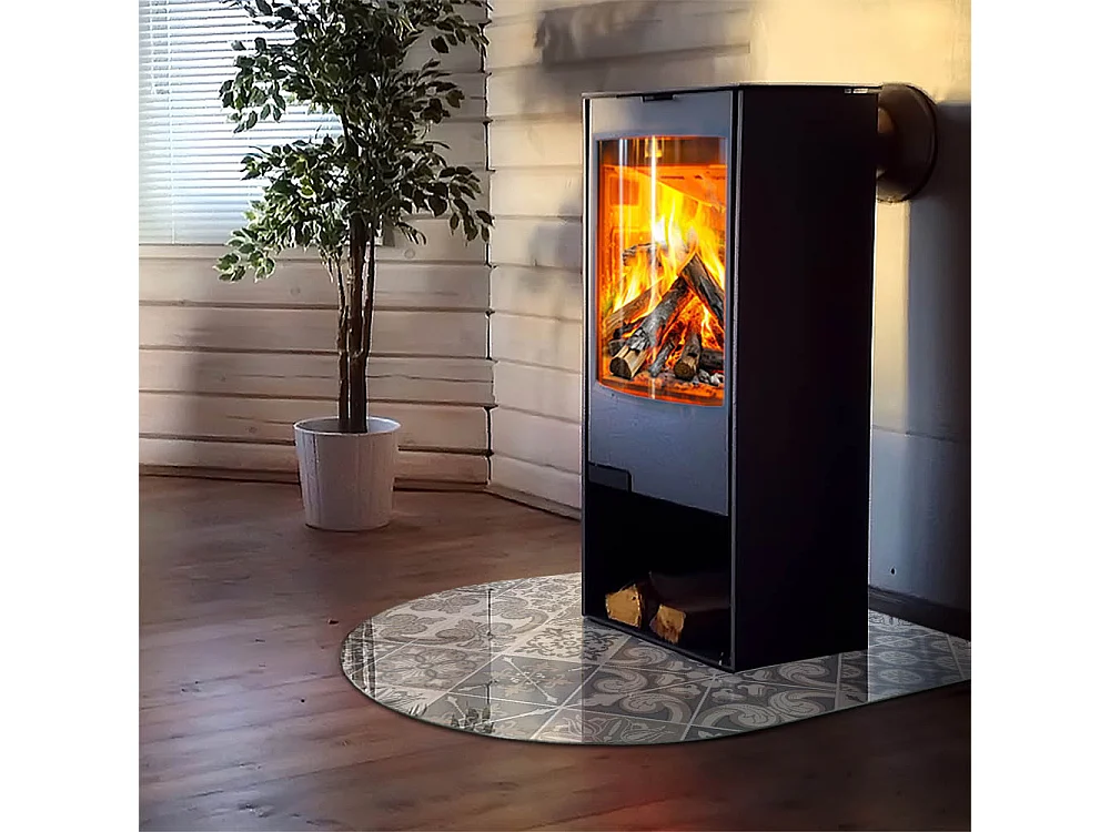 Glasplatte zum Schutz vor Funkenflug, Kaminauflage - halbrund - 100x100 - Rohe Betonstruktur