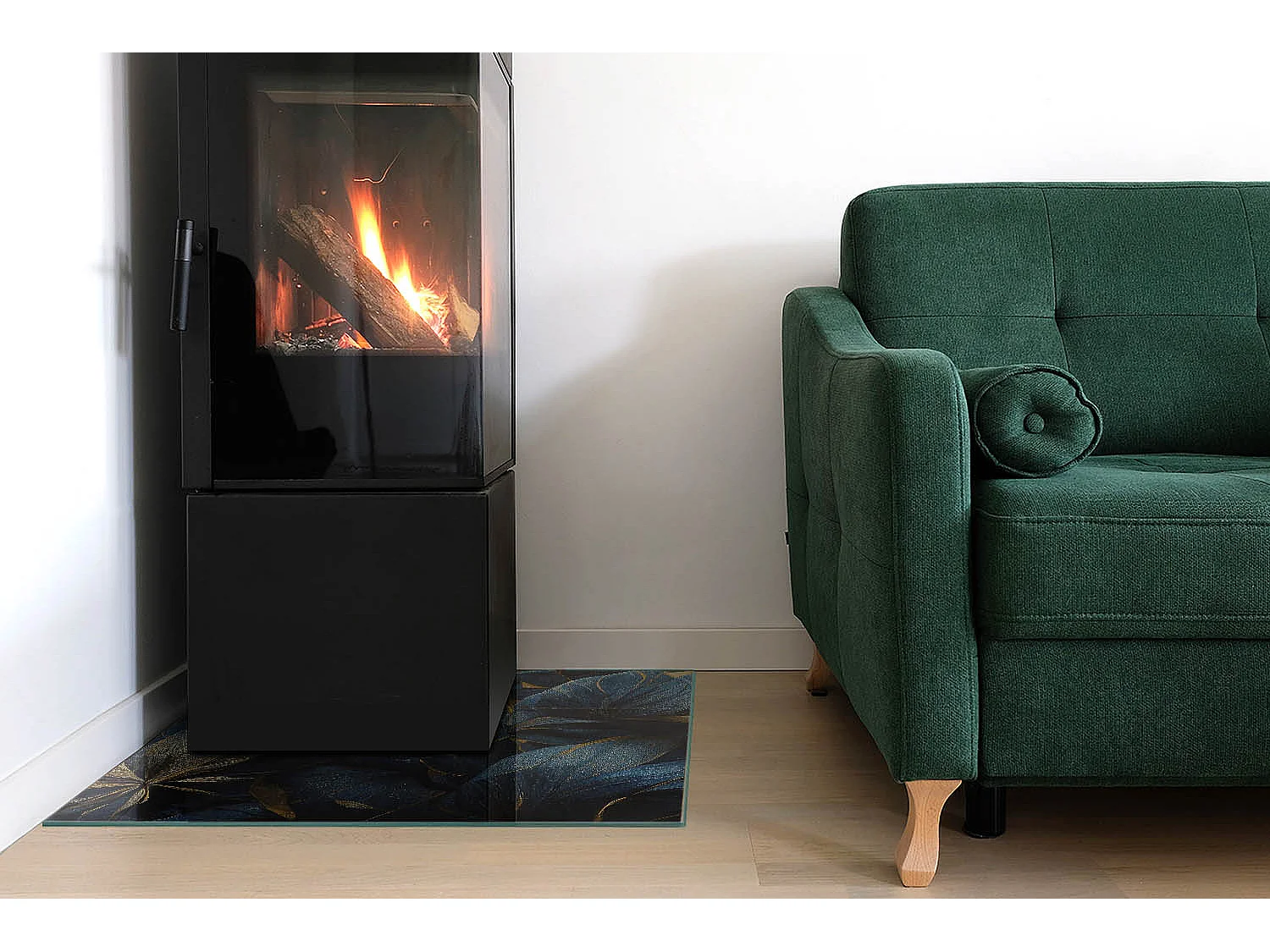Glasplatte zum Schutz vor Funkenflug, Kaminauflage - Quadrat - 60x60 - Elegante Blätter in der Textur