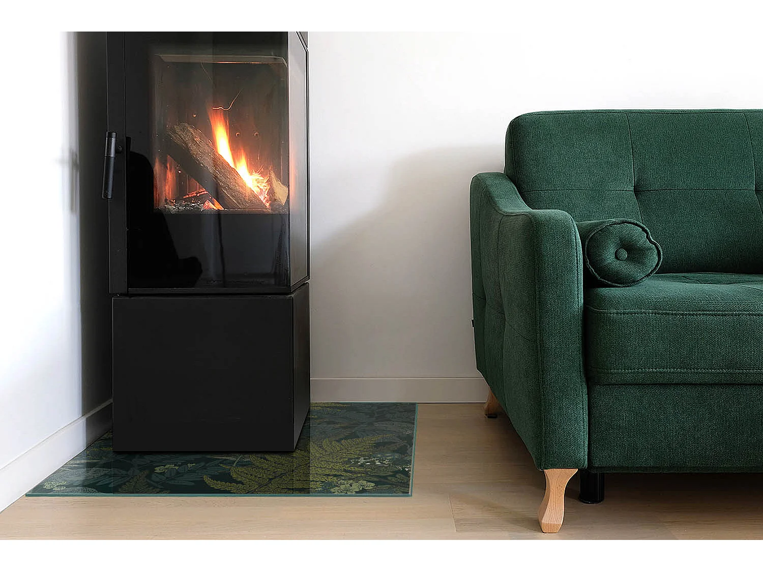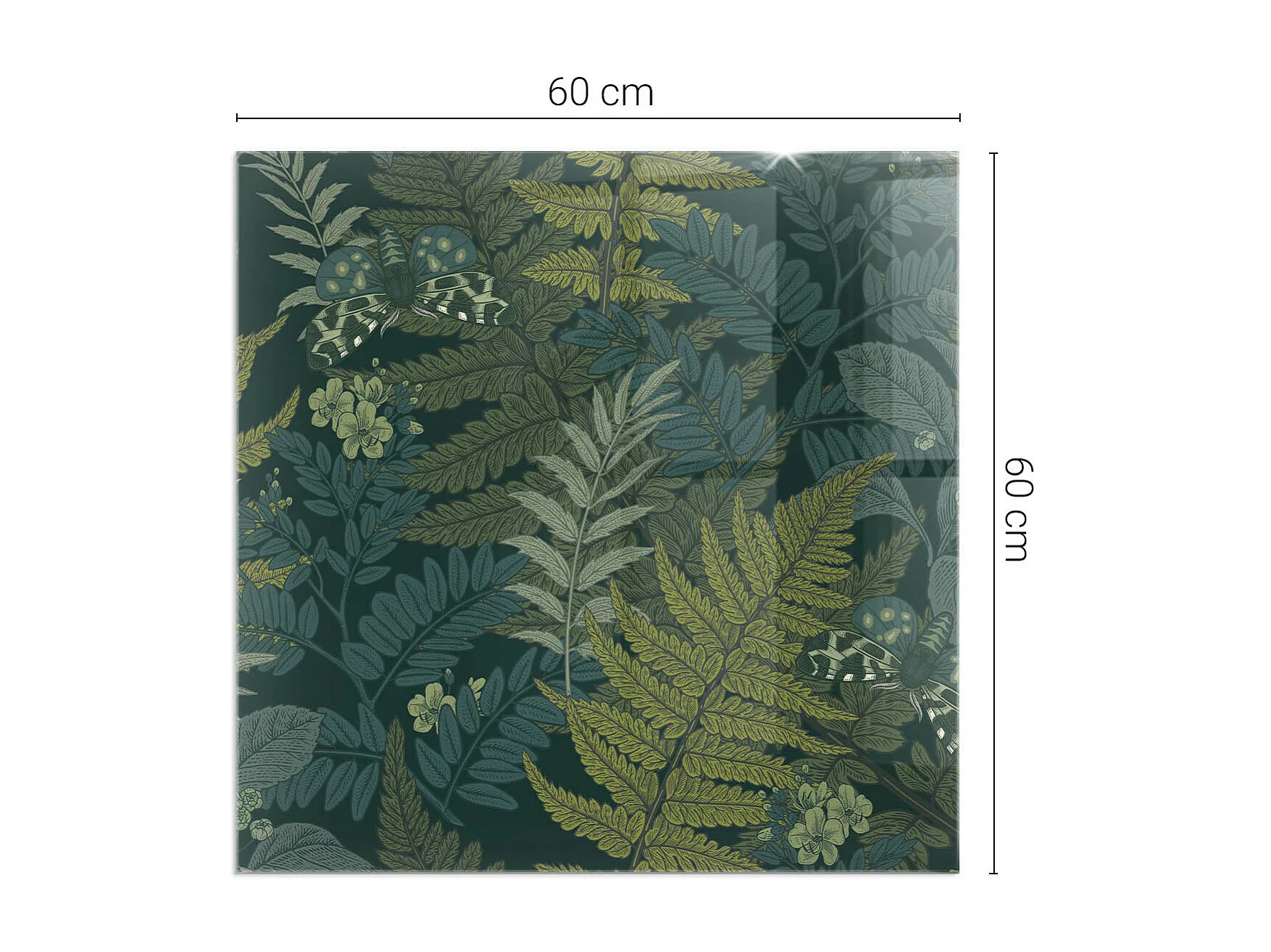 Glasplatte zum Schutz vor Funkenflug, Kaminauflage - Quadrat - 60x60 - Pflanzenmotive mit Schmetterlingen