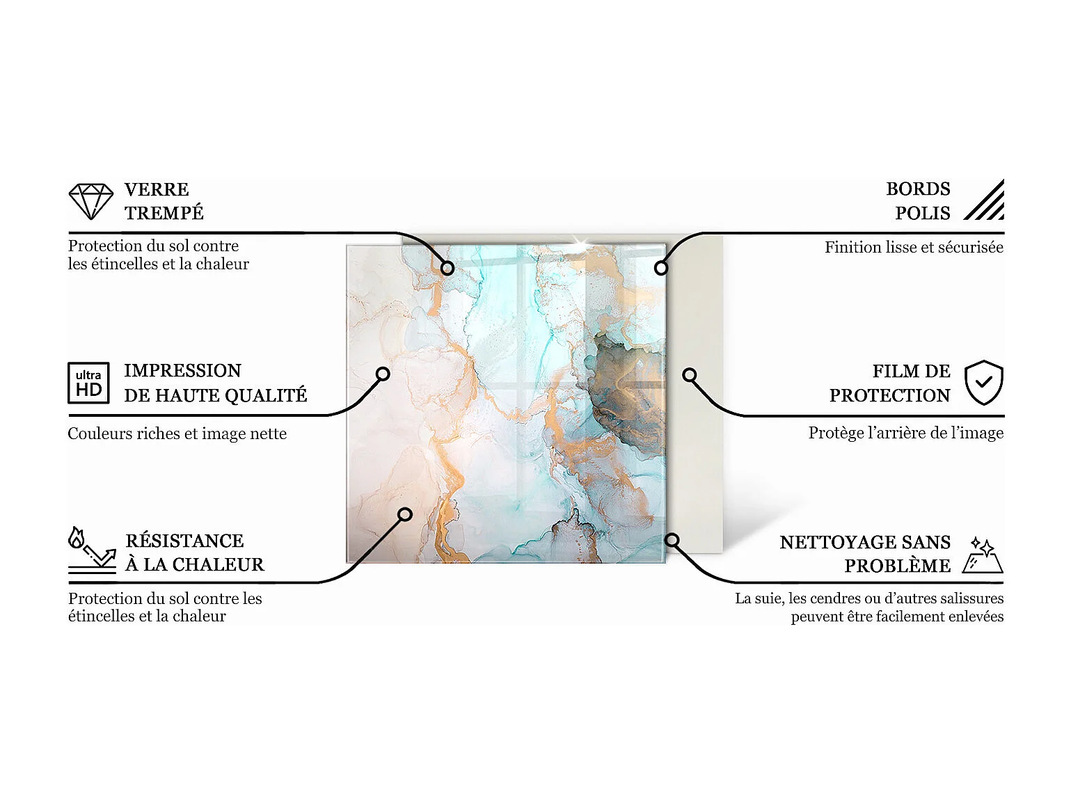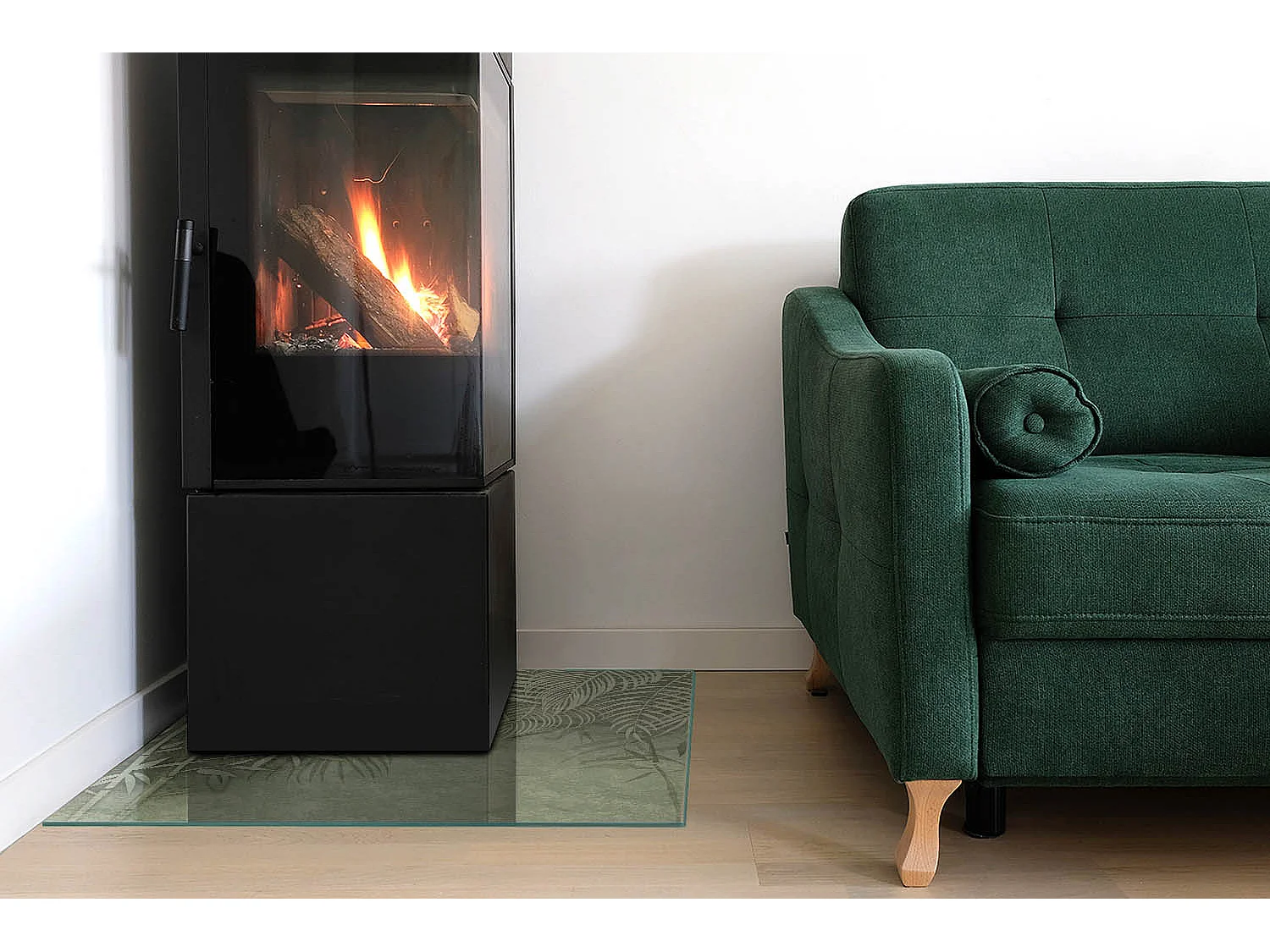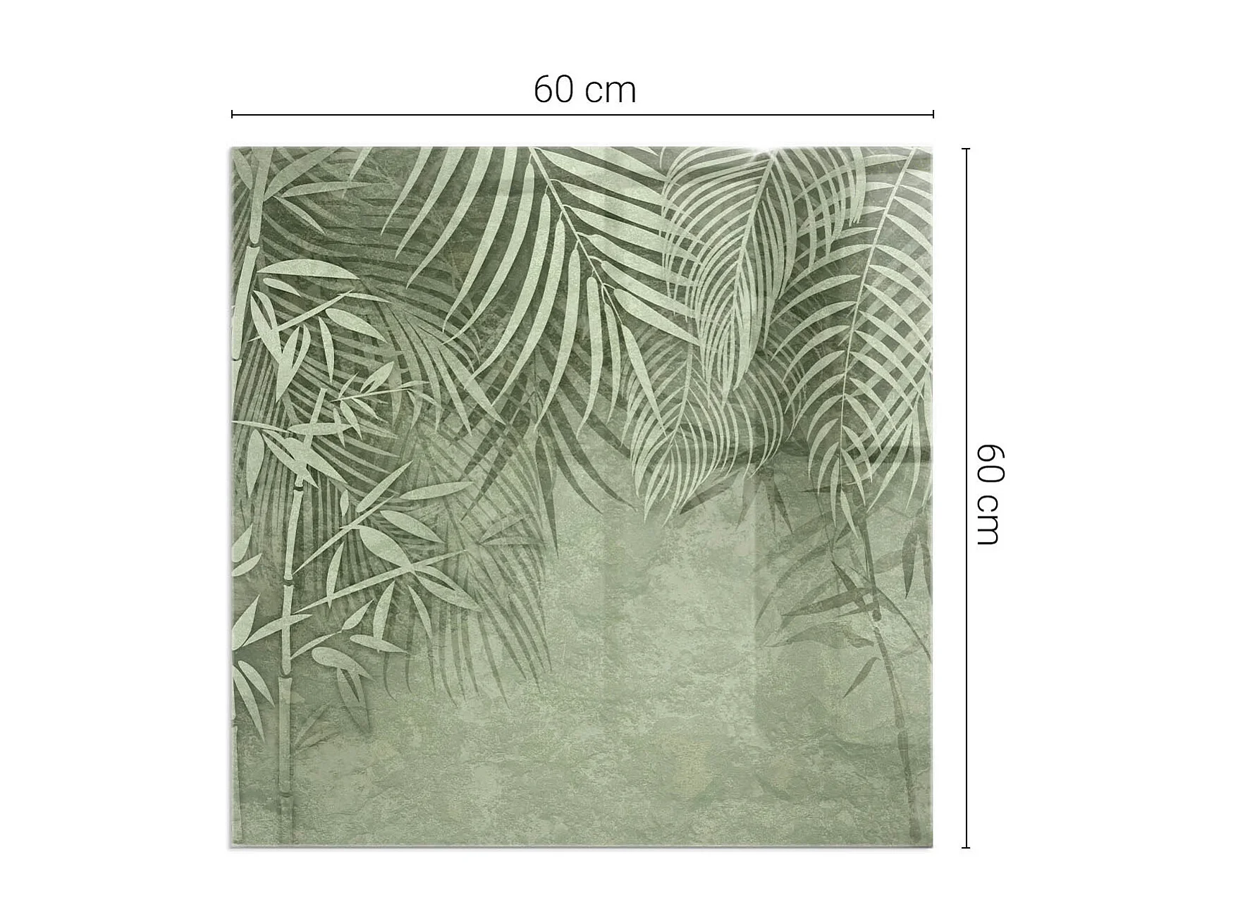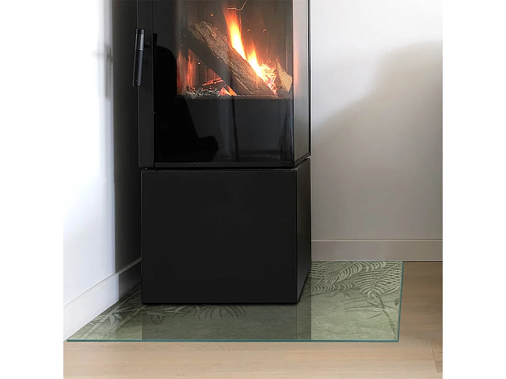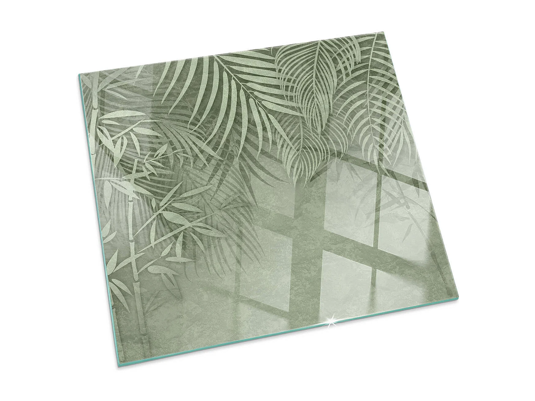 Glasplatte zum Schutz vor Funkenflug, Kaminauflage - Quadrat - 60x60 - Tropische Blätter im Hintergrund