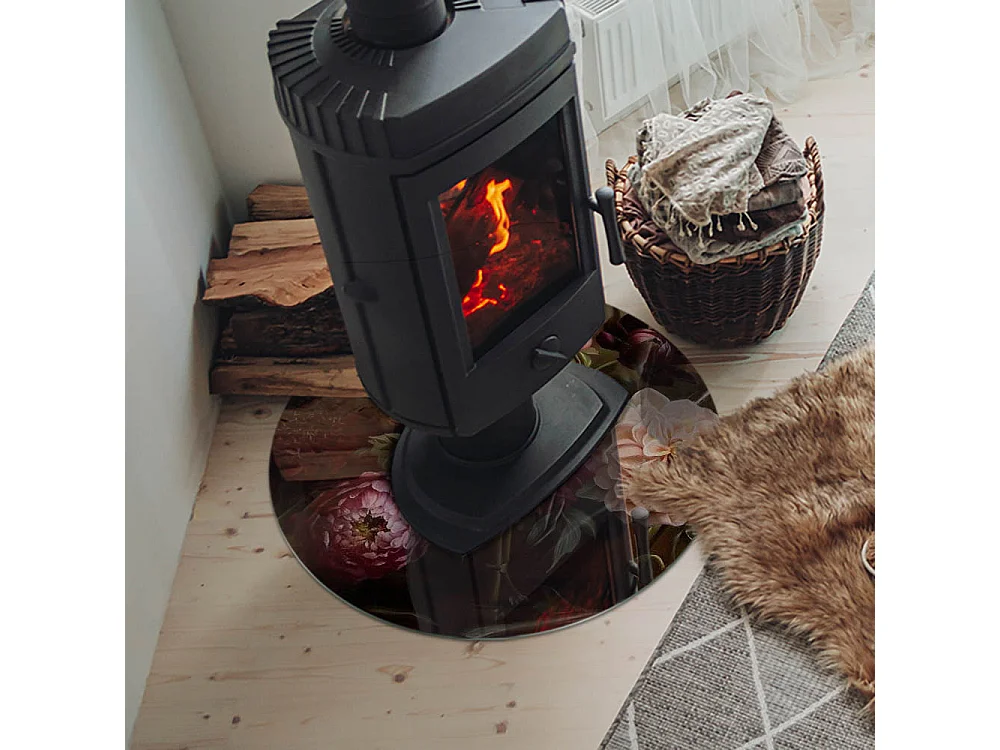 Glasplatte zum Schutz vor Funkenflug, Kaminauflage - Rad - 60x60 - Blumenstrauß im Detail