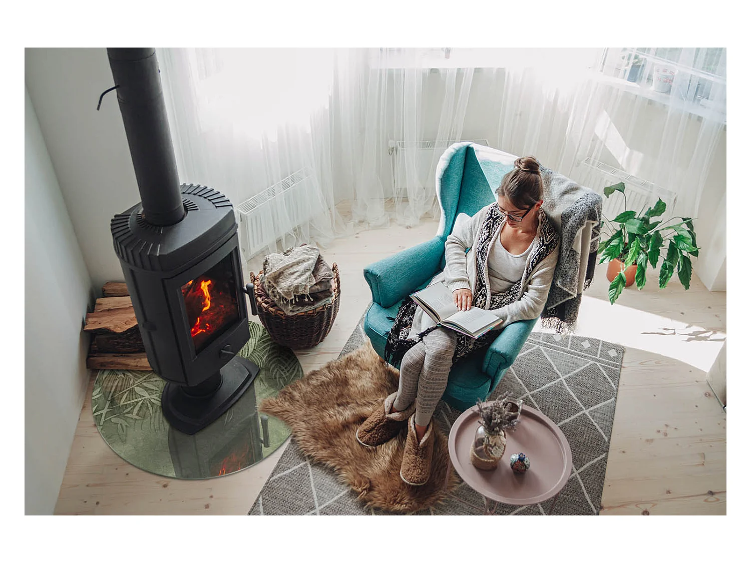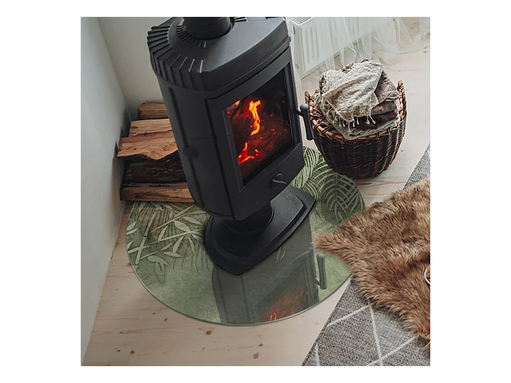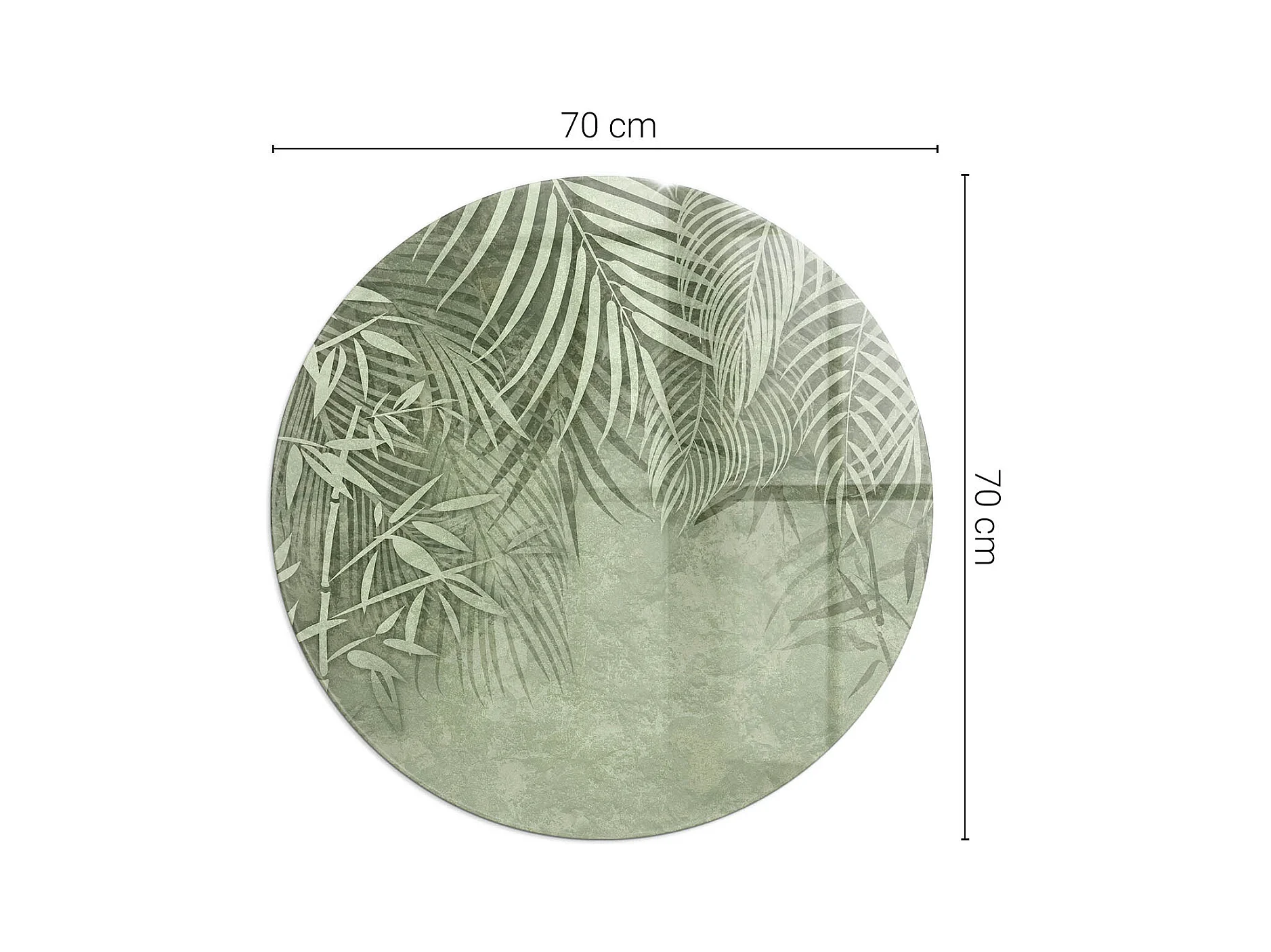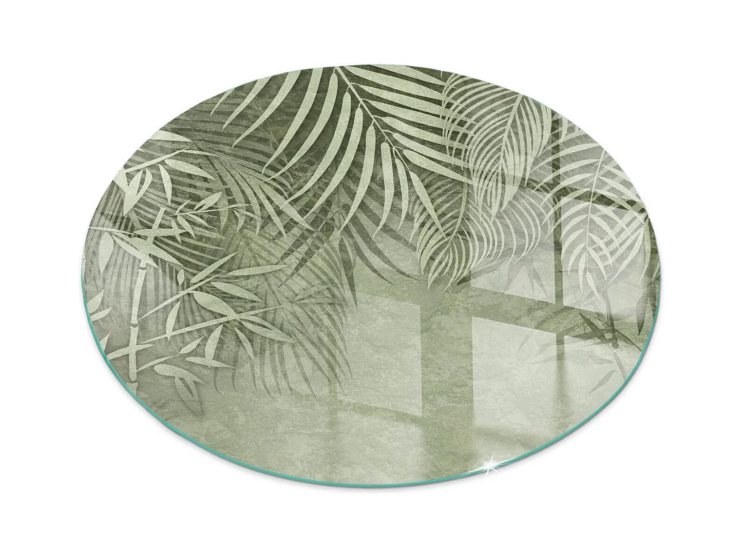 Glasplatte zum Schutz vor Funkenflug, Kaminauflage - Rad - 70X70 - Tropische Blätter im Hintergrund
