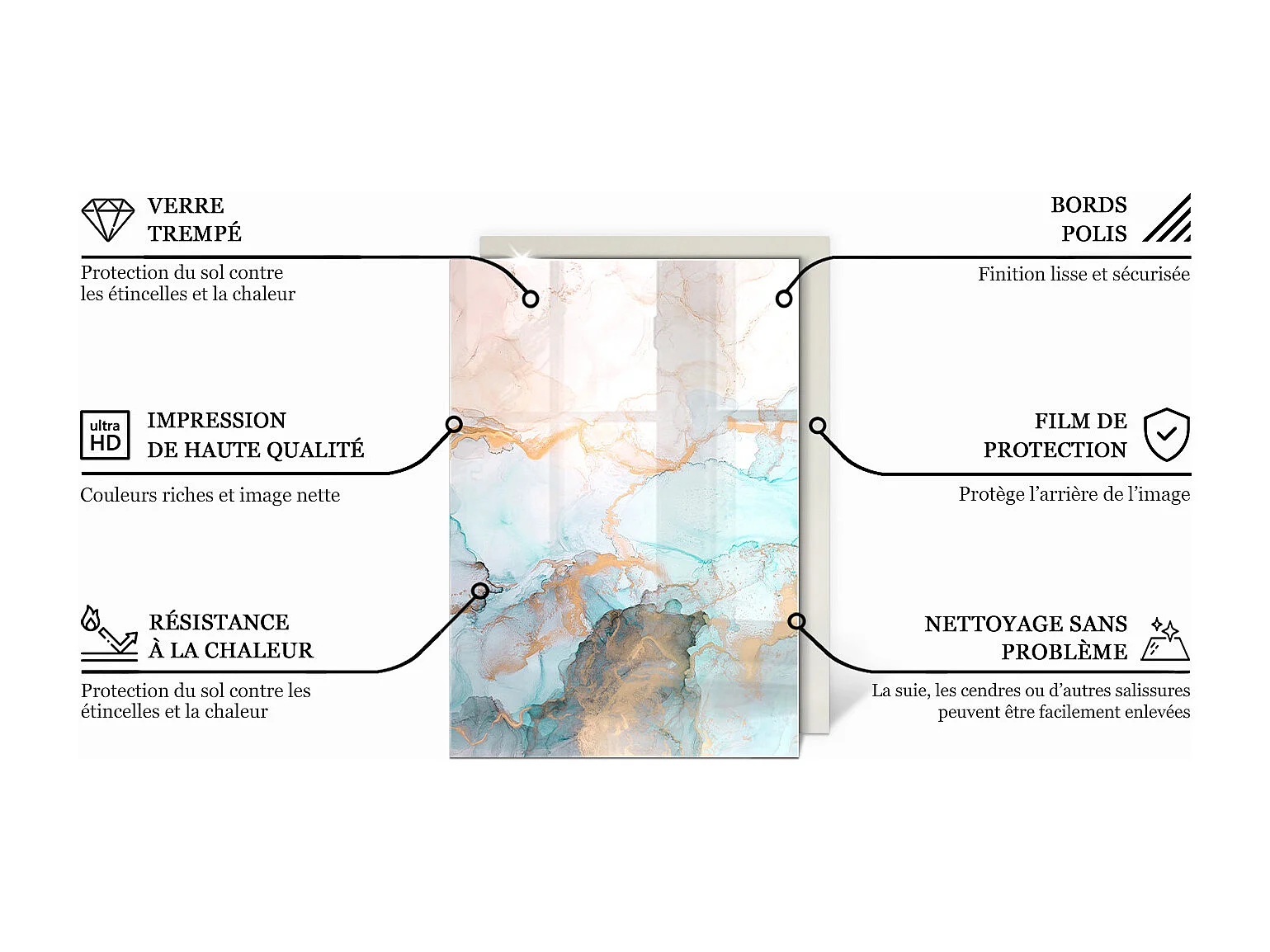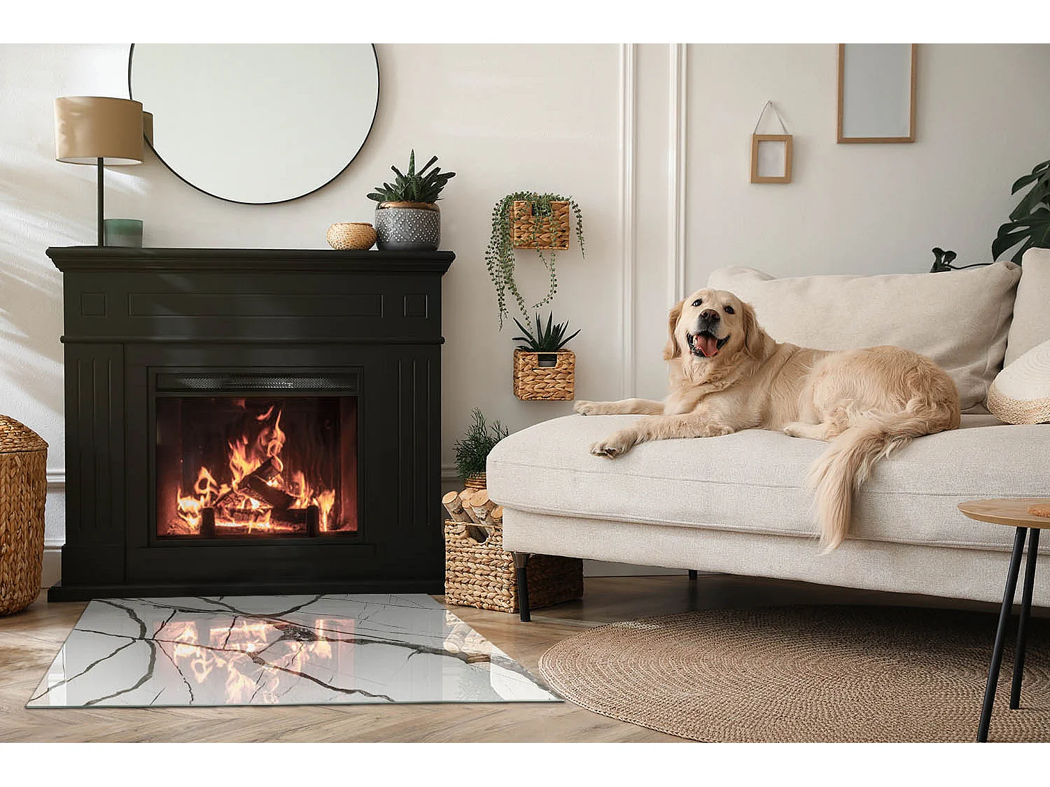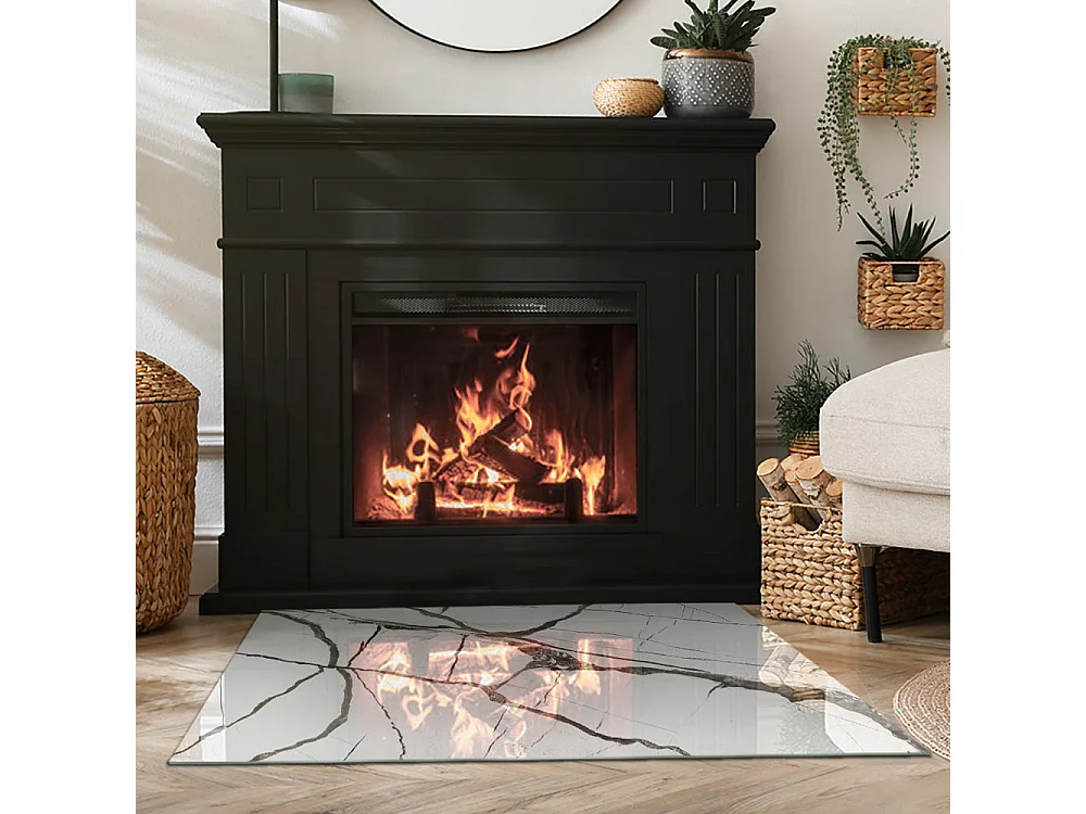 Glasplatte zum Schutz vor Funkenflug, Kaminauflage - Rechteck - 100x70 - Marmoradermuster