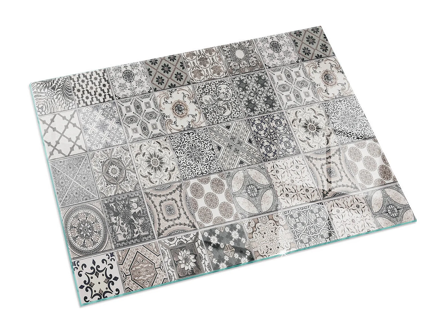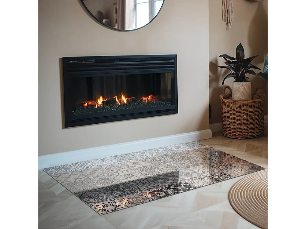 Glasplatte zum Schutz vor Funkenflug, Kaminauflage - Rechteck - 120x80 - Dekorative Fliesenmuster