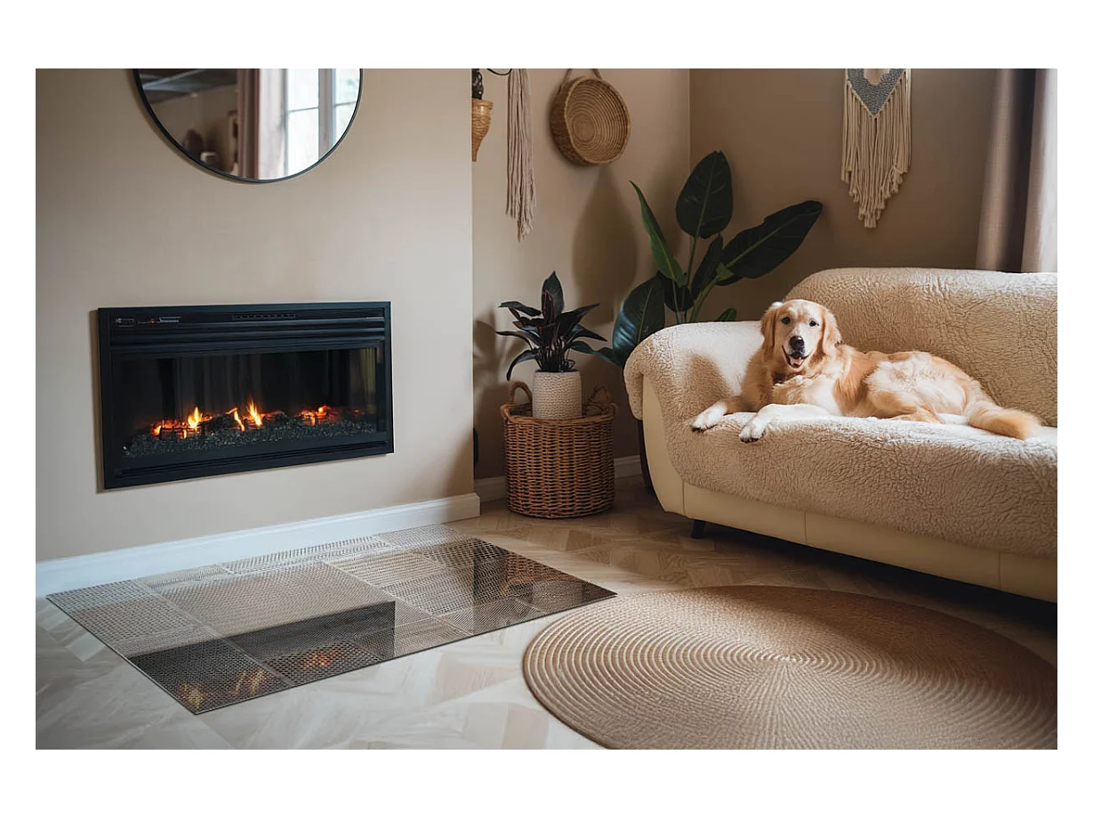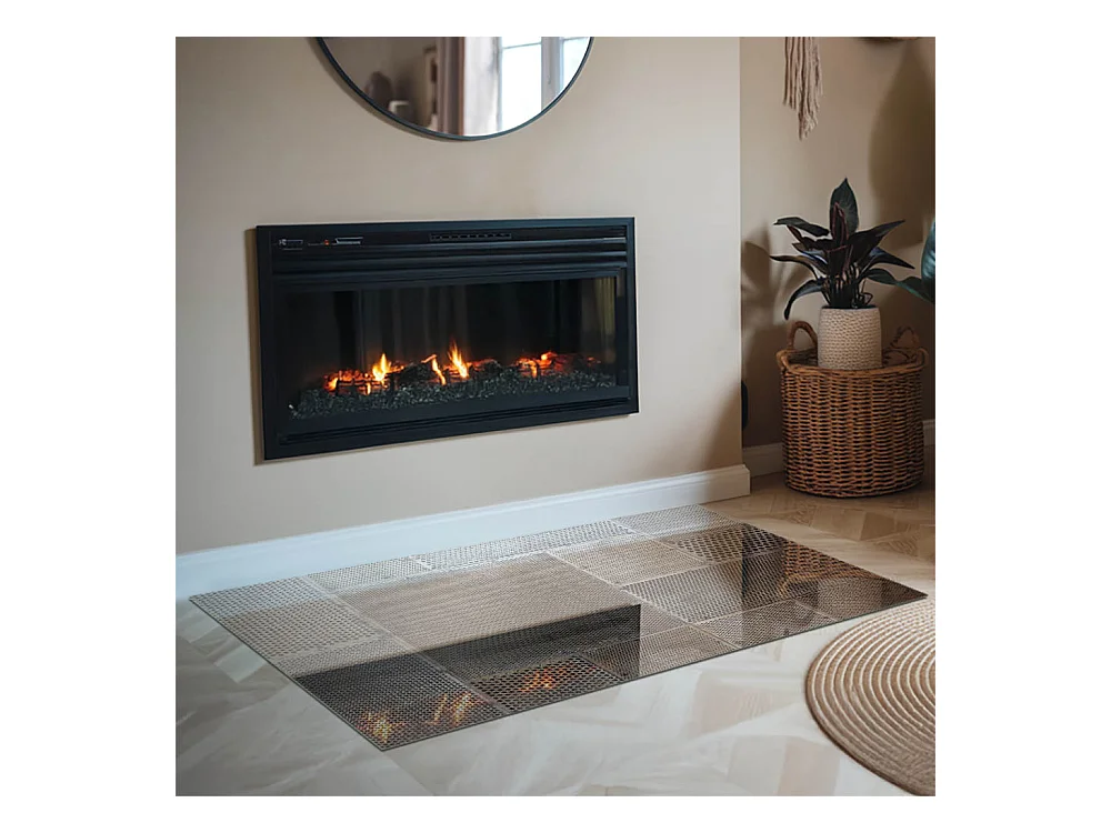 Glasplatte zum Schutz vor Funkenflug, Kaminauflage - Rechteck - 120x80 - Muster aus perforiertem Blech