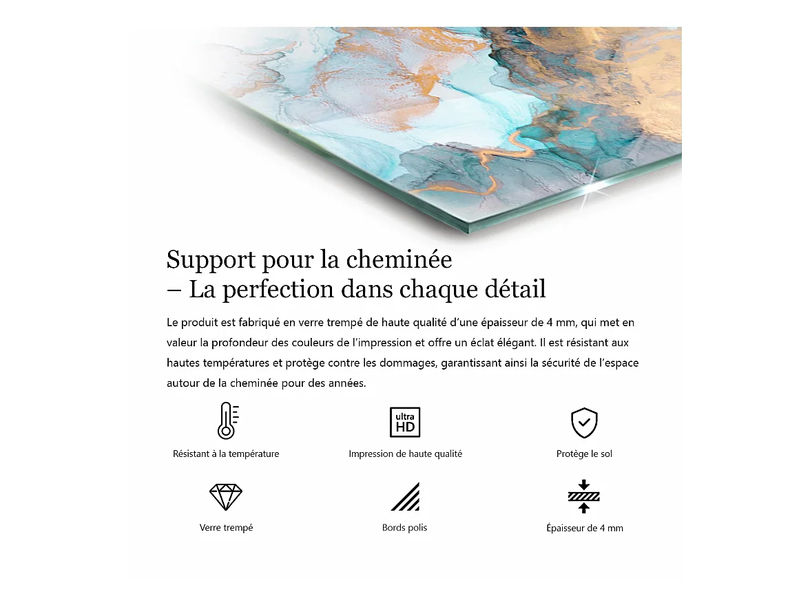 Glasplatte zum Schutz vor Funkenflug, Kaminauflage - Rechteck - 80x60 - Elfenbeinfarbe