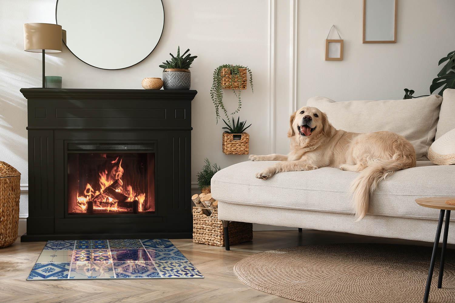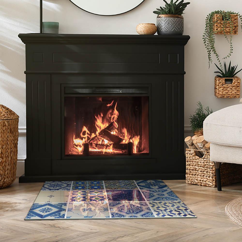 Glasplatte zum Schutz vor Funkenflug, Kaminauflage - Rechteck - 80x60 - Wellen aus zarten Linien