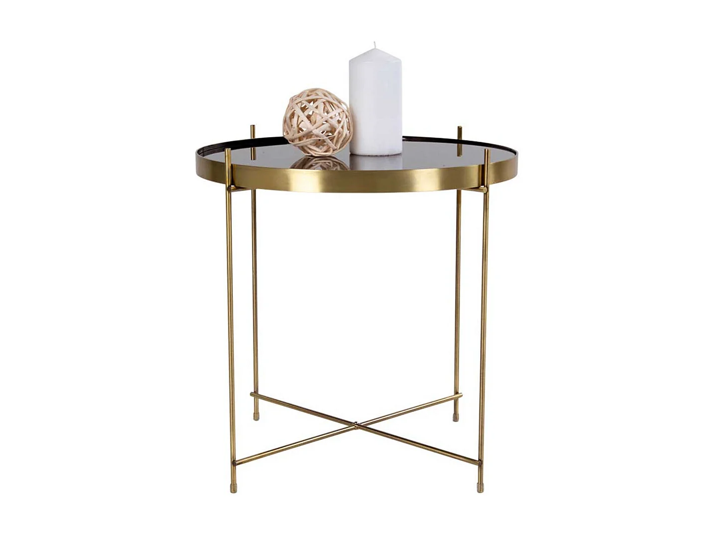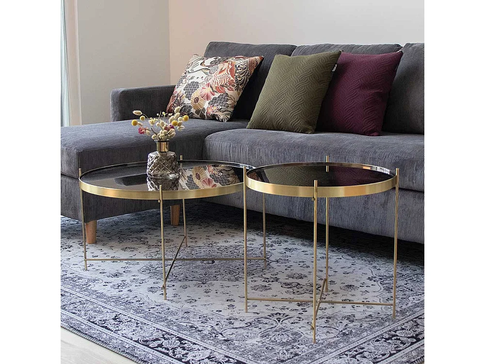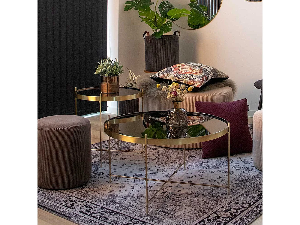 Glastisch in Messingfarben rund