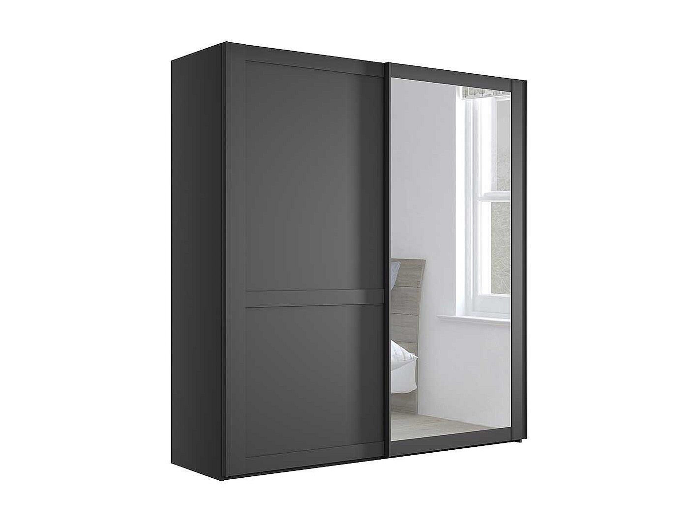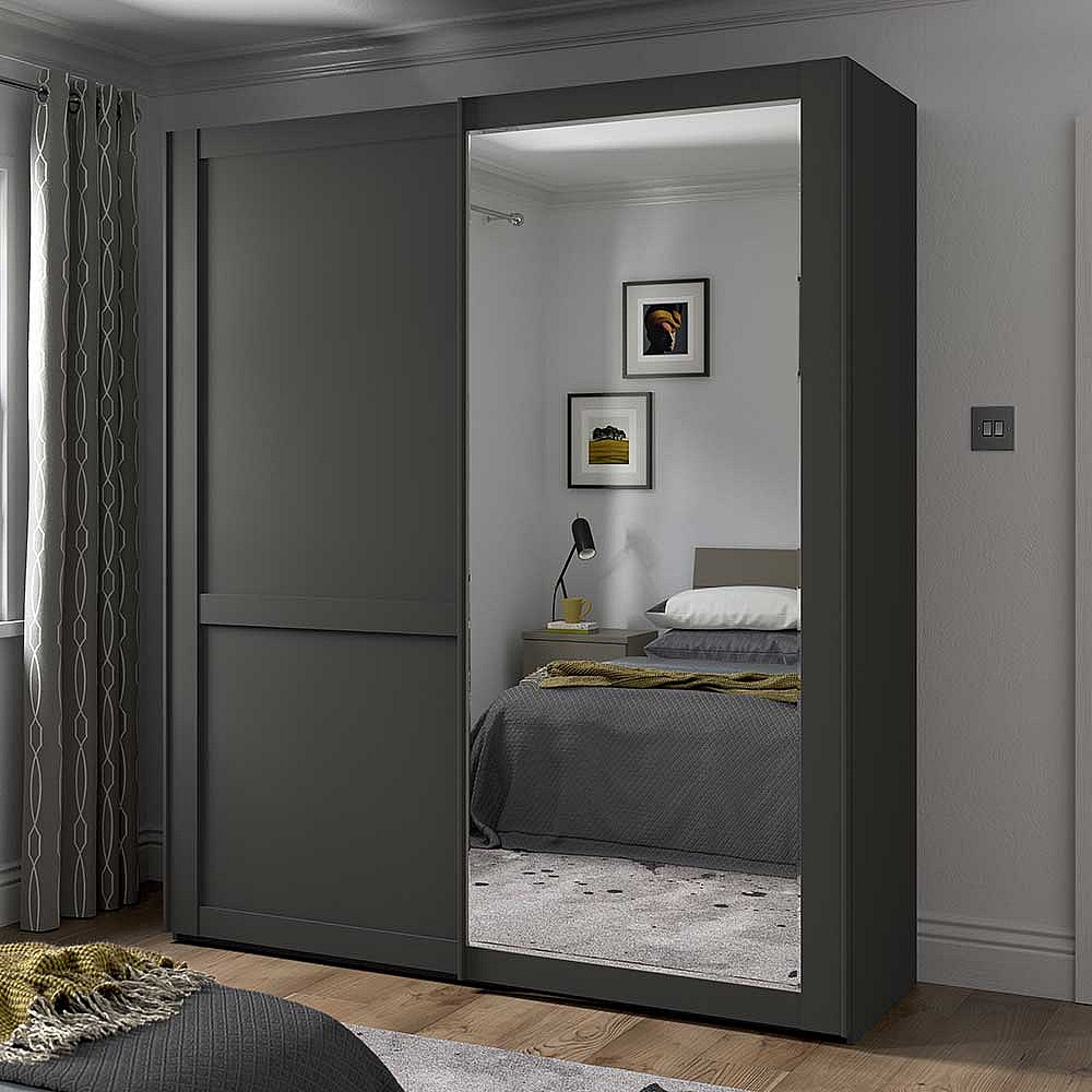 Gleittürenschrank Dunkelgrau mit Spiegel modernen Landhausstil