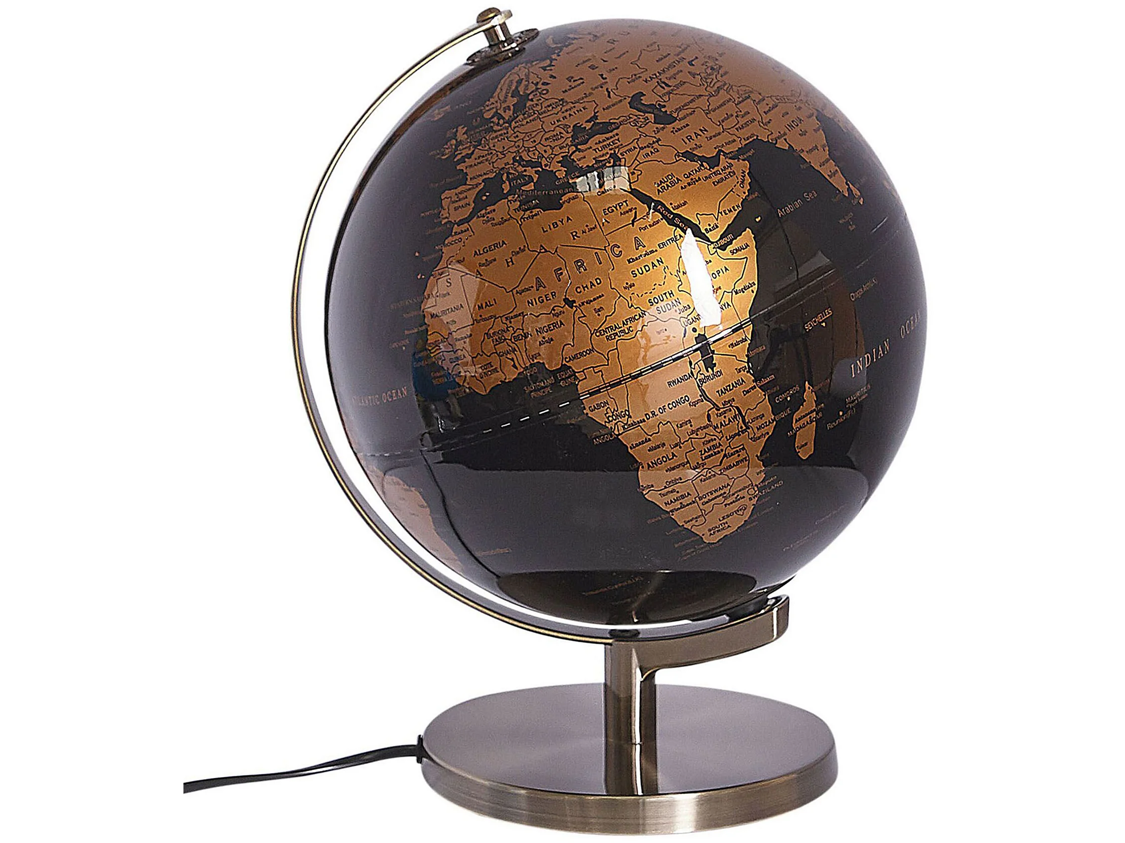 Glänzender, beleuchteter Deko-Globus in Schwarz mit edlem Standfuß Magellan