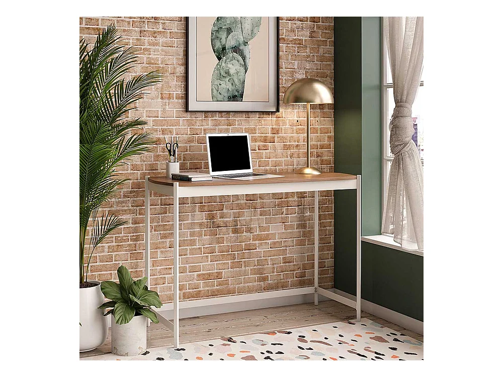 Günstiger Schreibtisch in Walnussfarben und Weiß 107 cm breit