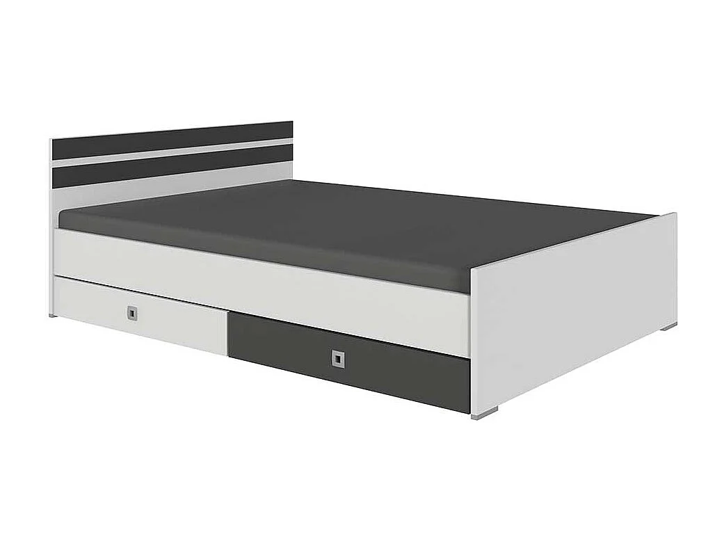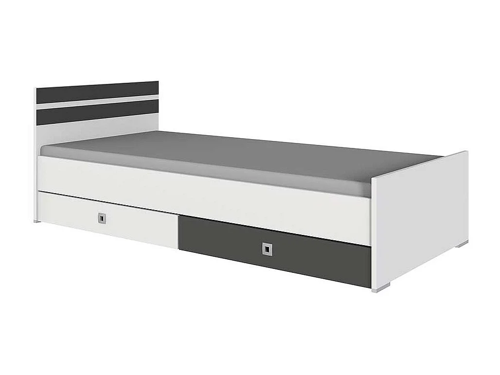 Günstiges Singlebett in Weiß und Dunkelgrau Variante mit Schubladen