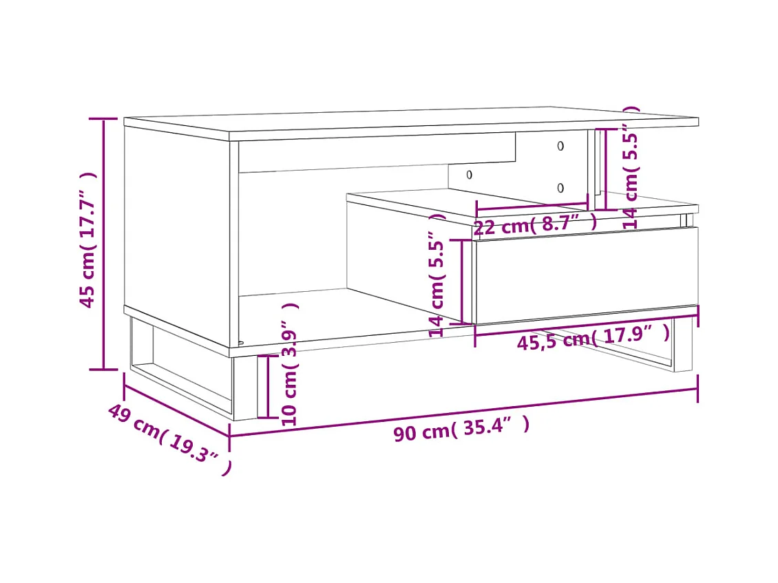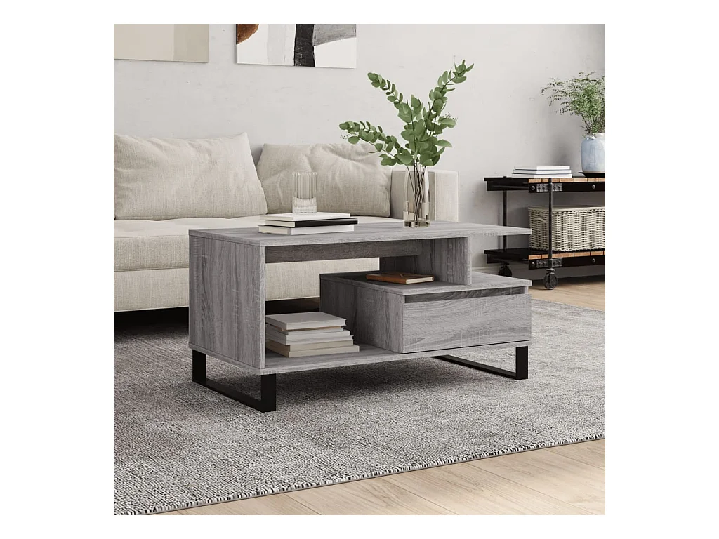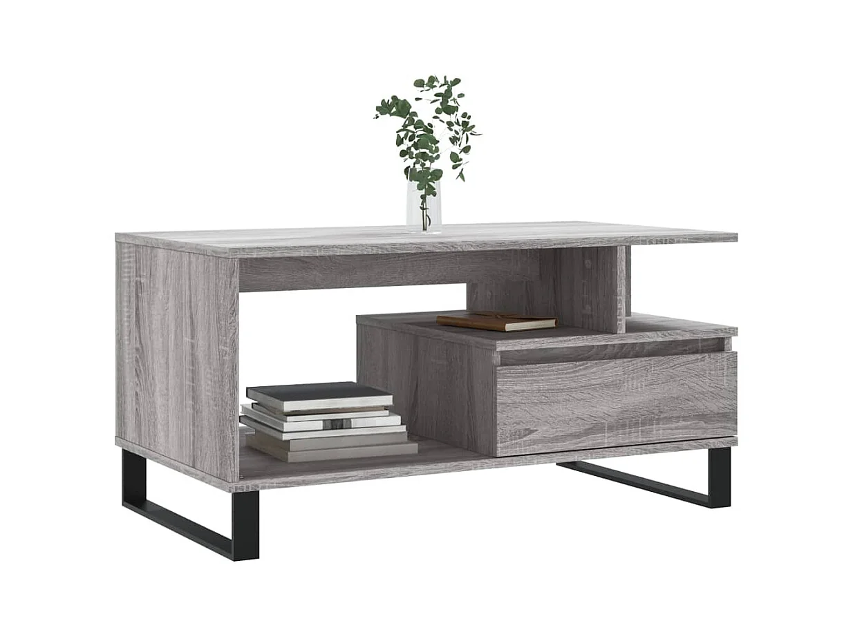 Goldfarbener Couchtisch in Sonoma-Grau, 90 x 49 x 45 cm, Holzwerkstoff