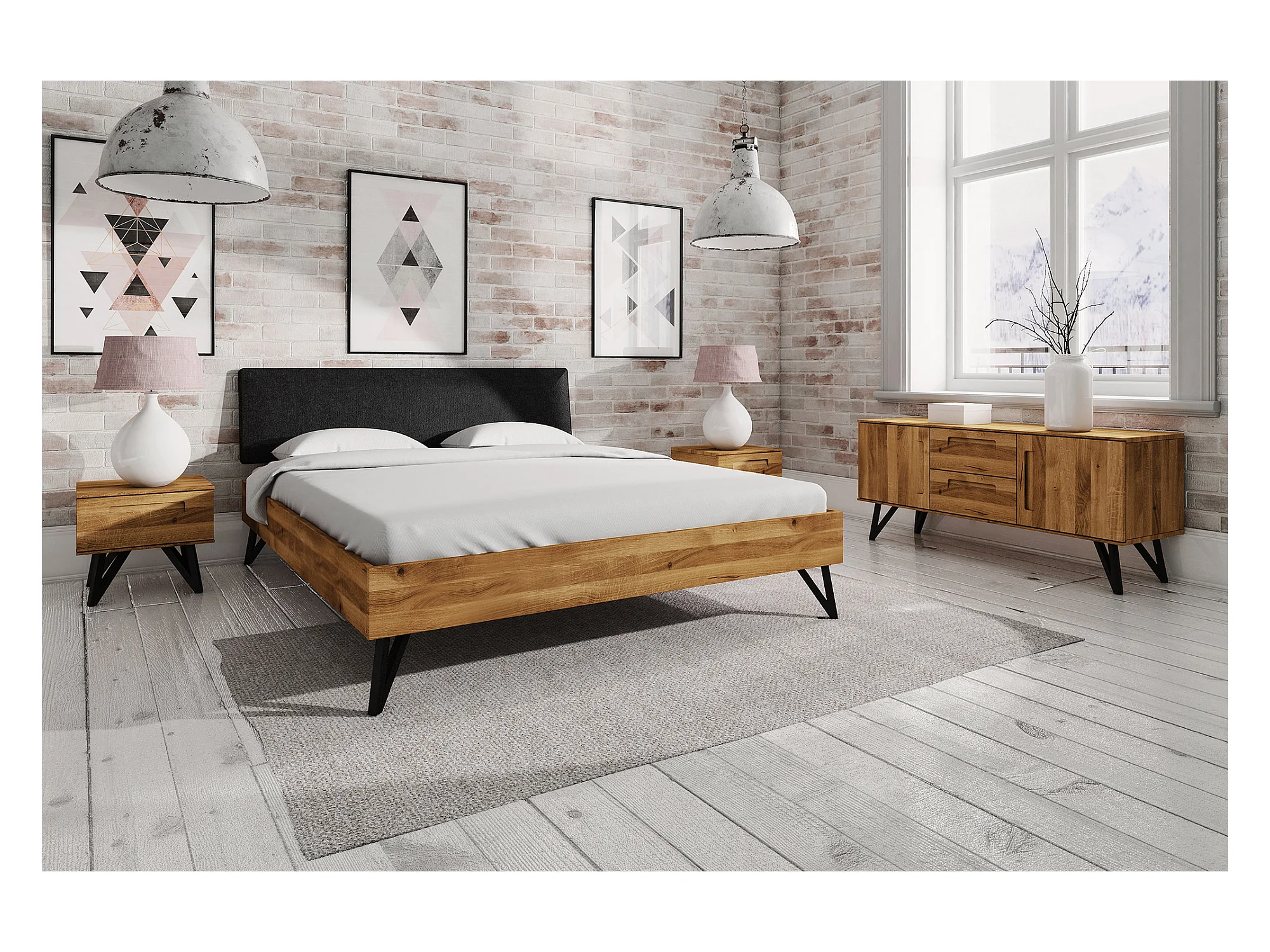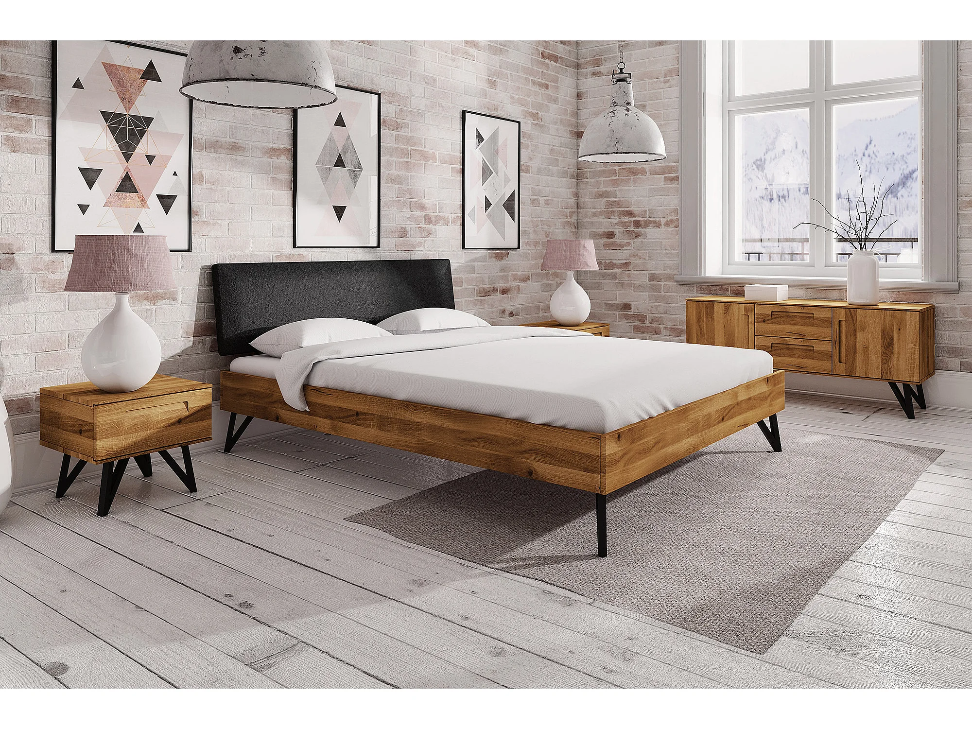 GOLO - Bett mit Polsterkopfteil 120 x 200 aus Wildeiche, naturgeölt