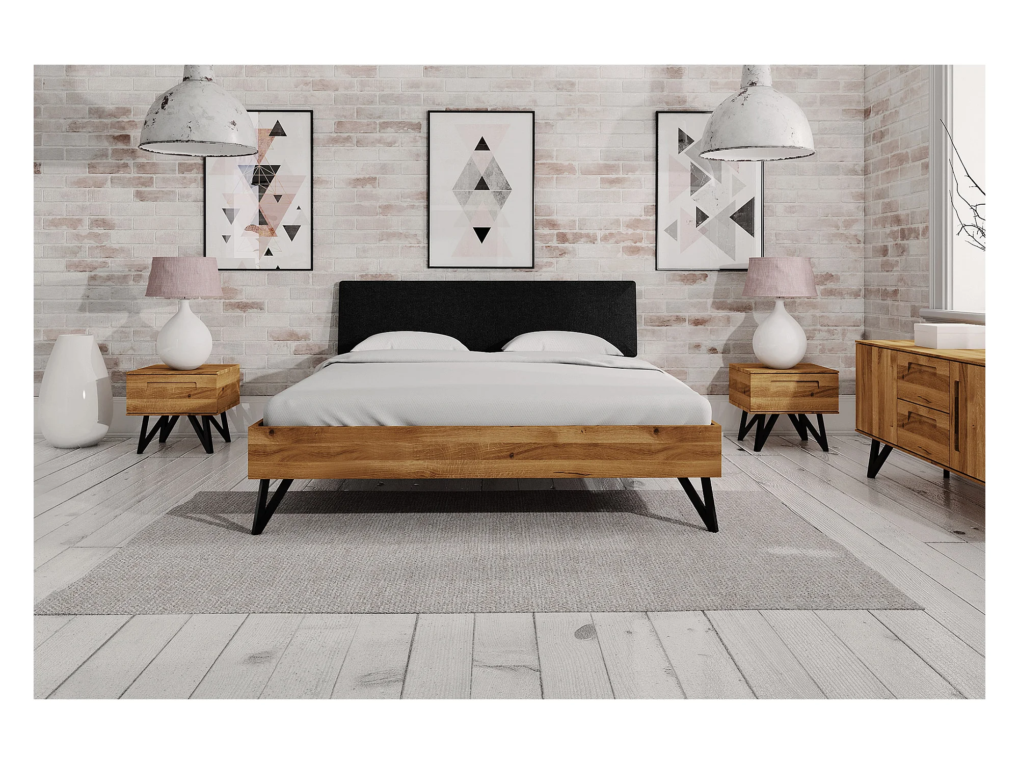 GOLO - Bett mit Polsterkopfteil 140 x 200 aus Wildeiche, naturgeölt