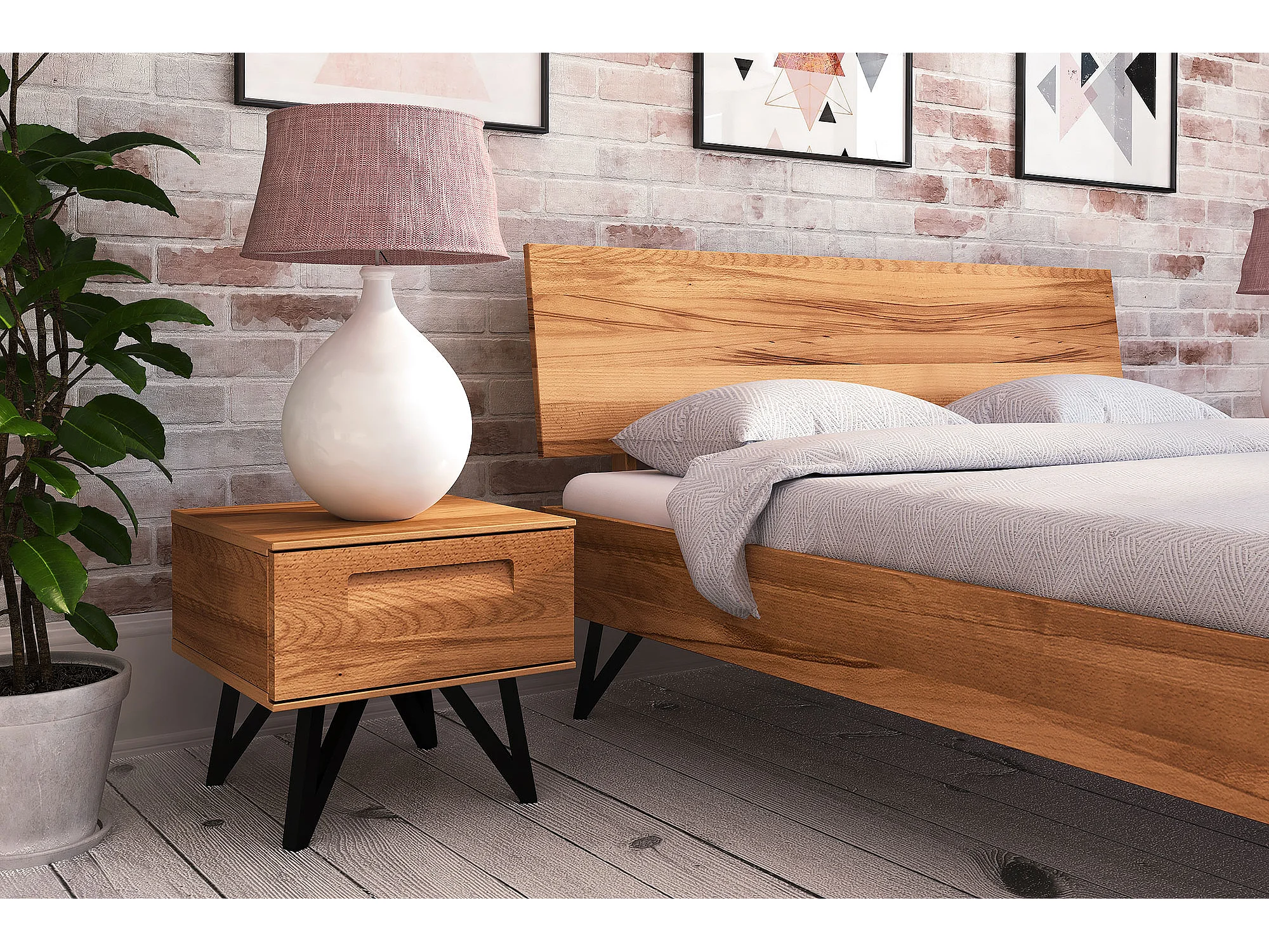 GOLO - Bettgestell mit Holzkopfteil 120 x 200 aus Kernbuche naturgeölt
