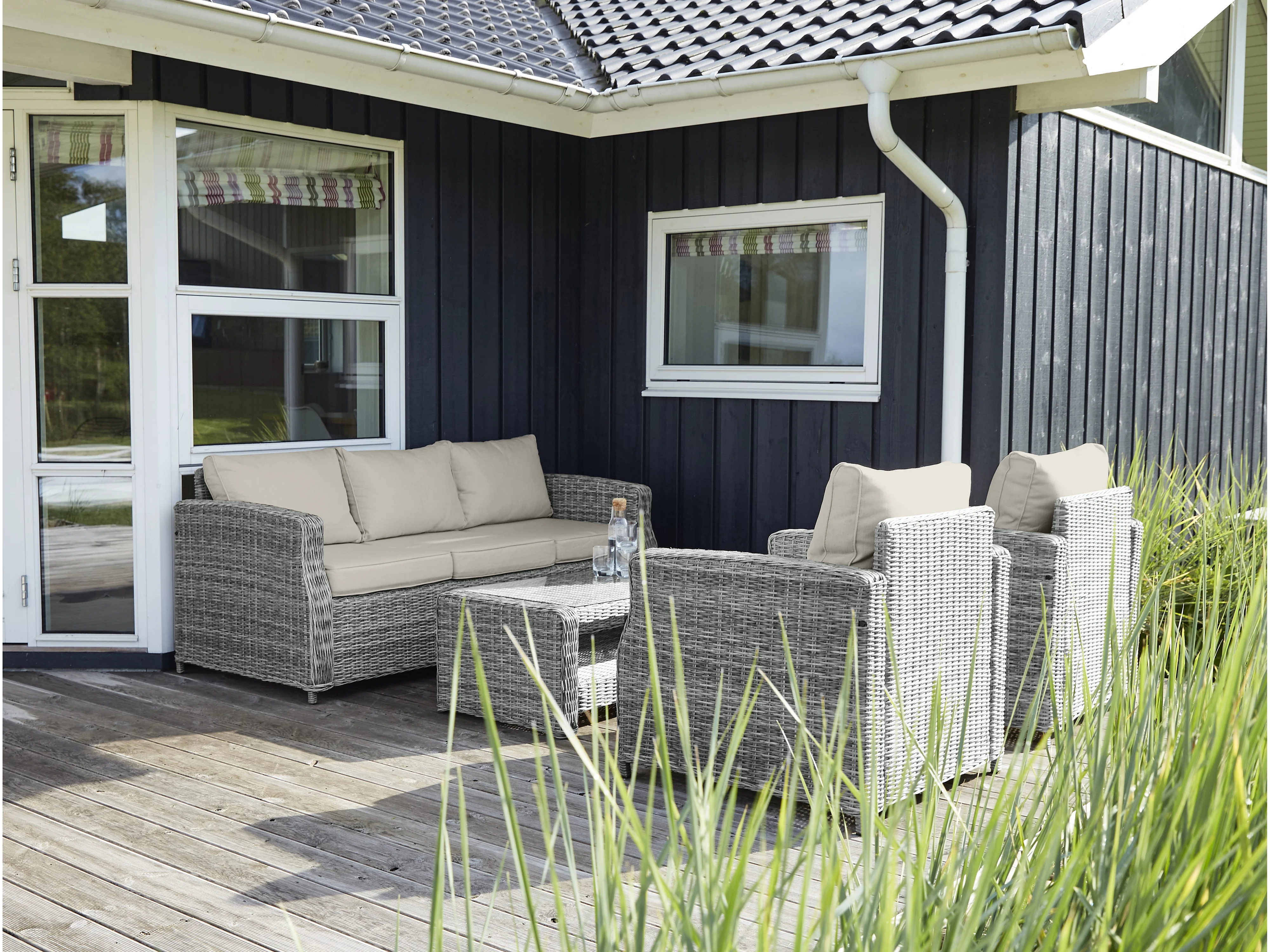 Gram Gartensofa 3 Sitzer, inkl. Sitzkissen, natur und offwhite.