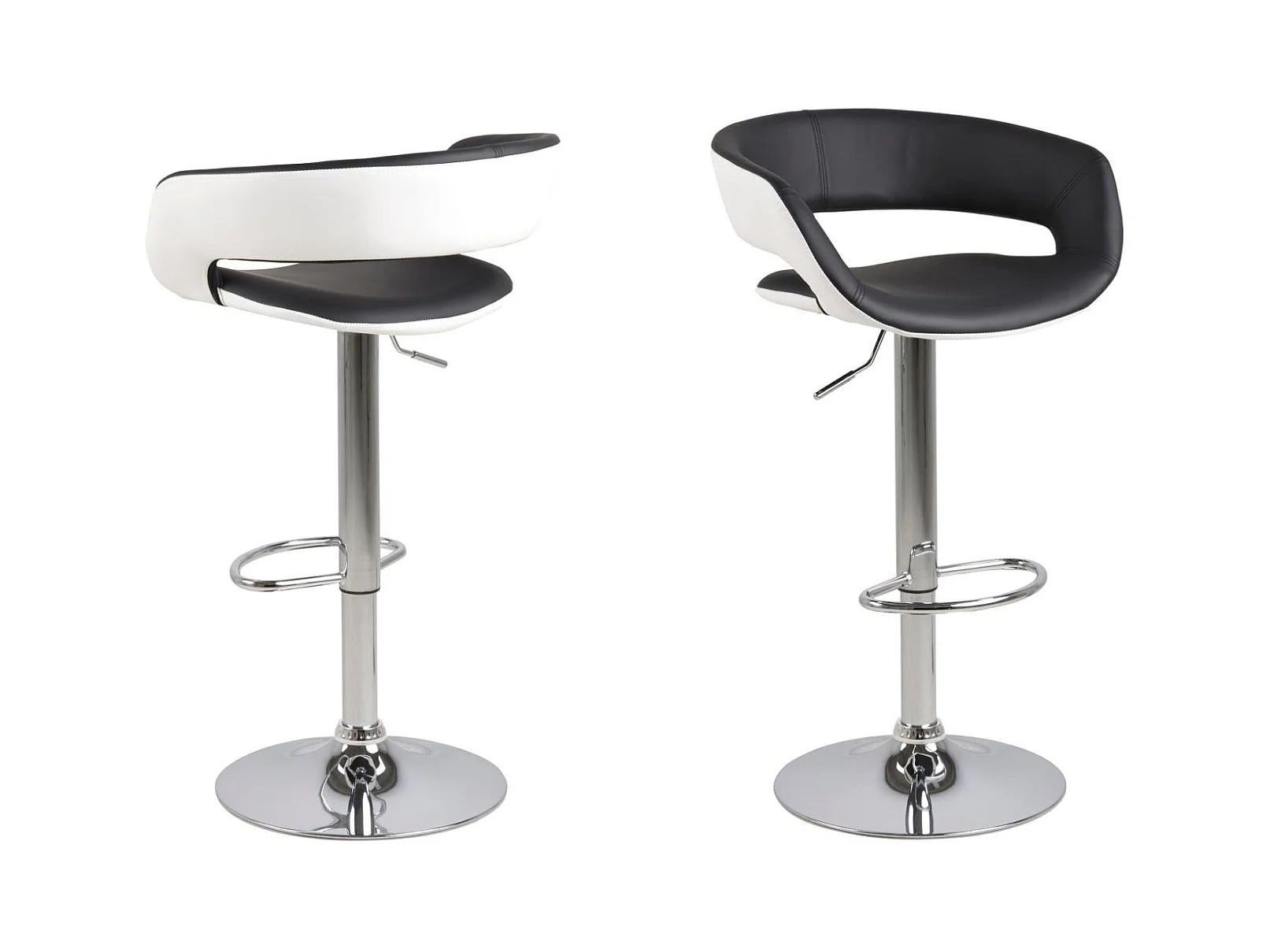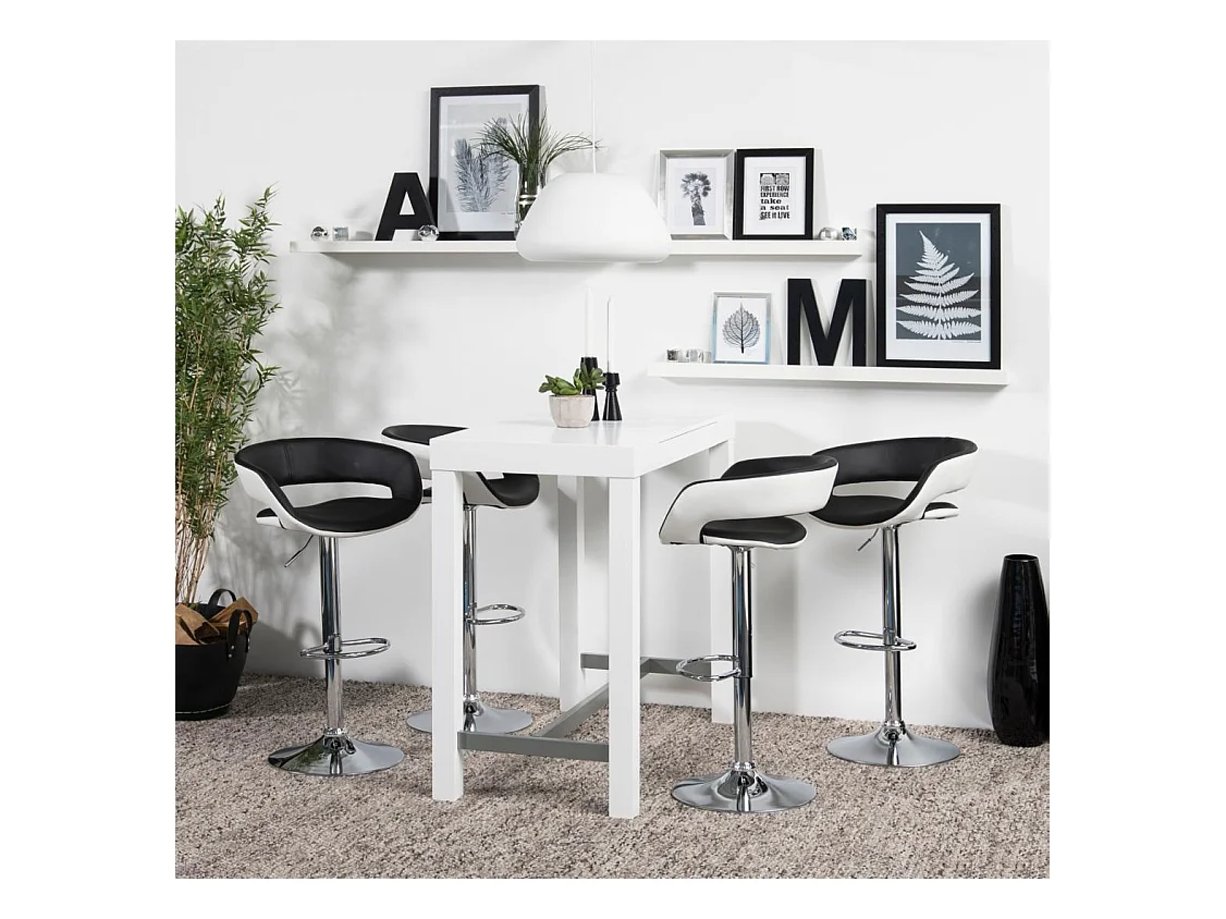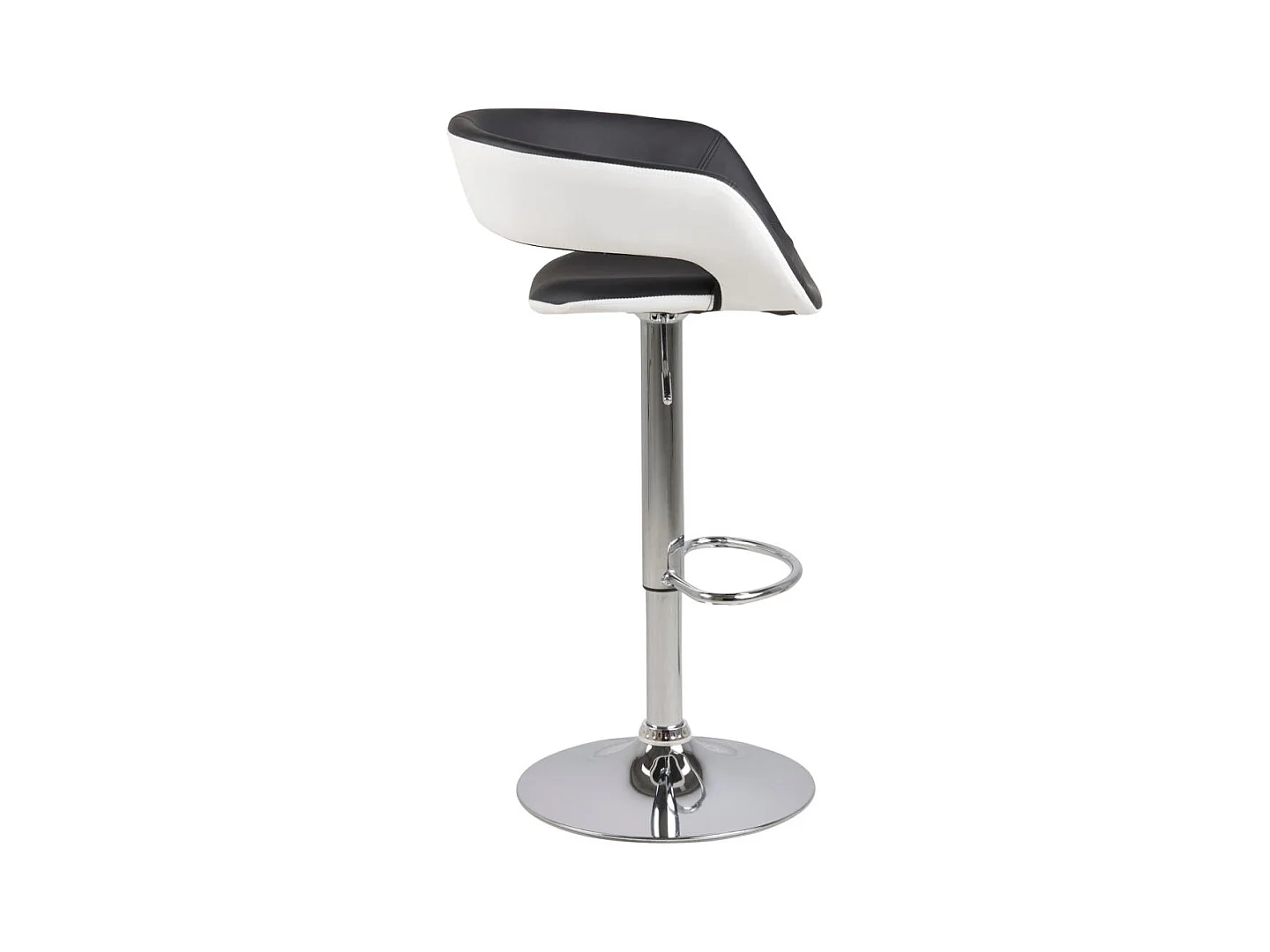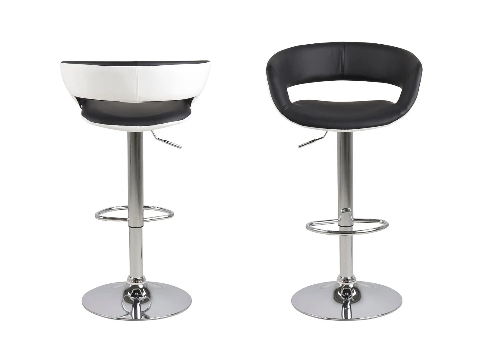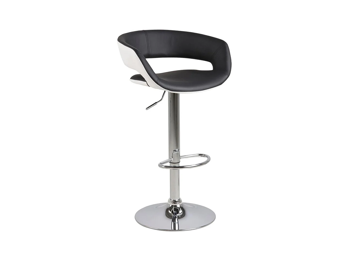 Gramma Barhocker schwarz und weiss Kunstleder, Fuss in Chrome mit Gasdruck.