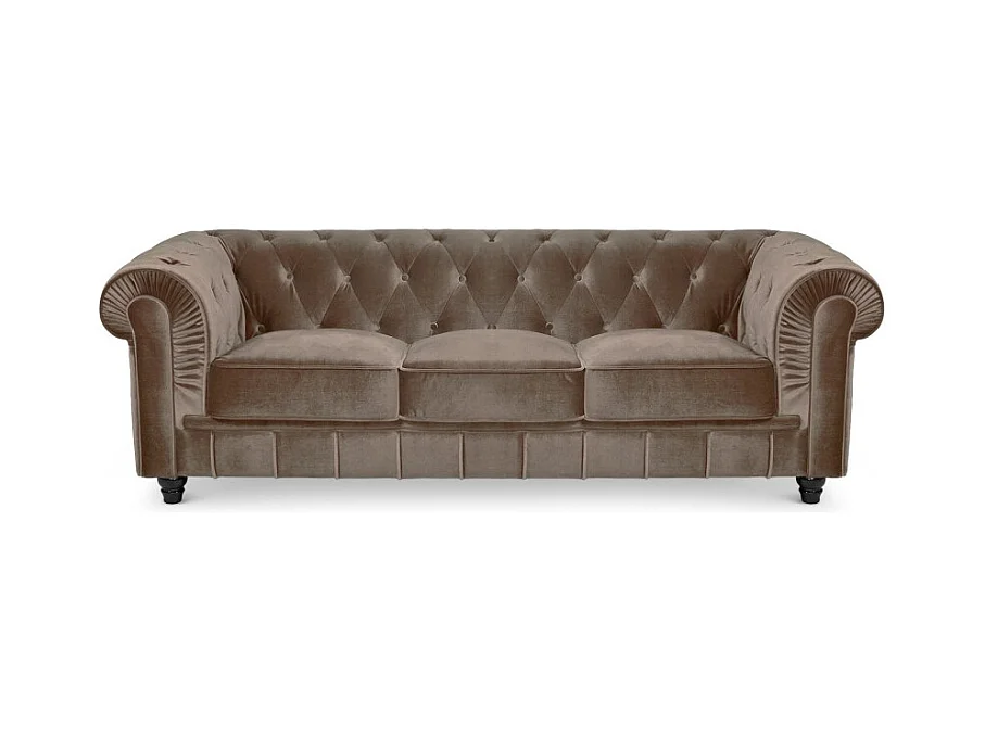 3-Sitzer Samtsofa "Chesterfield" Taupe, gemütlicher und eleganter Stil, 207 cm
