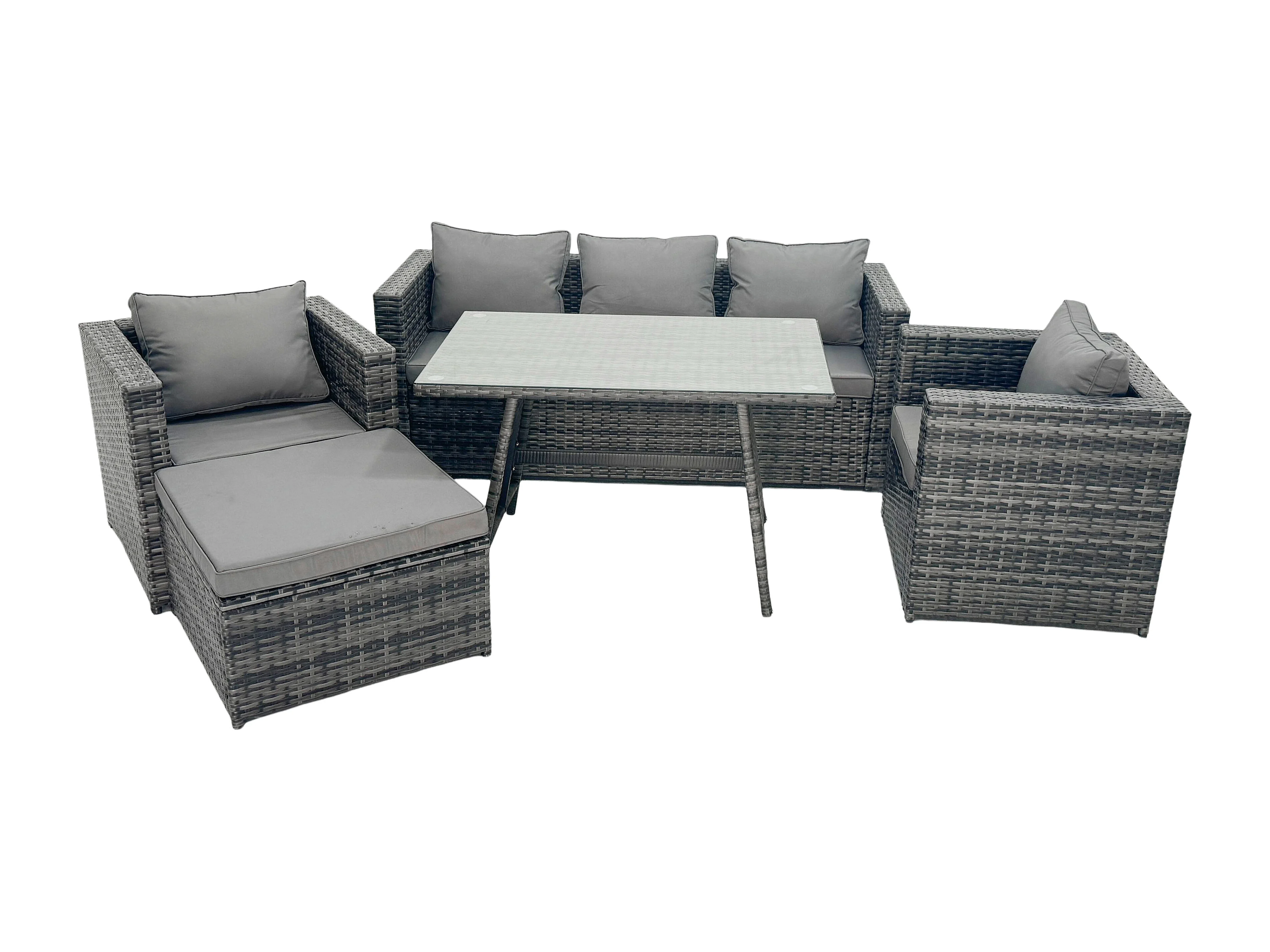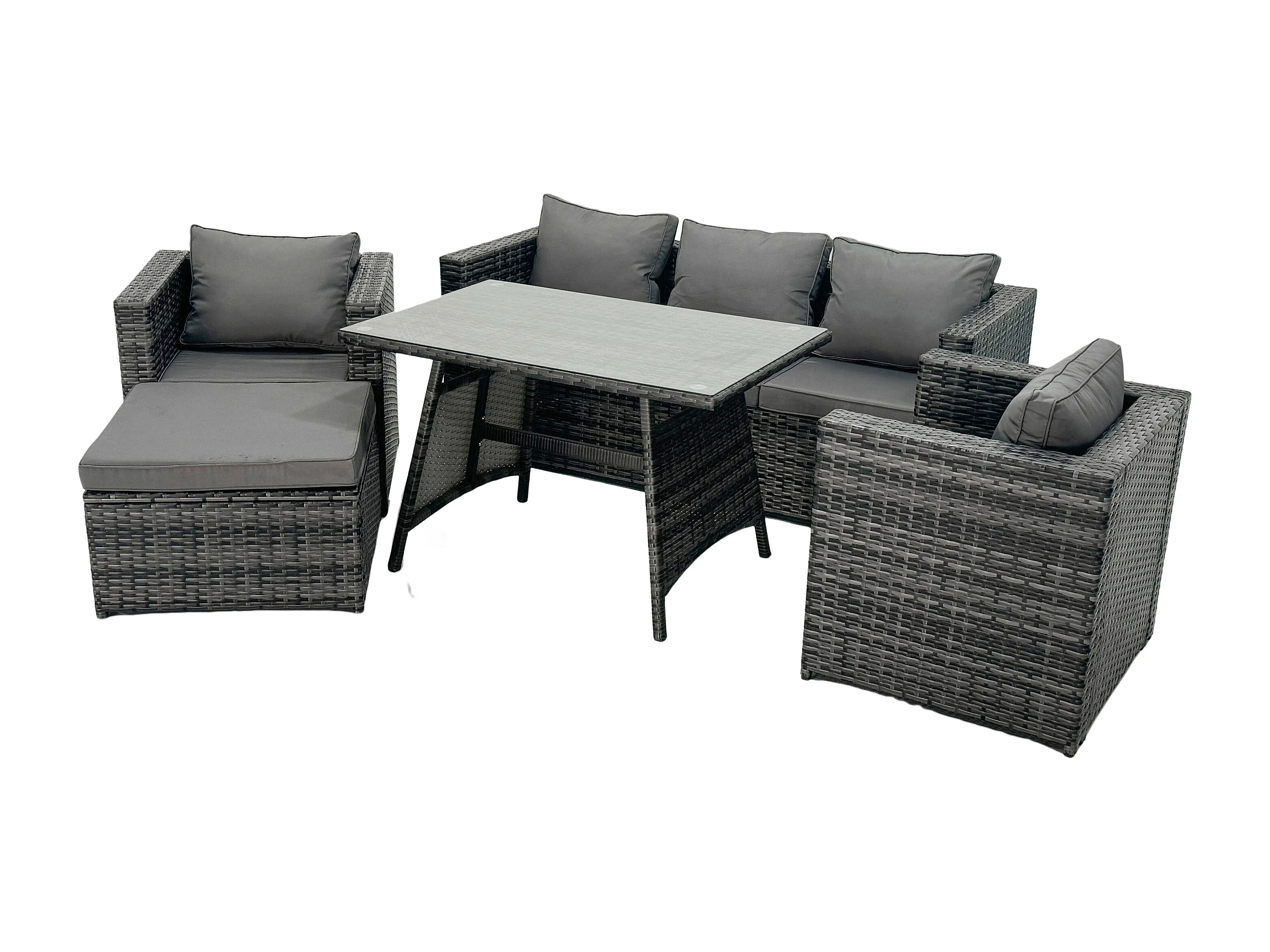 Grau Lounge Rattan Sofa Esstisch Set mit Sesseln Gartenmöbel Outdoor