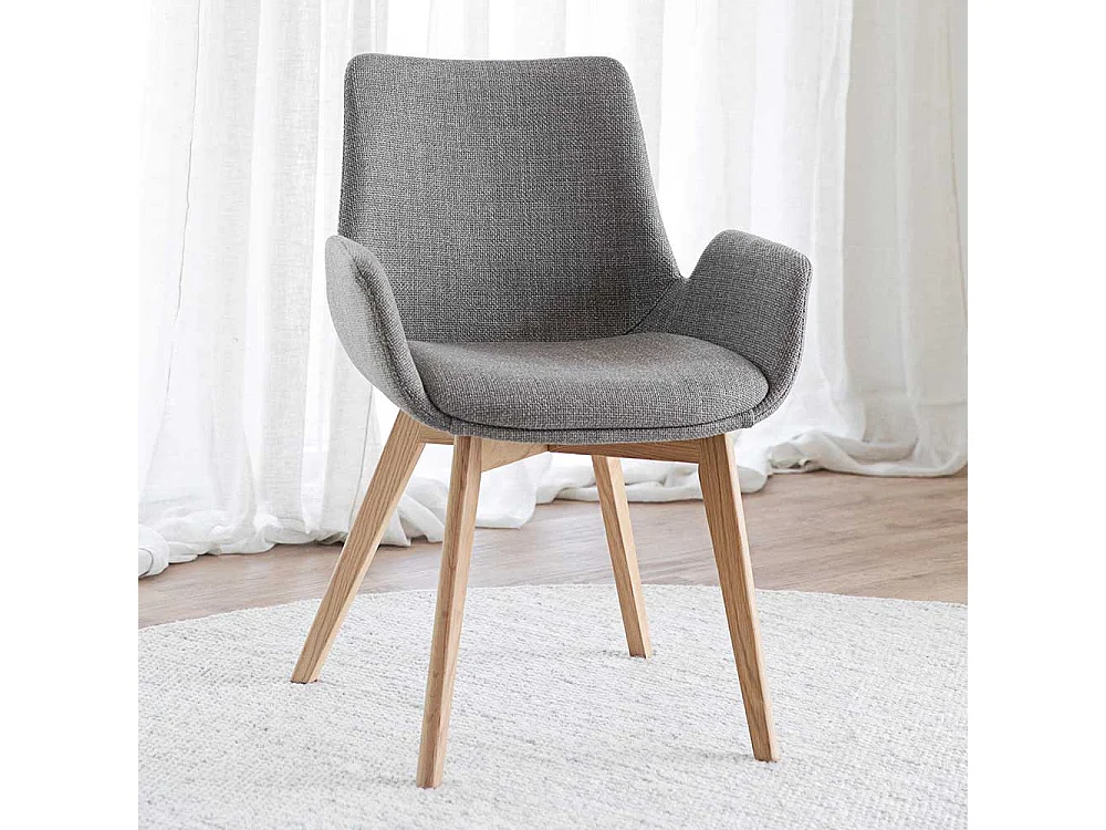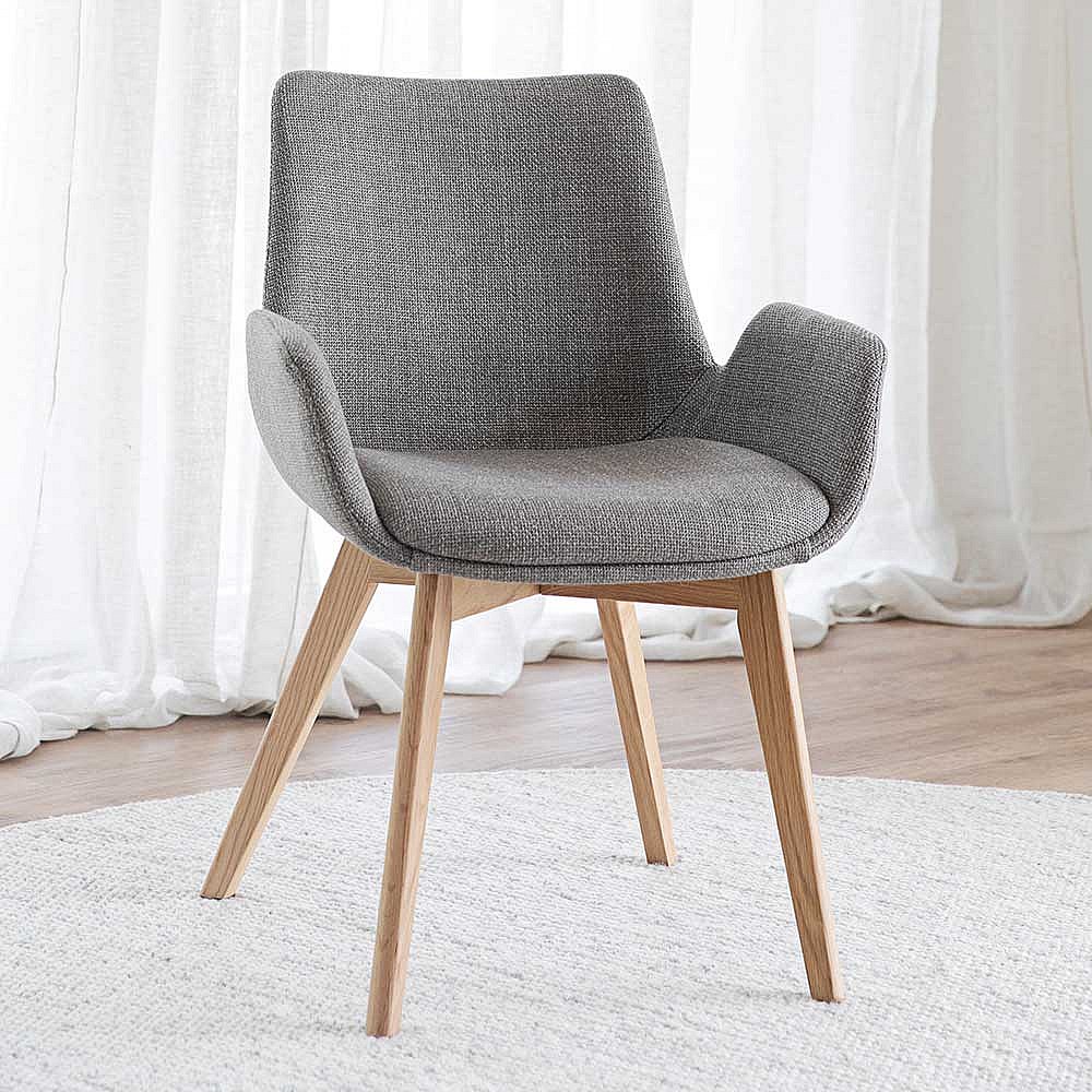 Graue Armlehner mit Gestell aus Massivholz Eichefarben (2er Set)