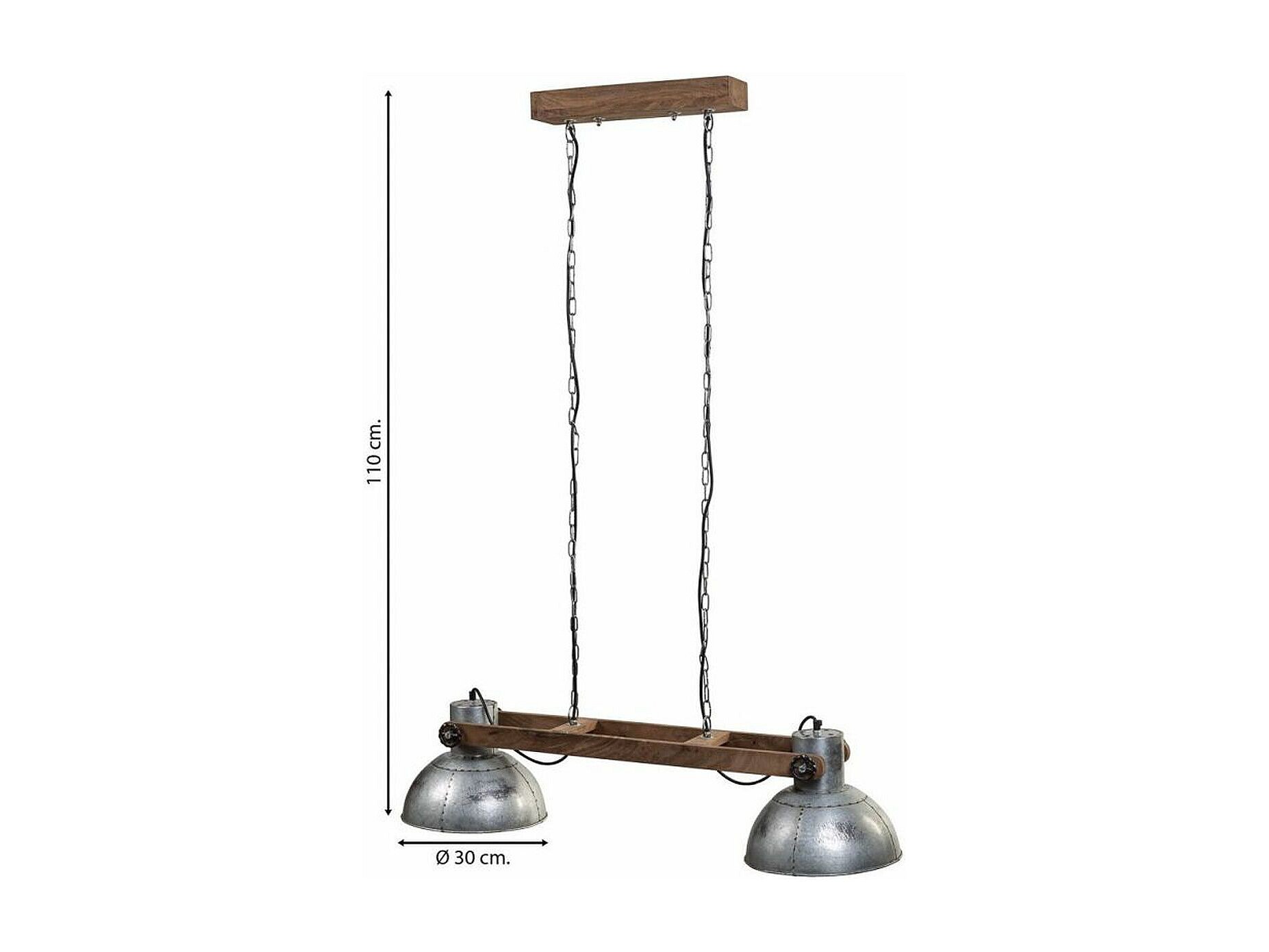 Graue Deckenleuchte aus Holz und Metall, 110 x 30 x 30 cm