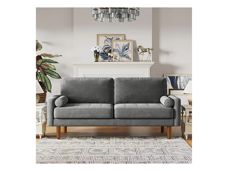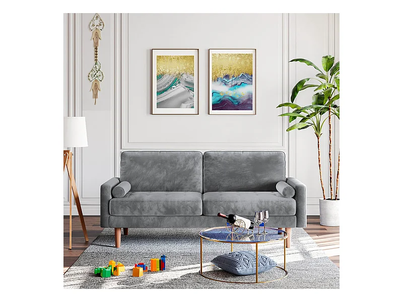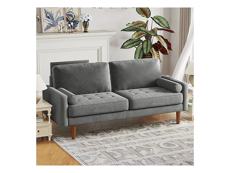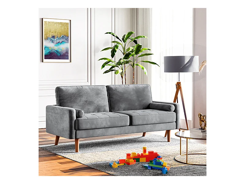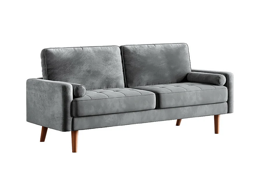 Grauer Samt und Massivholz -Samtsofa - 3 Plätze - maximal 300 kg - 176x78x85 cm