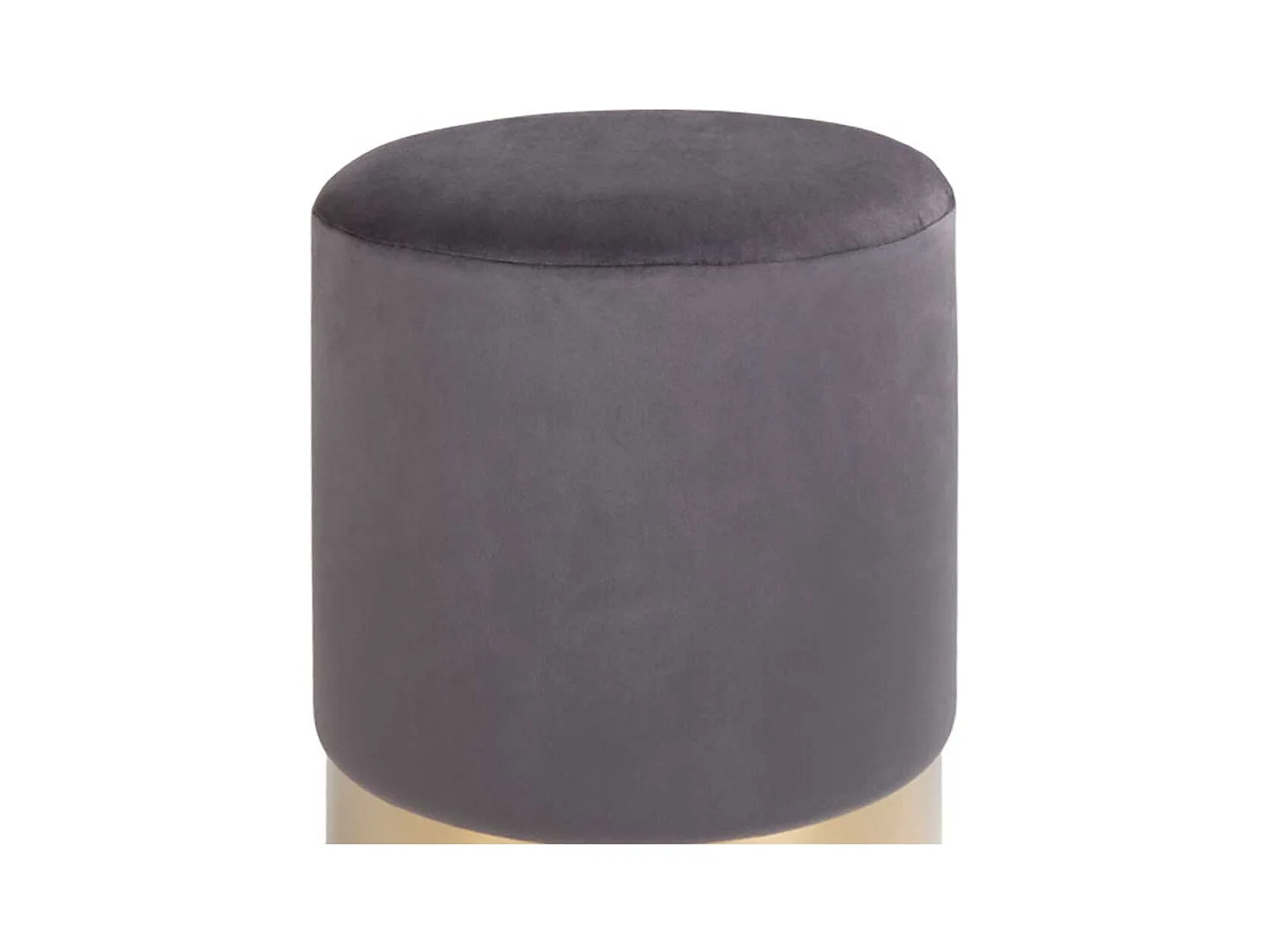 Grauer Sitzhocker aus Samt unde Stahl rund
