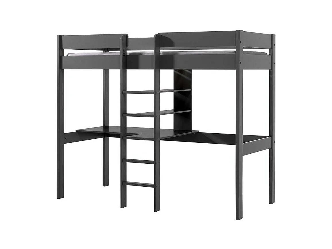 Graues Hochbett mit Massivholz Oberfläche Schreibtisch