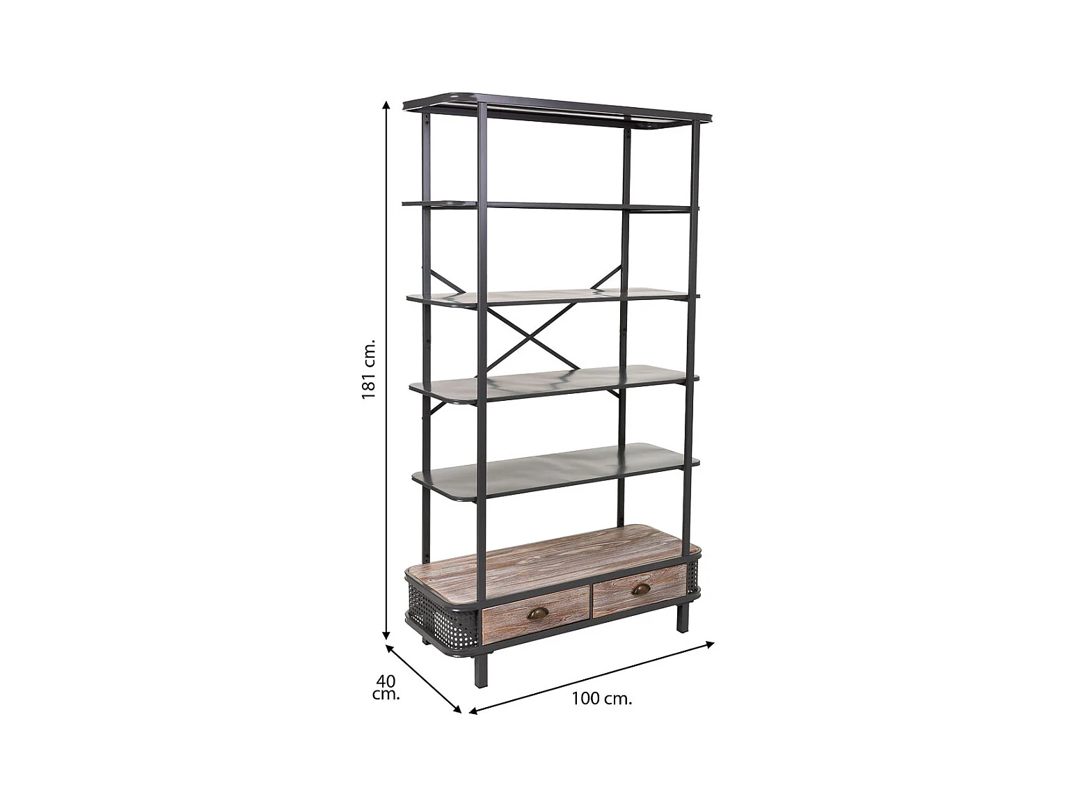 Graues Metall- und Holzregal 100x40x181h cm