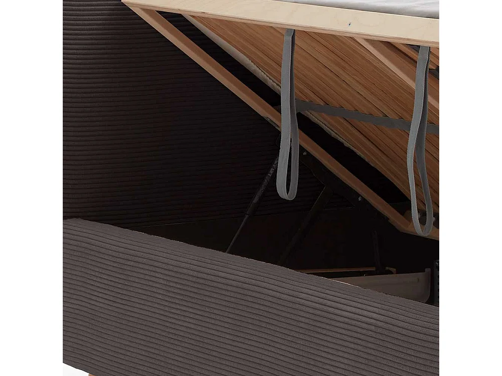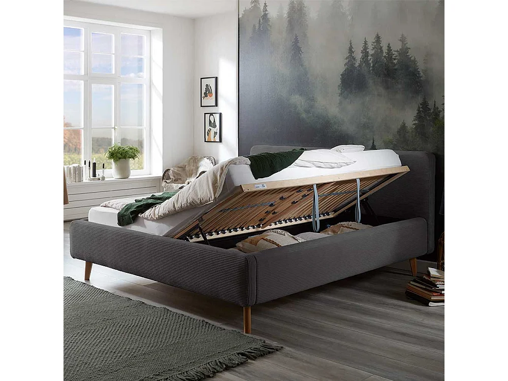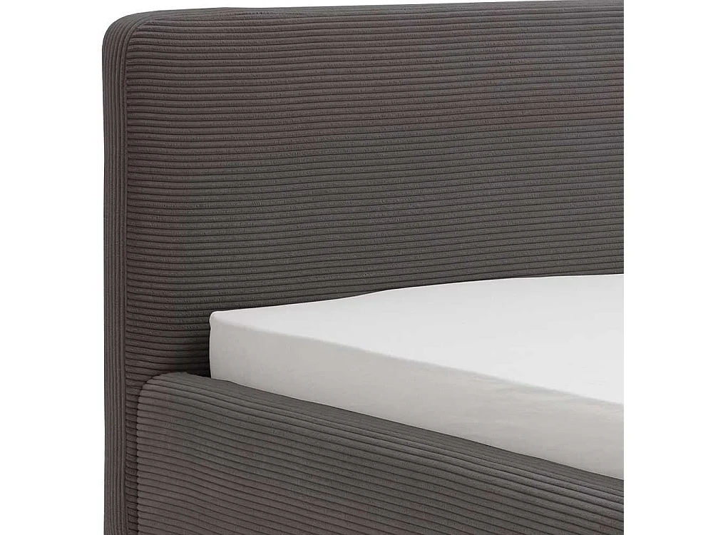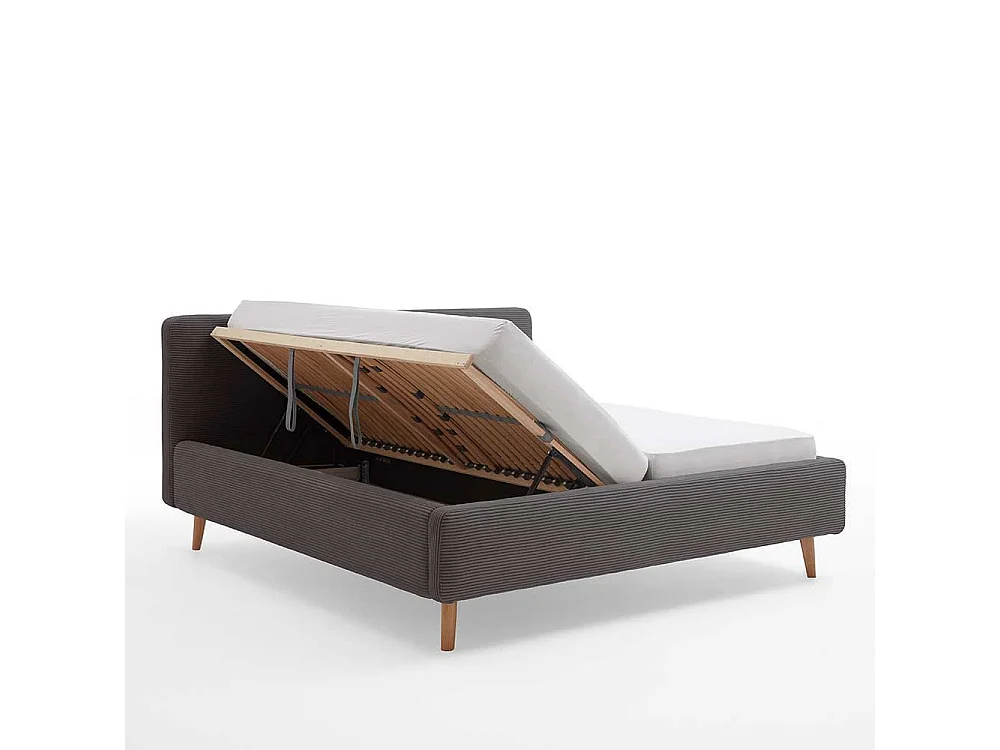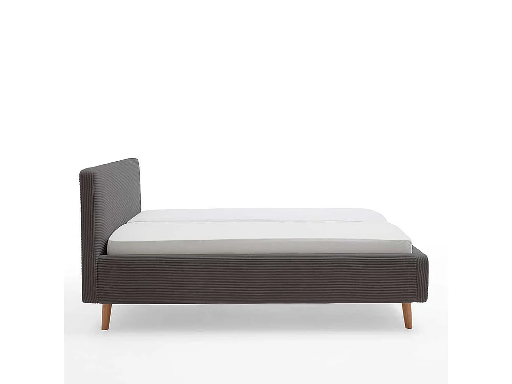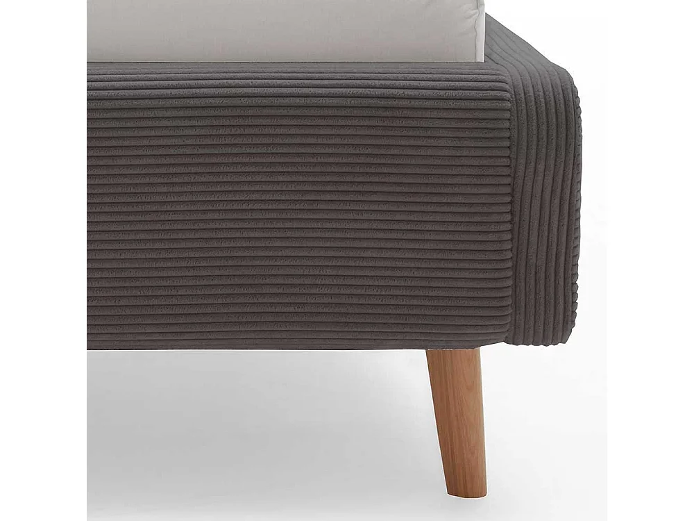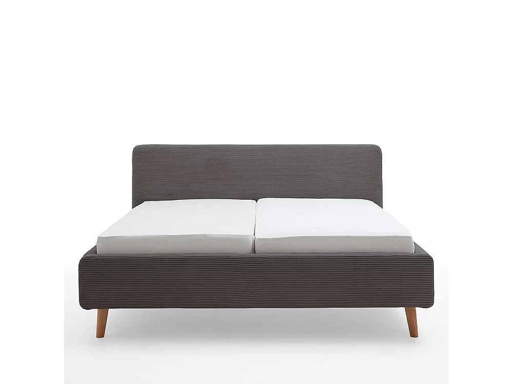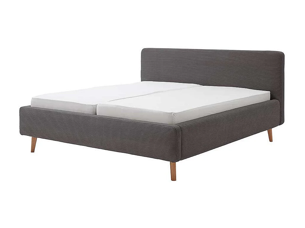 Graues Polsterbett mit Cord Bezug Vierfußgestell aus Holz