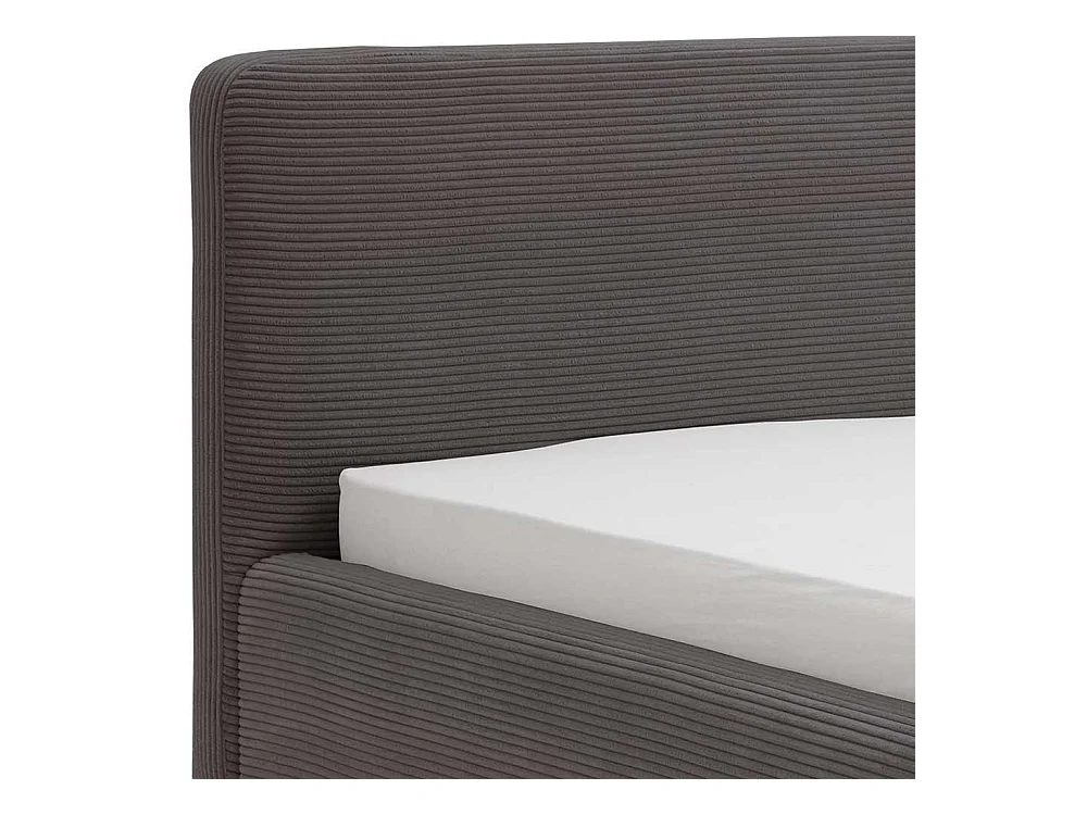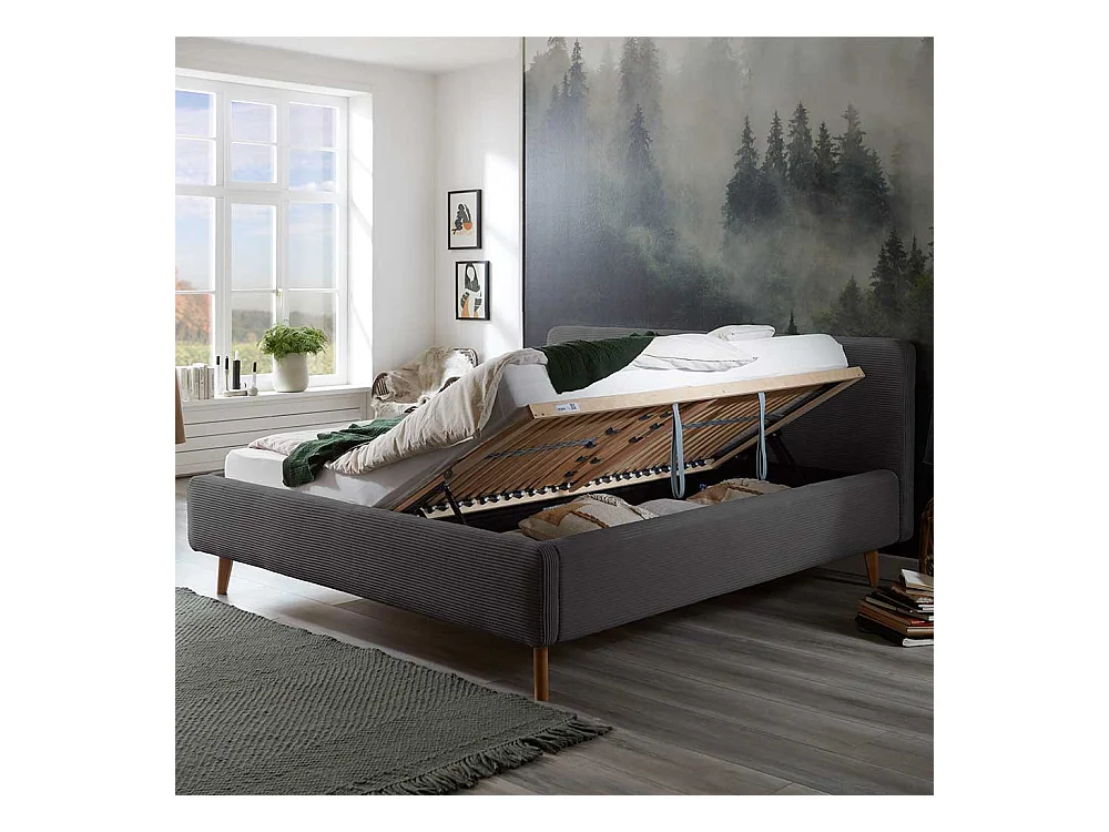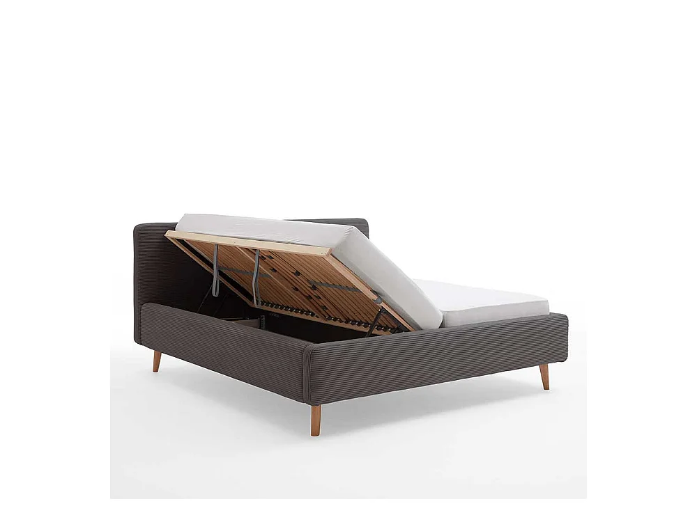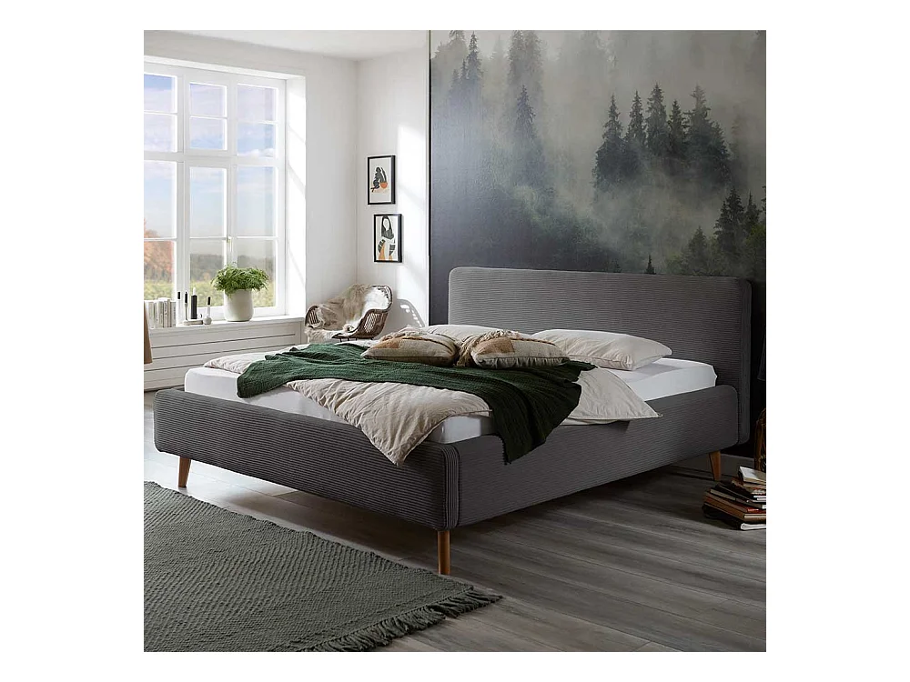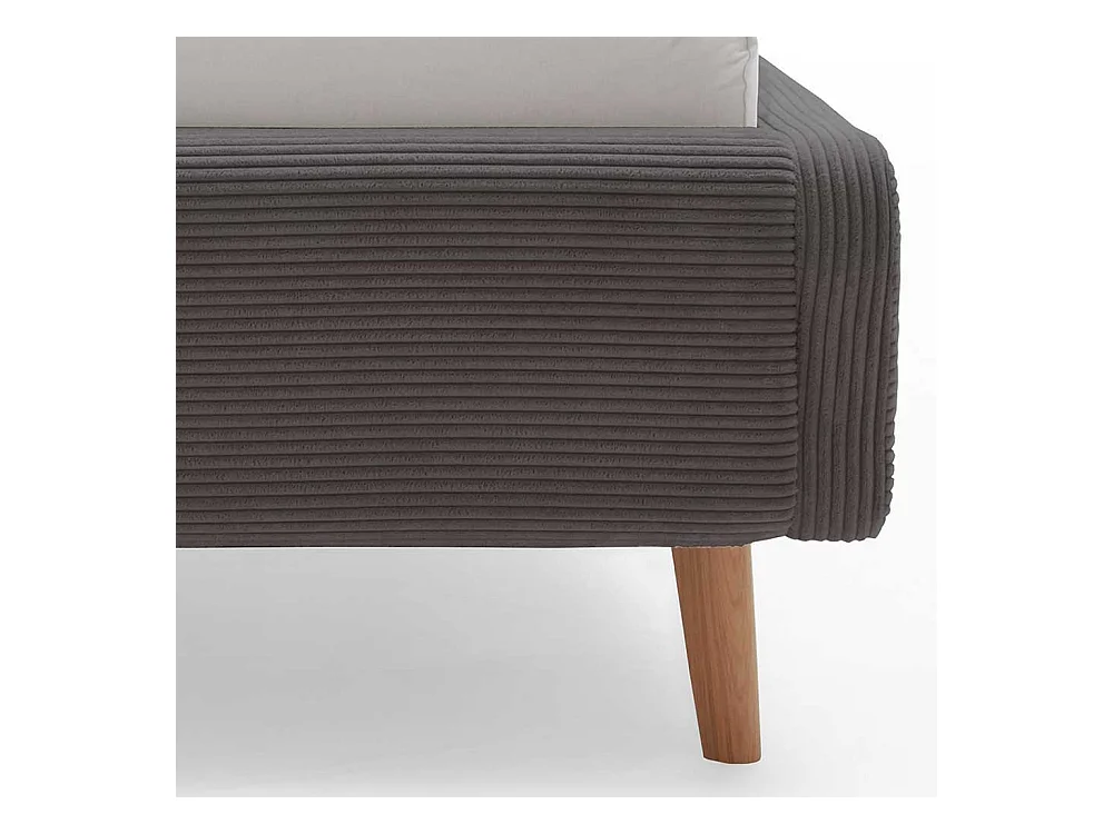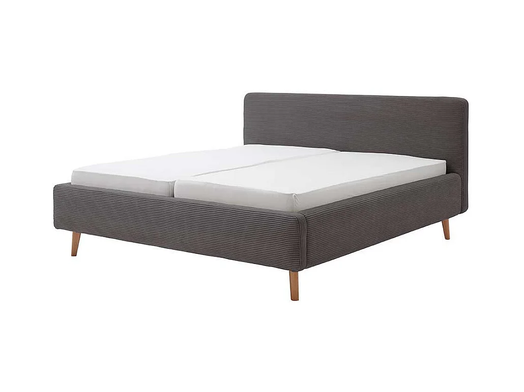 Graues Polsterbett mit Cord Bezug Vierfußgestell aus Holz
